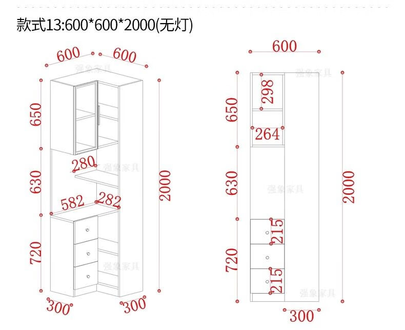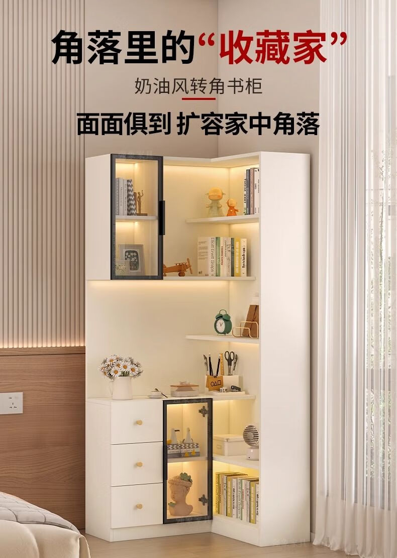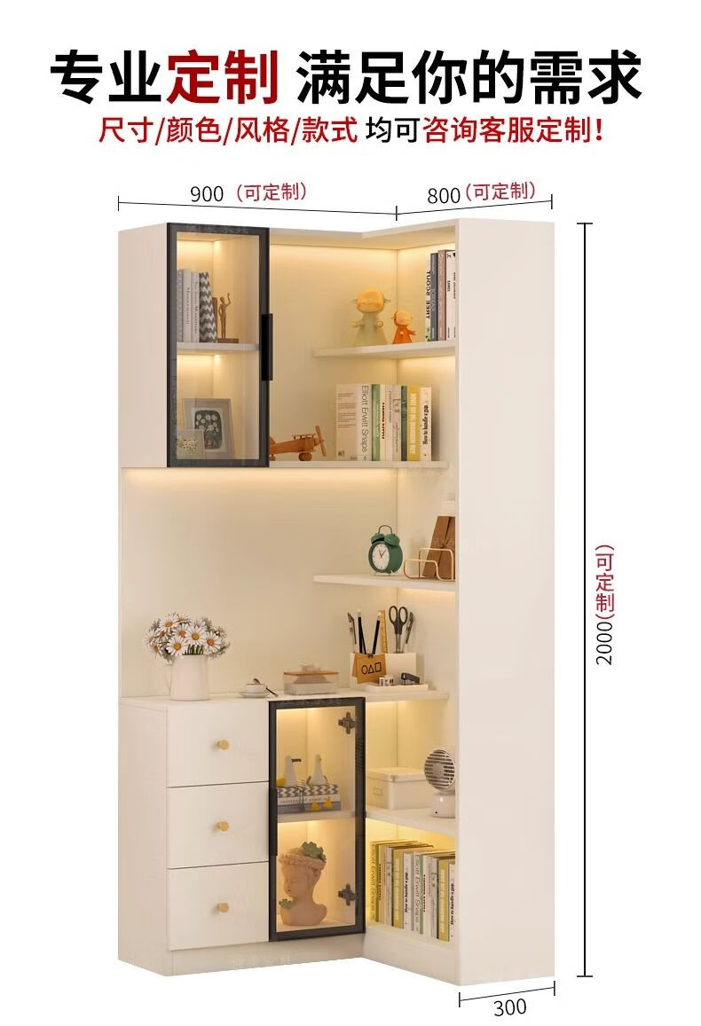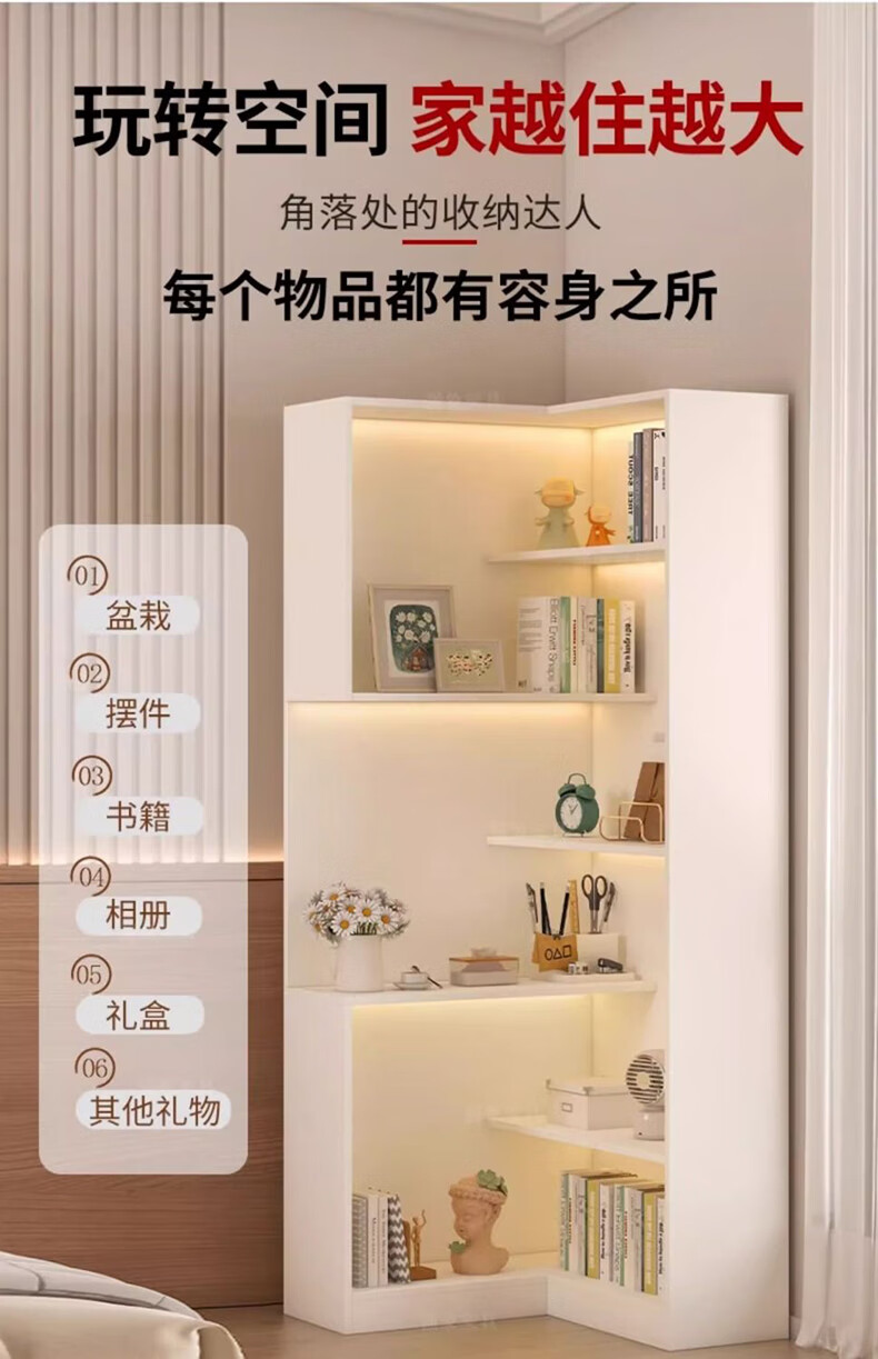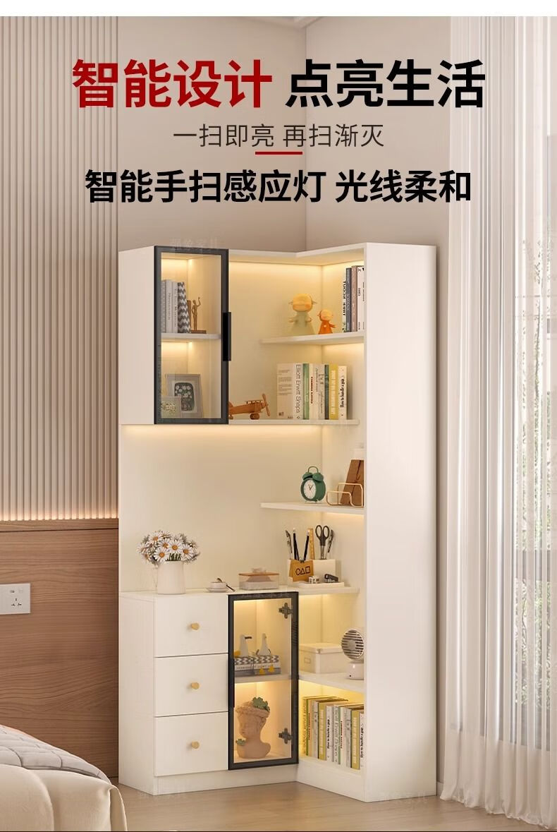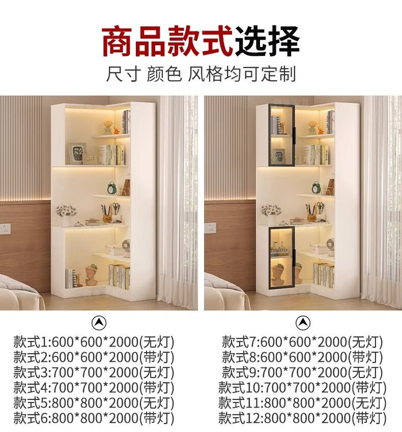Hongsenji Corner Bookcase Living Room Sofa Corner Cabinet Triangular Side Cabinet Corner Cabinet Storage Rack Bedroom Corner Storage Cabinet Style 13-60*60*200