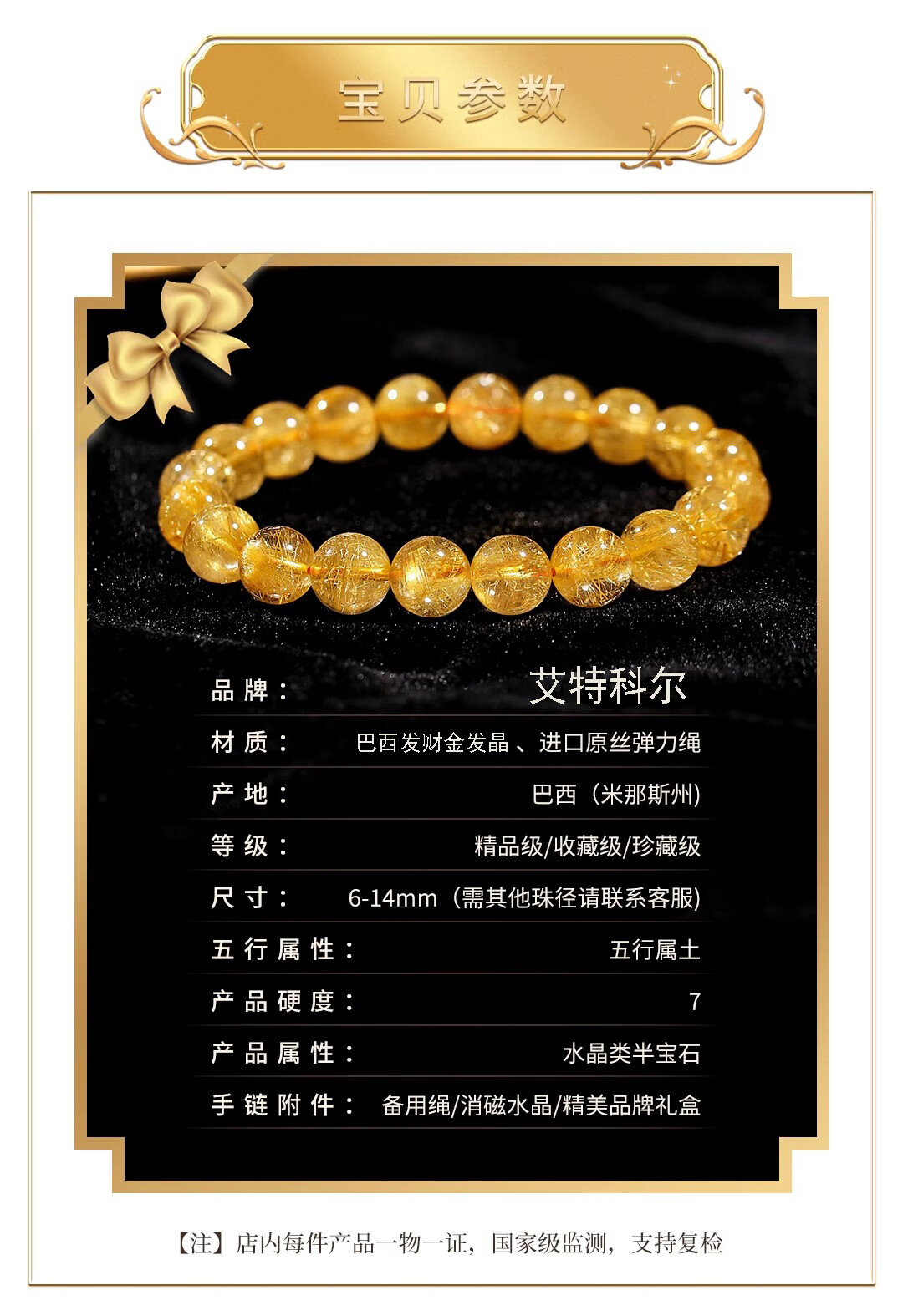 Aitkel Golden Crystal Bracelet for Women Flash Citrine Men's Bracelet for Girlfriend's Birthday and Valentine's Day Gift 7mm Collectible Golden Crystal Bracelet