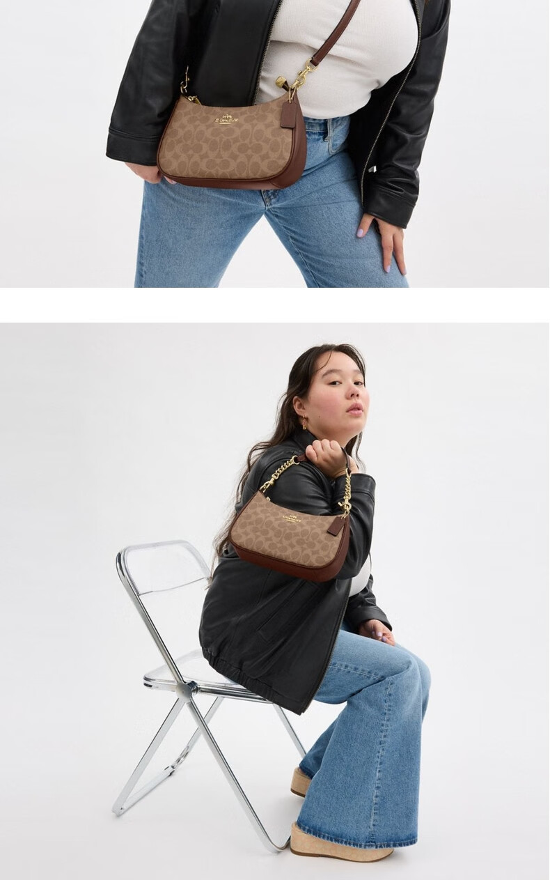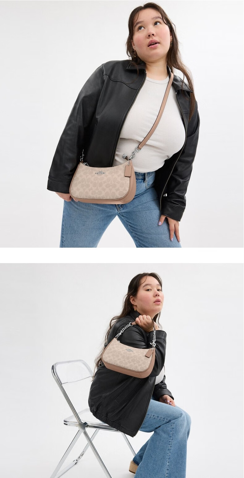 COACH New Year's Gift New Outlet Women's Bag Classic Logo Presbyopia TERI Shoulder Messenger Bag Mahjong Bag IM/Brown/Brown