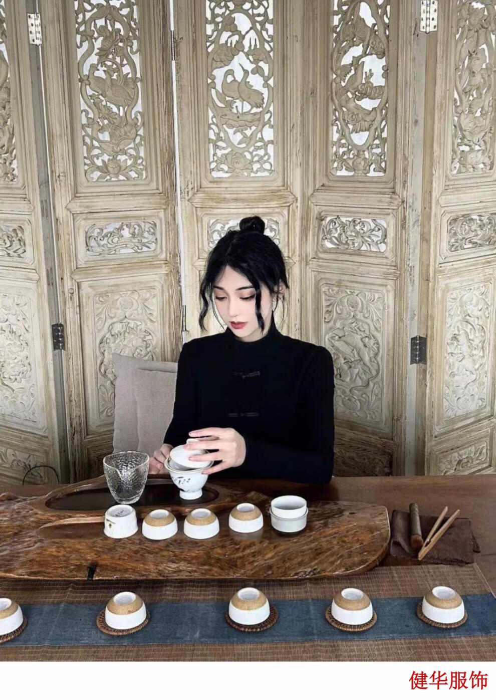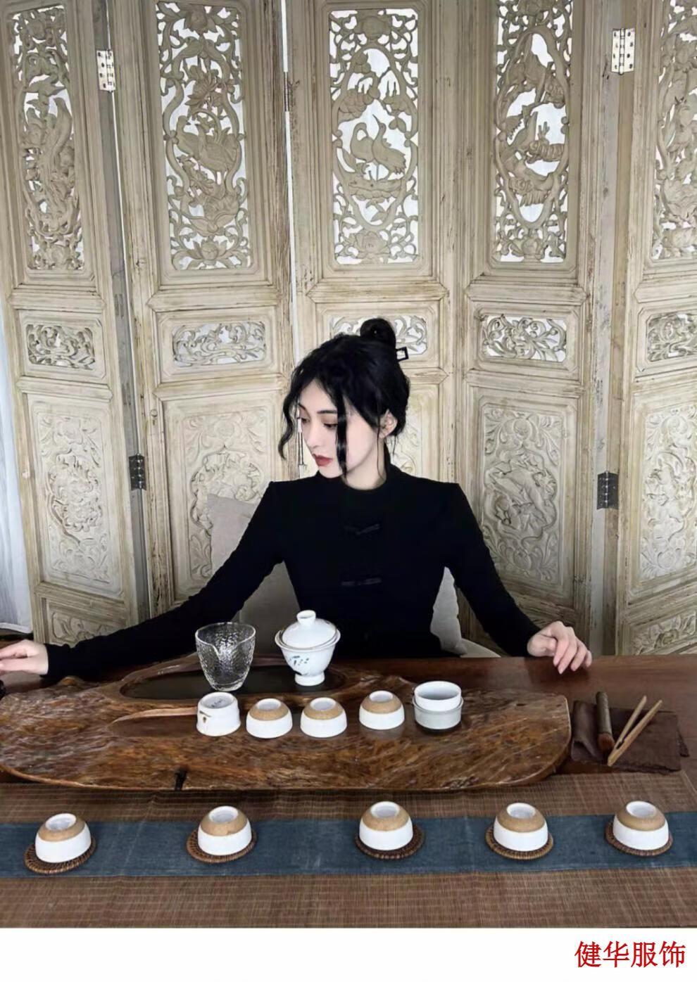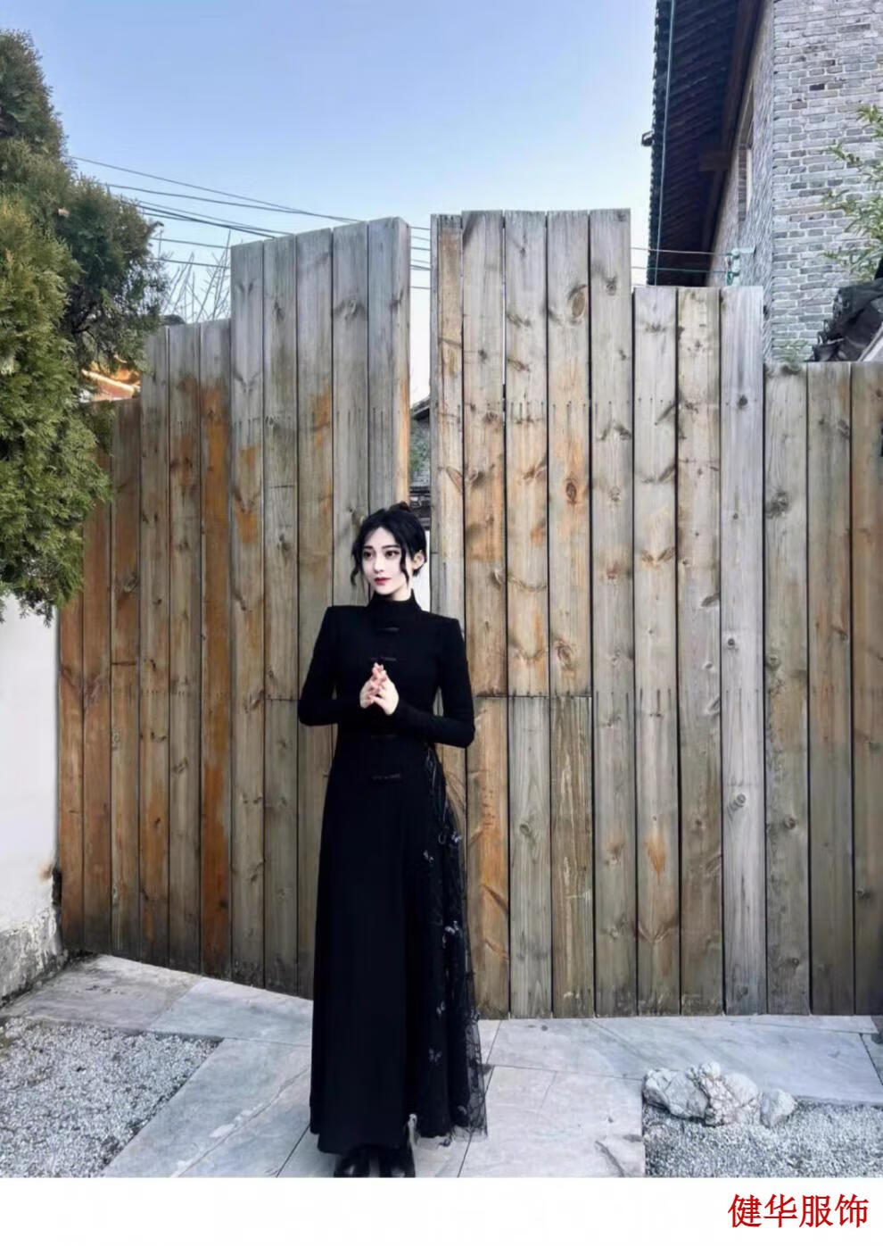 Yinchu early autumn new Chinese style women's clothing, chic and unique national style cheongsam, Buddhist Zen tea dress, autumn and winter style, black-cheongsam S 160
