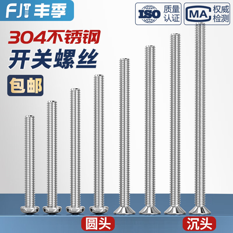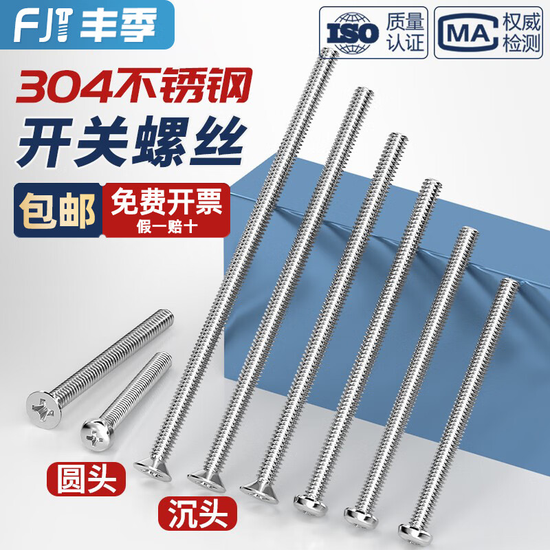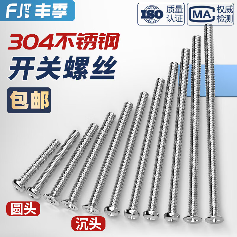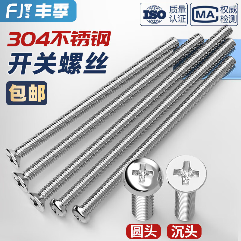 Fengji 304 stainless steel electrician switch socket panel 86 type round head countersunk head cross m4 screw extended 4-7CM cm 7 cm 10 pieces flat head screws
