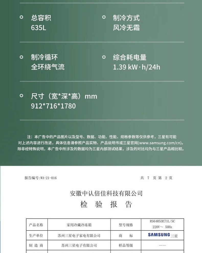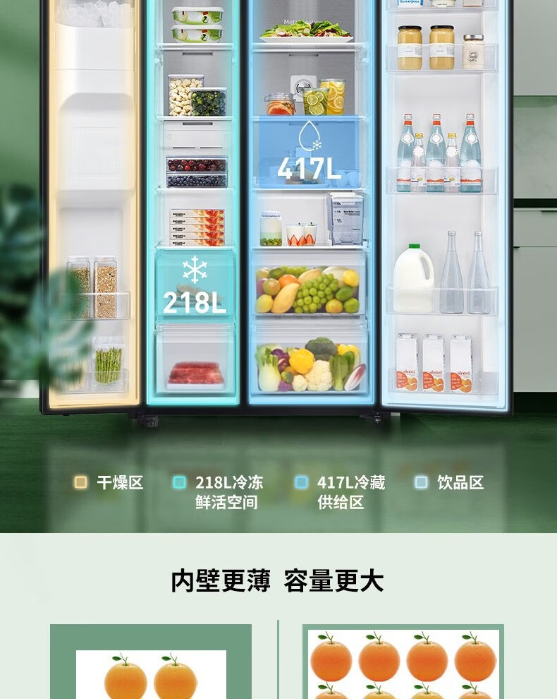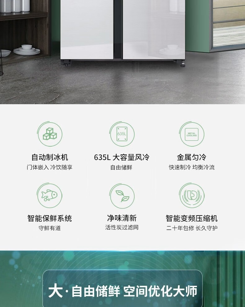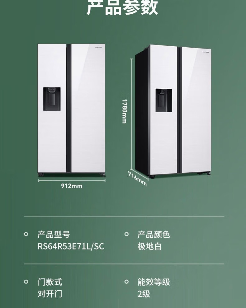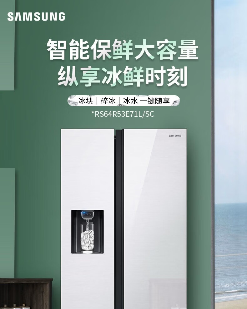 Samsung (SAMSUNG) official refurbished machine RS64R53E71L/SC 635 liters large capacity side-by-side double door refrigerator, metal uniform cooling, automatic ice maker, clean and fresh taste, intelligent frequency conversion RS64R53E71L/SC, white