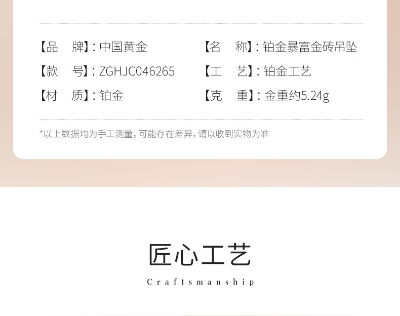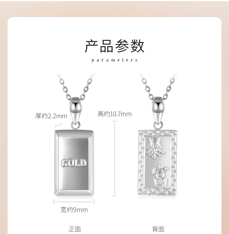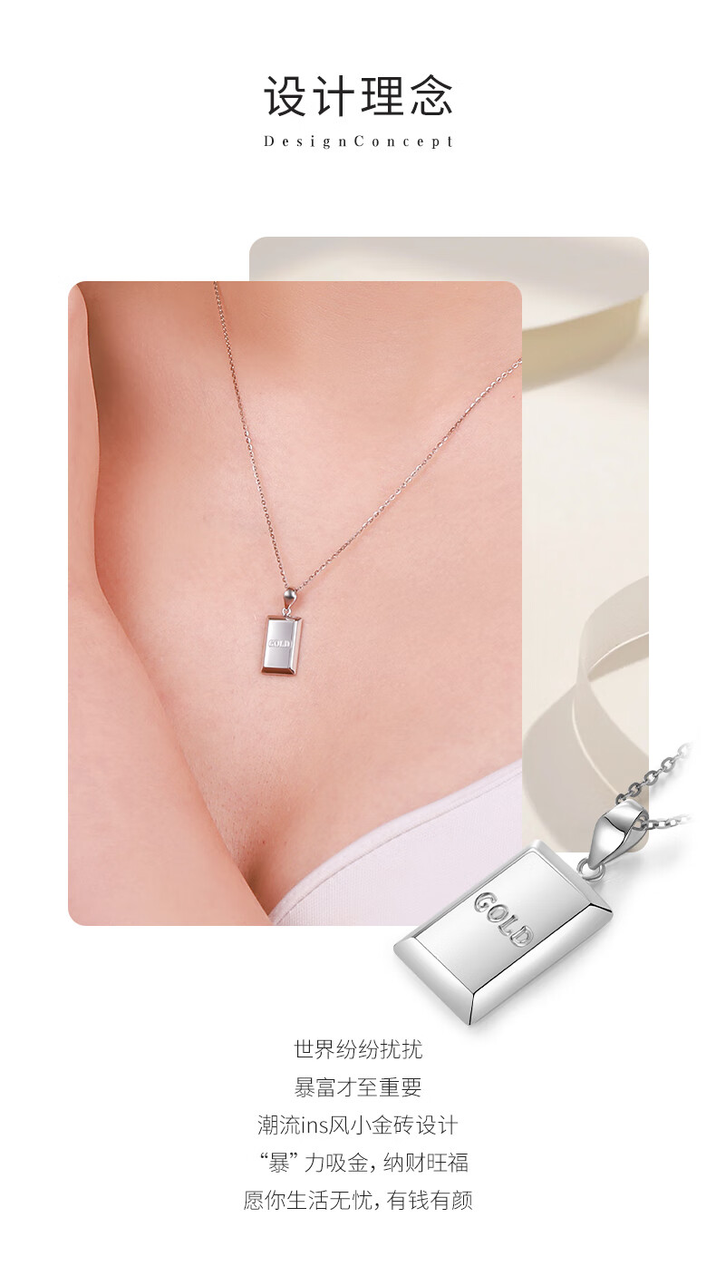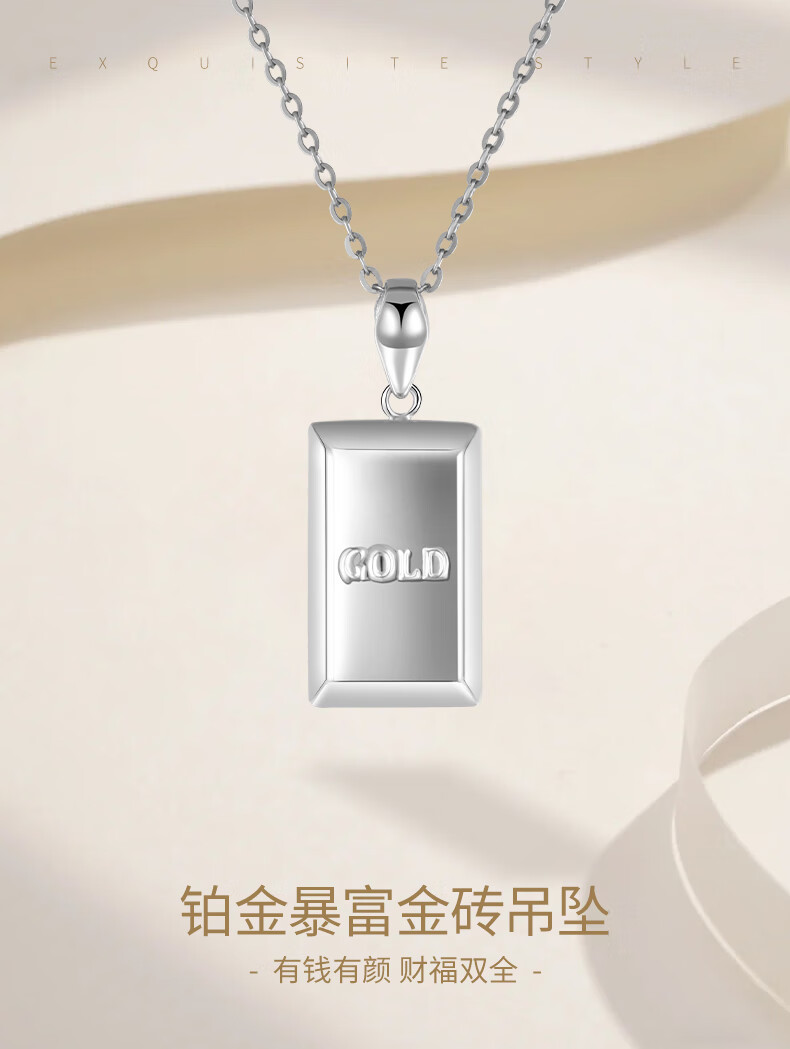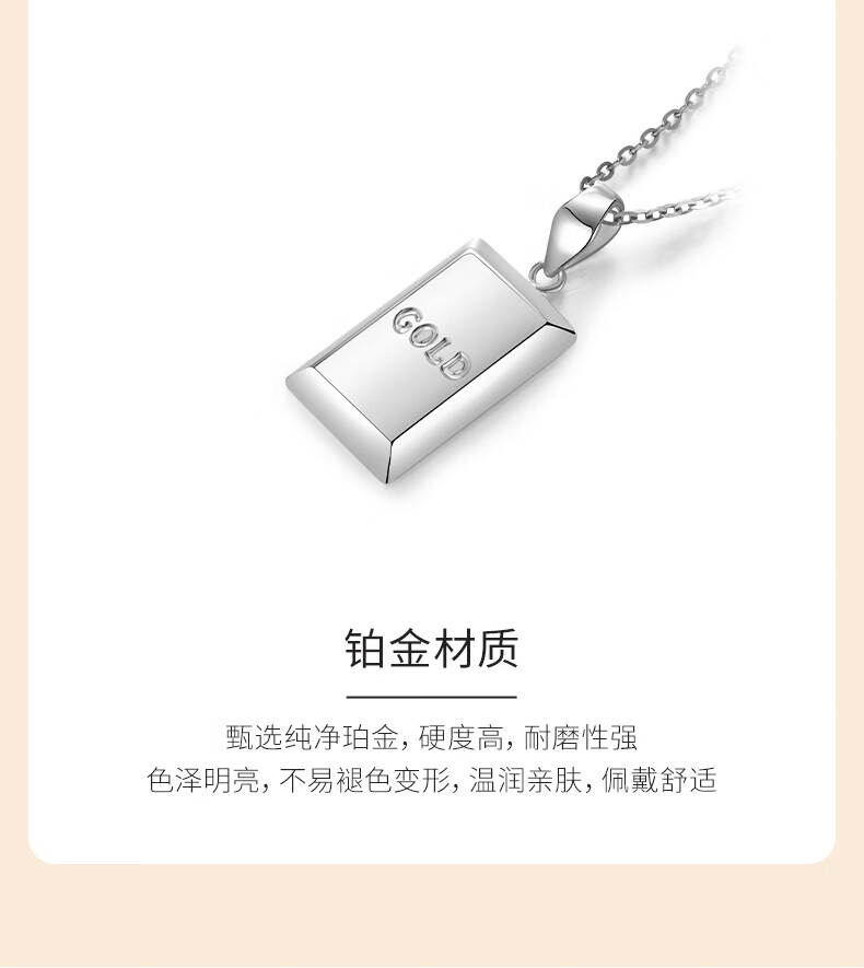 China Gold (CHINA GOLD) platinum pt950 small gold brick platinum pendant is a birthday gift for girlfriend and wife, weighing about 5.9g