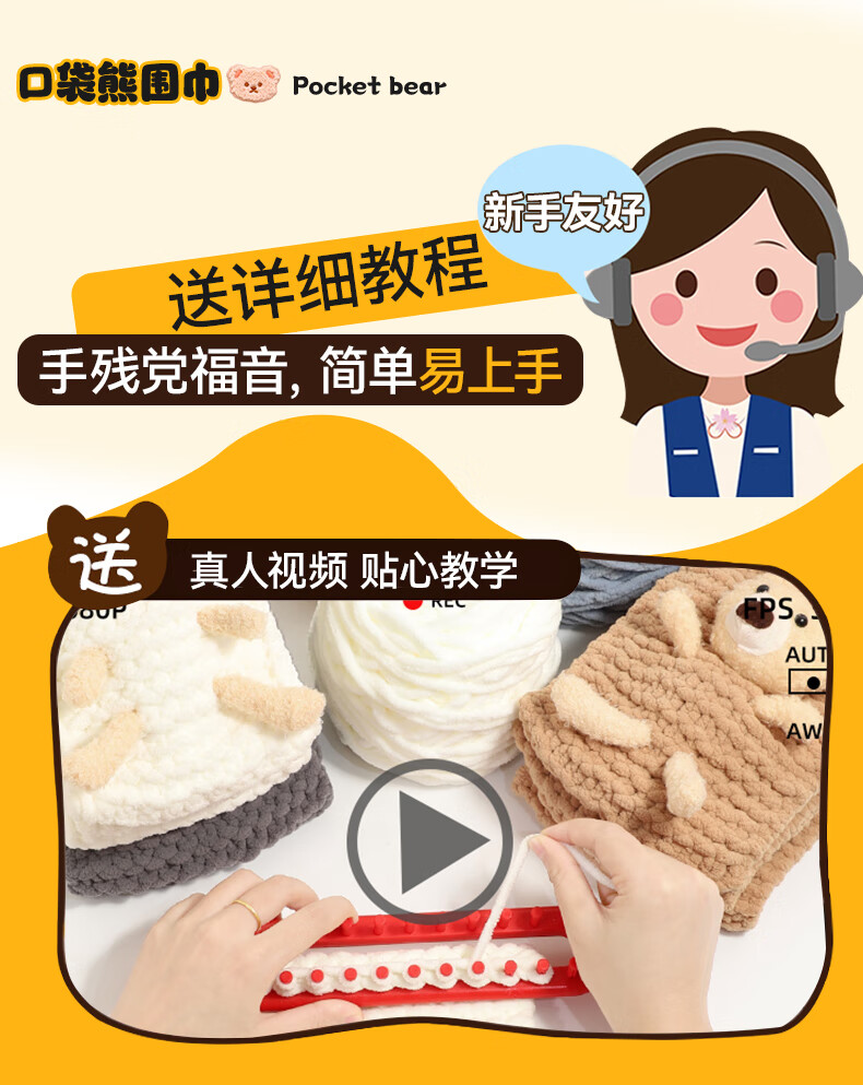 Mengduofu scarf hand knitted diy bear hand knitted scarf for girlfriend wool knitting diy material package bear scarf milky white 1 box gift for boyfriend, girlfriend + gift bag