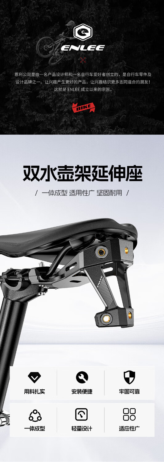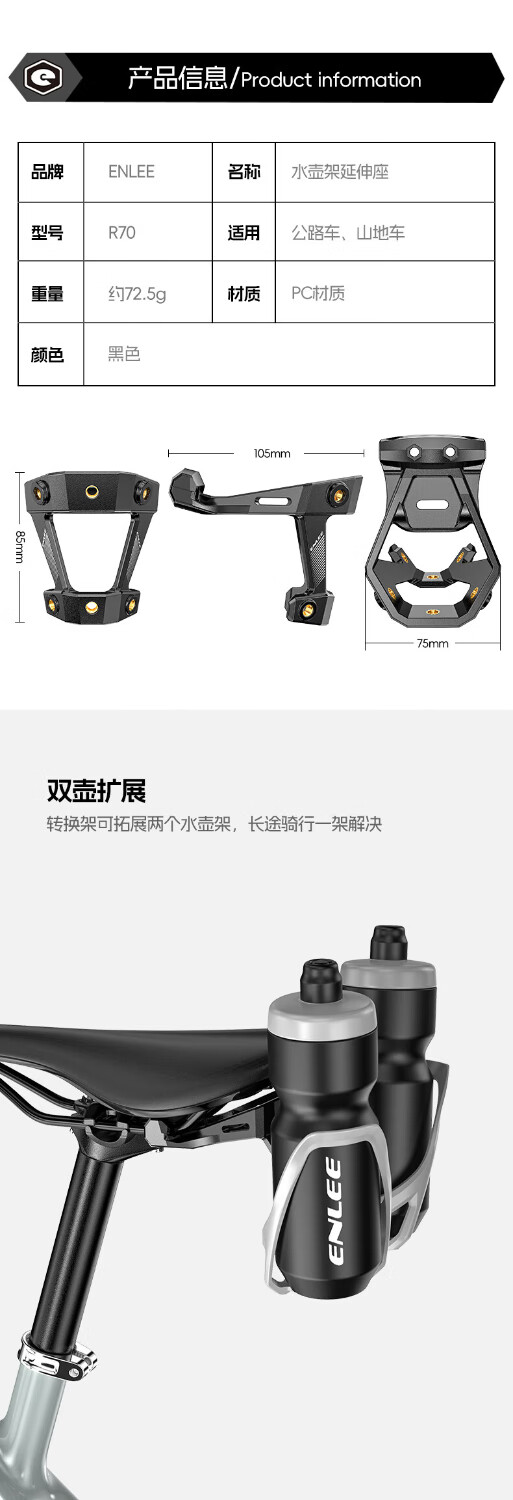 Enlee bicycle water bottle cage conversion seat extension rack mountain road bike punch-free seat cushion adapter extension bracket extension rack + R30 white water bottle cage (two)