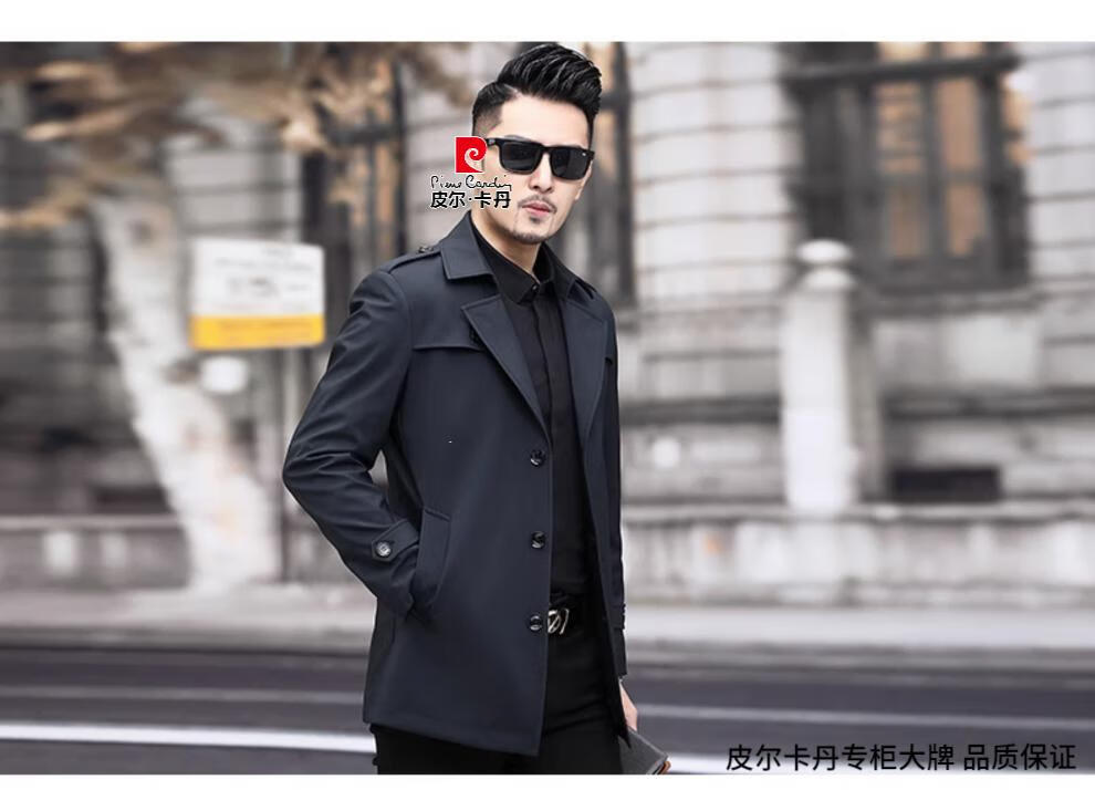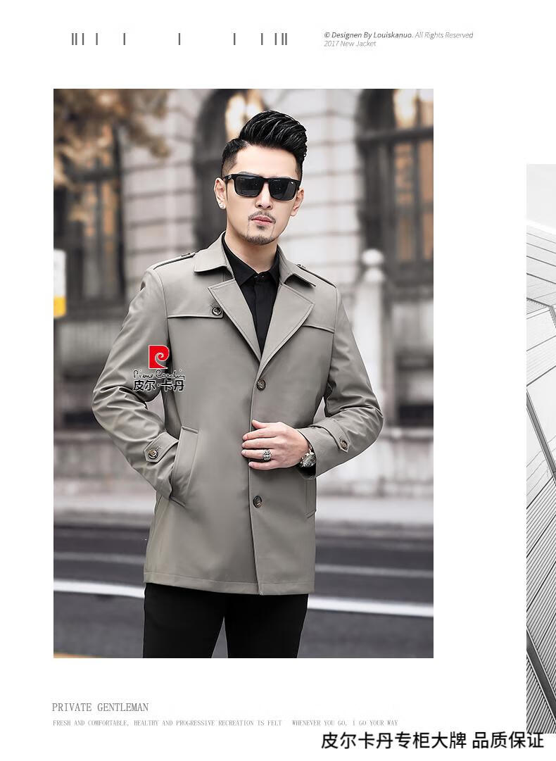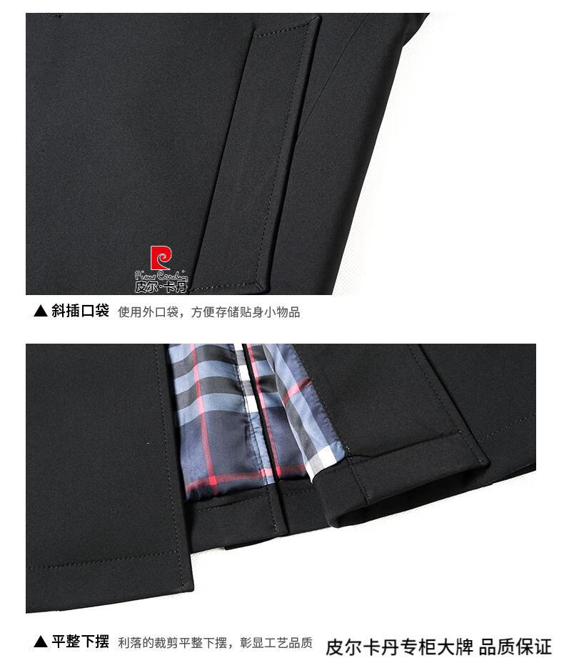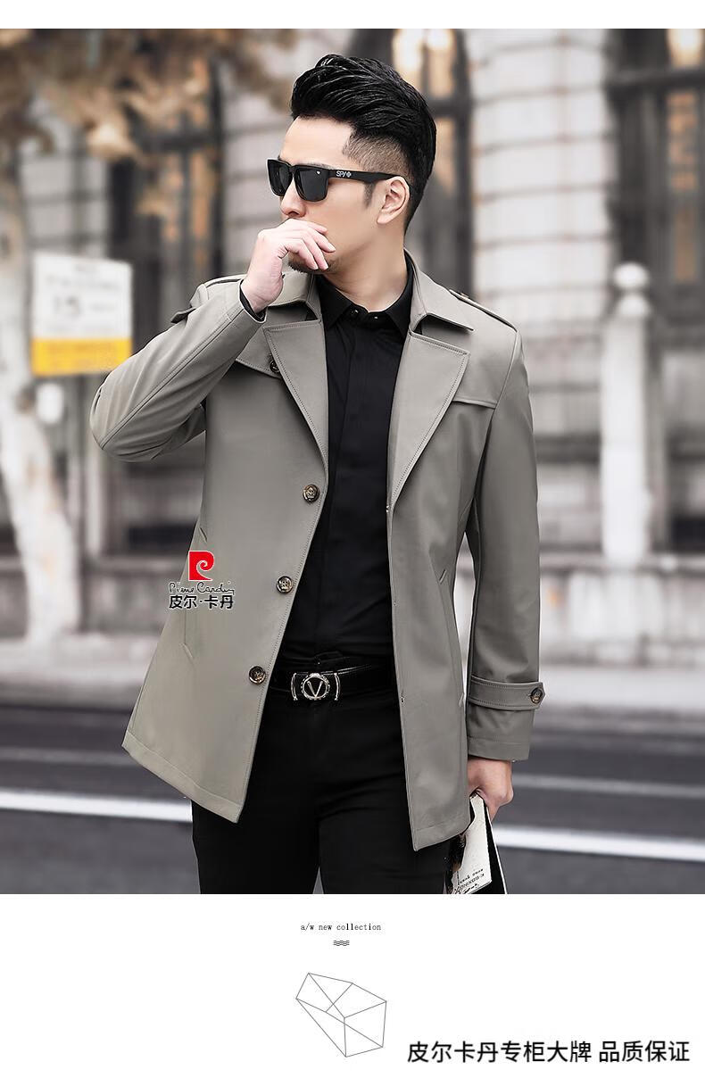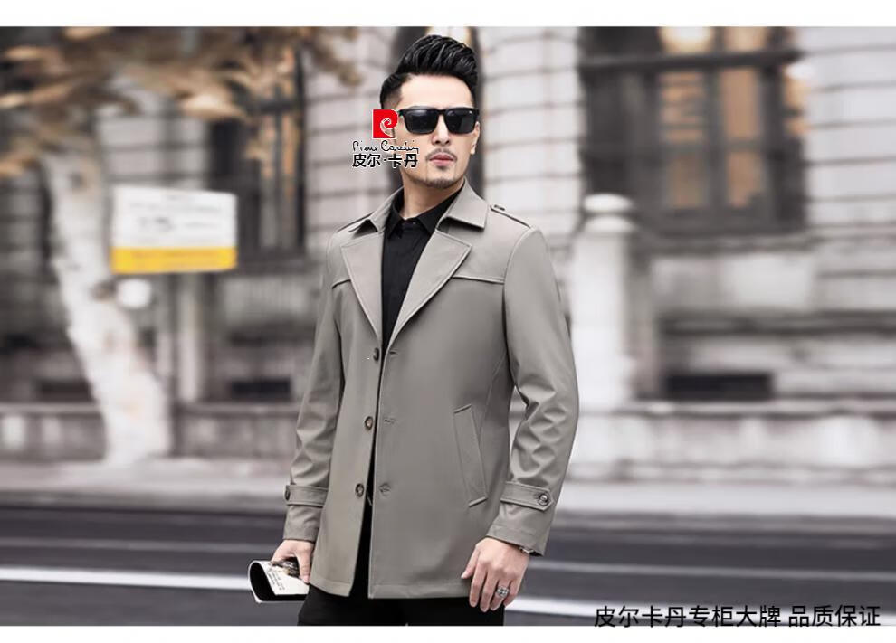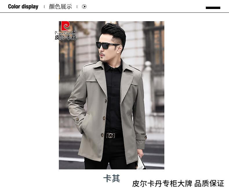 Pierre Cardin high-end men's windbreaker spring and autumn casual jacket slim short business versatile men's jacket fashion tops khaki 170/M recommended 100-125Jin Jin equals 0.5 kg