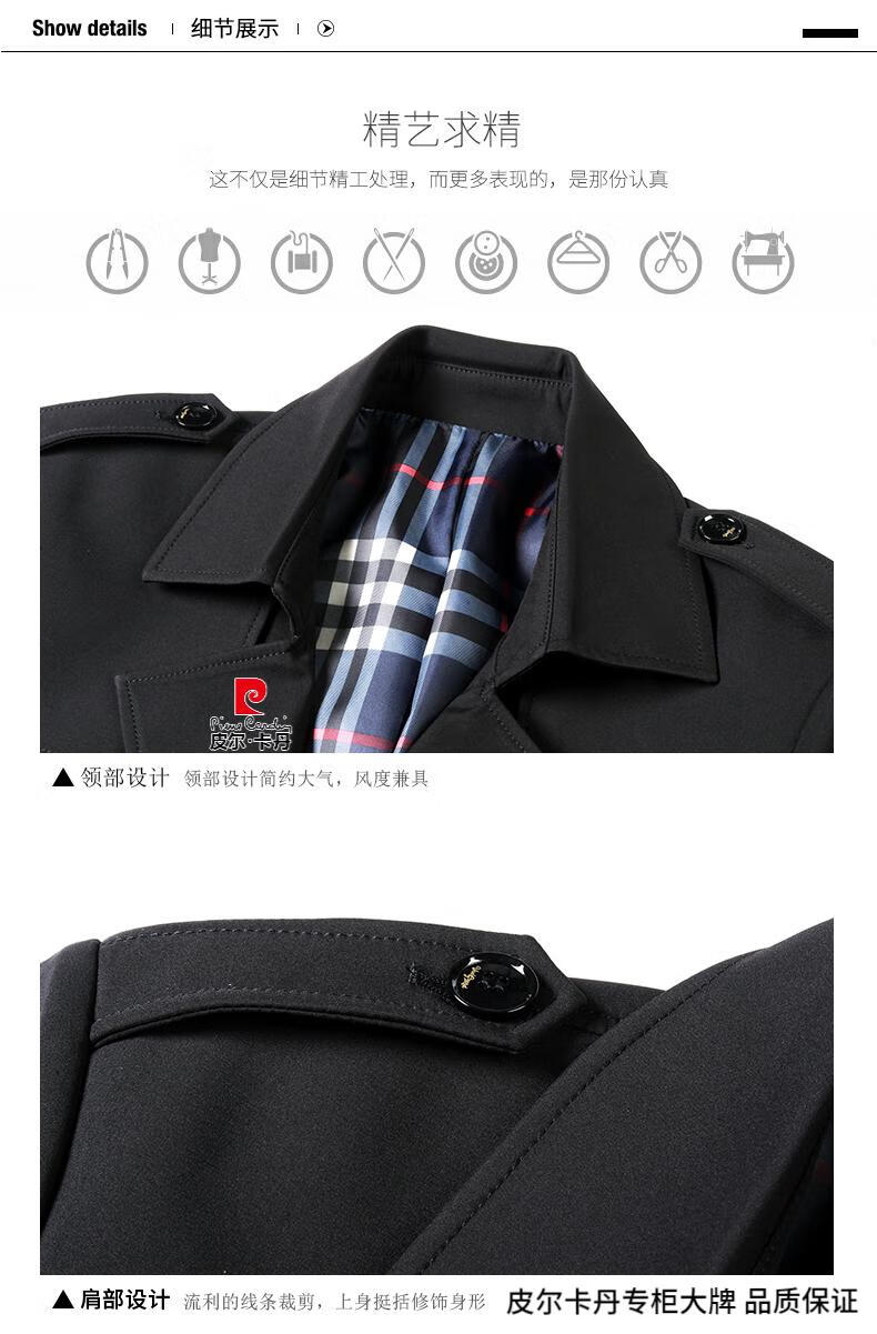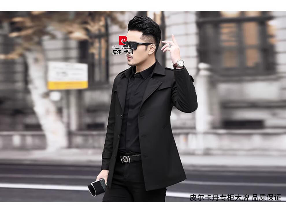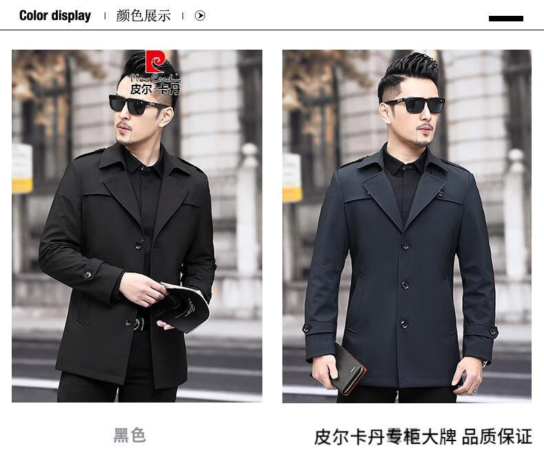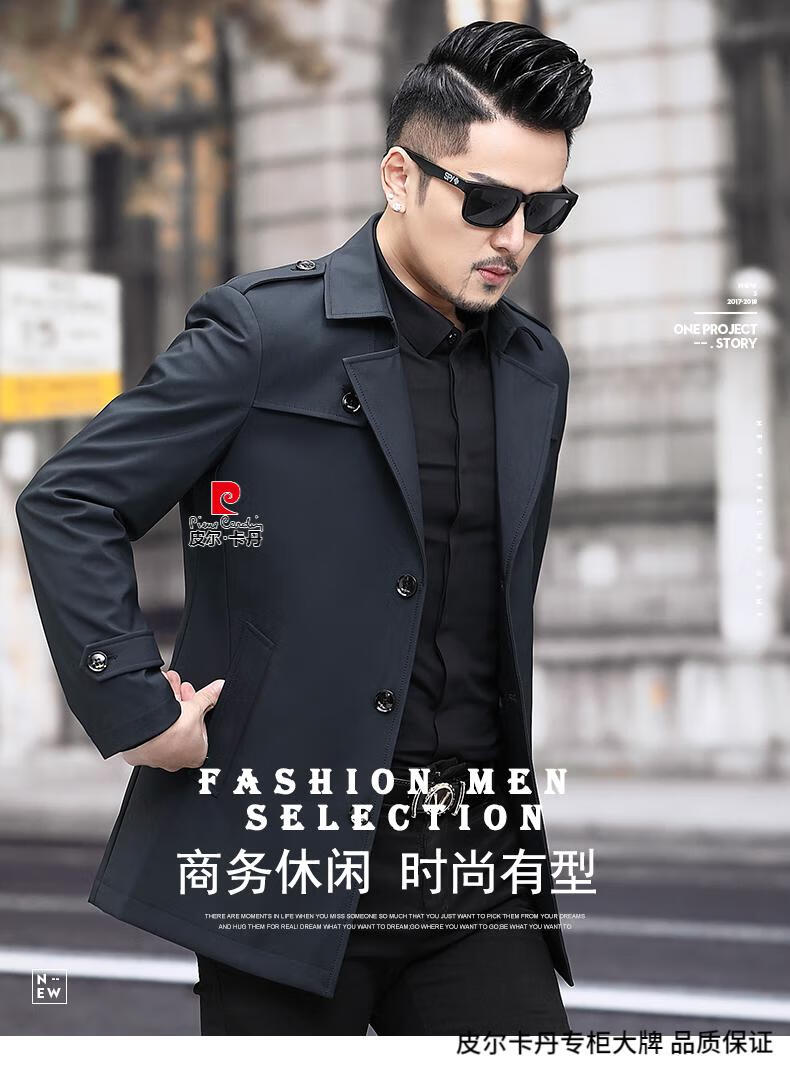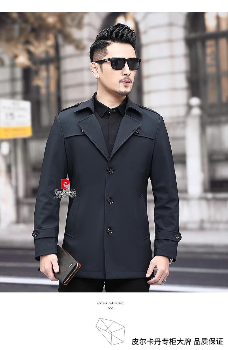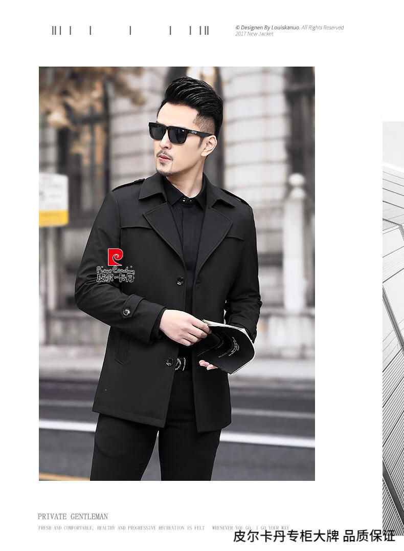 Pierre Cardin high-end men's windbreaker spring and autumn casual jacket slim short business versatile men's jacket fashion tops khaki 170/M recommended 100-125Jin Jin equals 0.5 kg