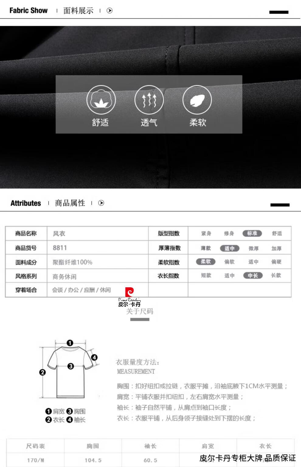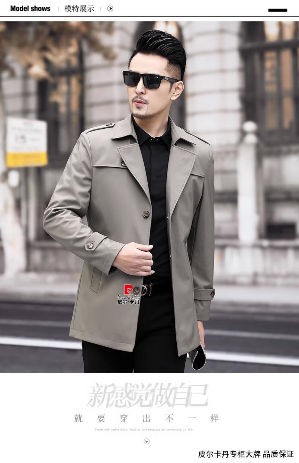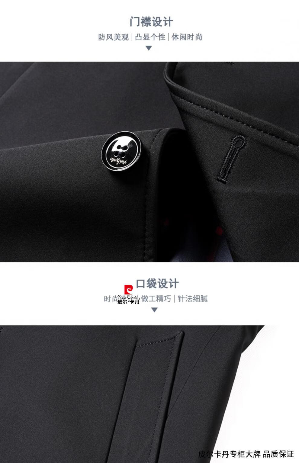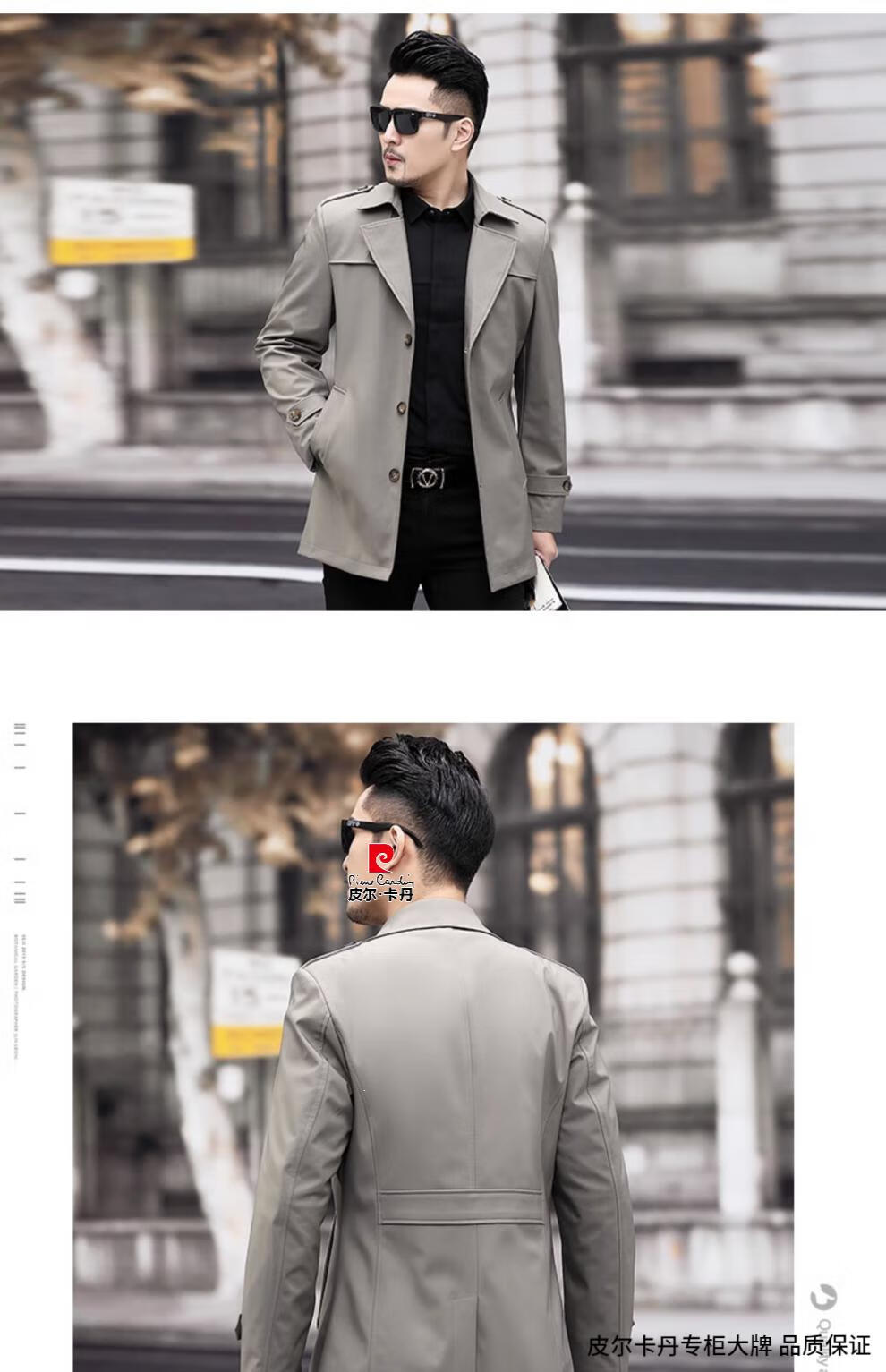 Pierre Cardin high-end men's windbreaker spring and autumn casual jacket slim short business versatile men's jacket fashion tops khaki 170/M recommended 100-125Jin Jin equals 0.5 kg