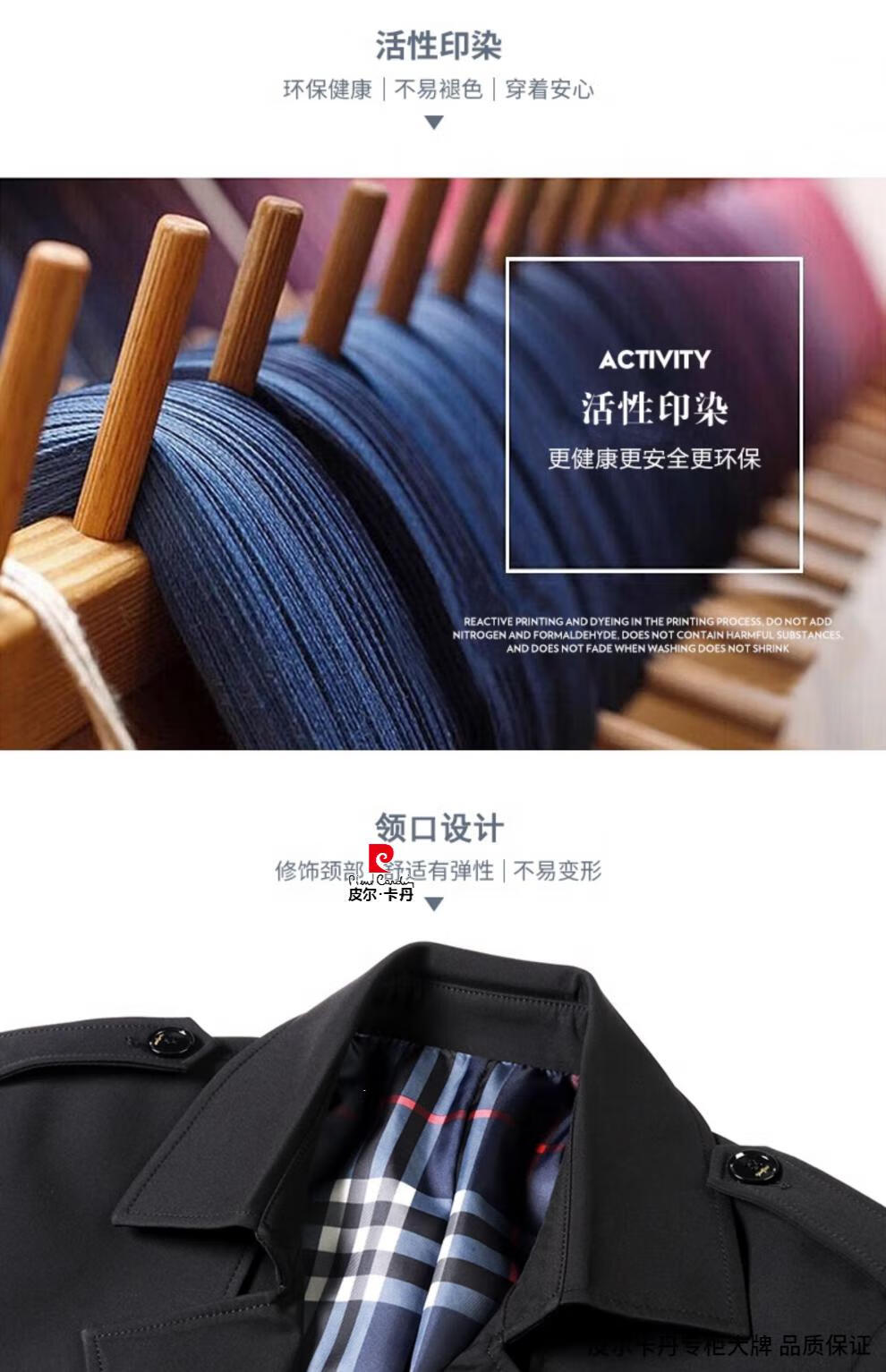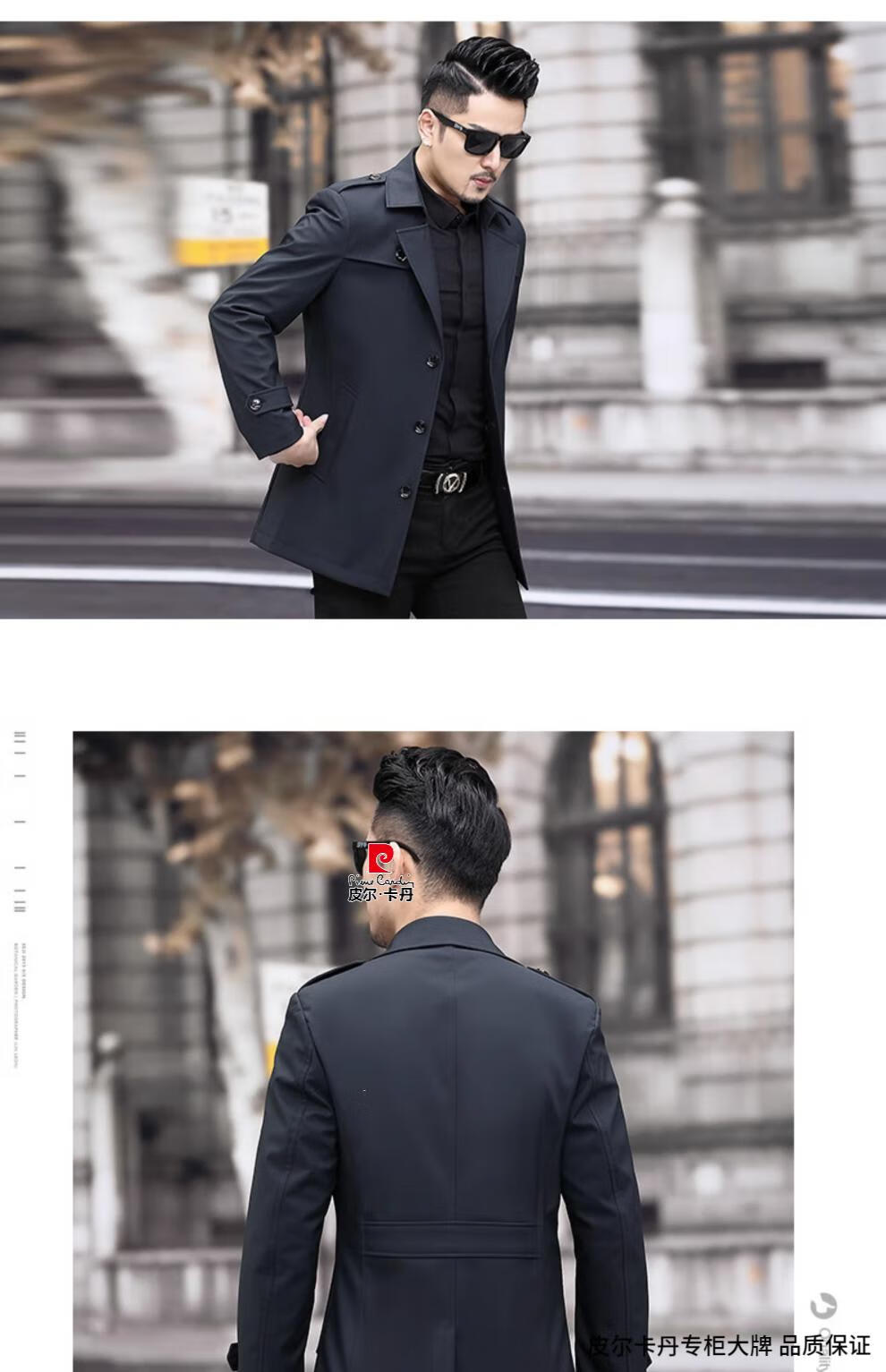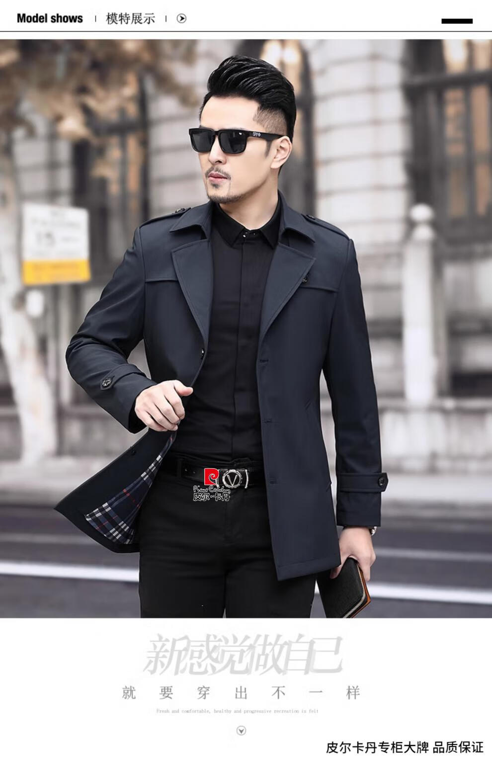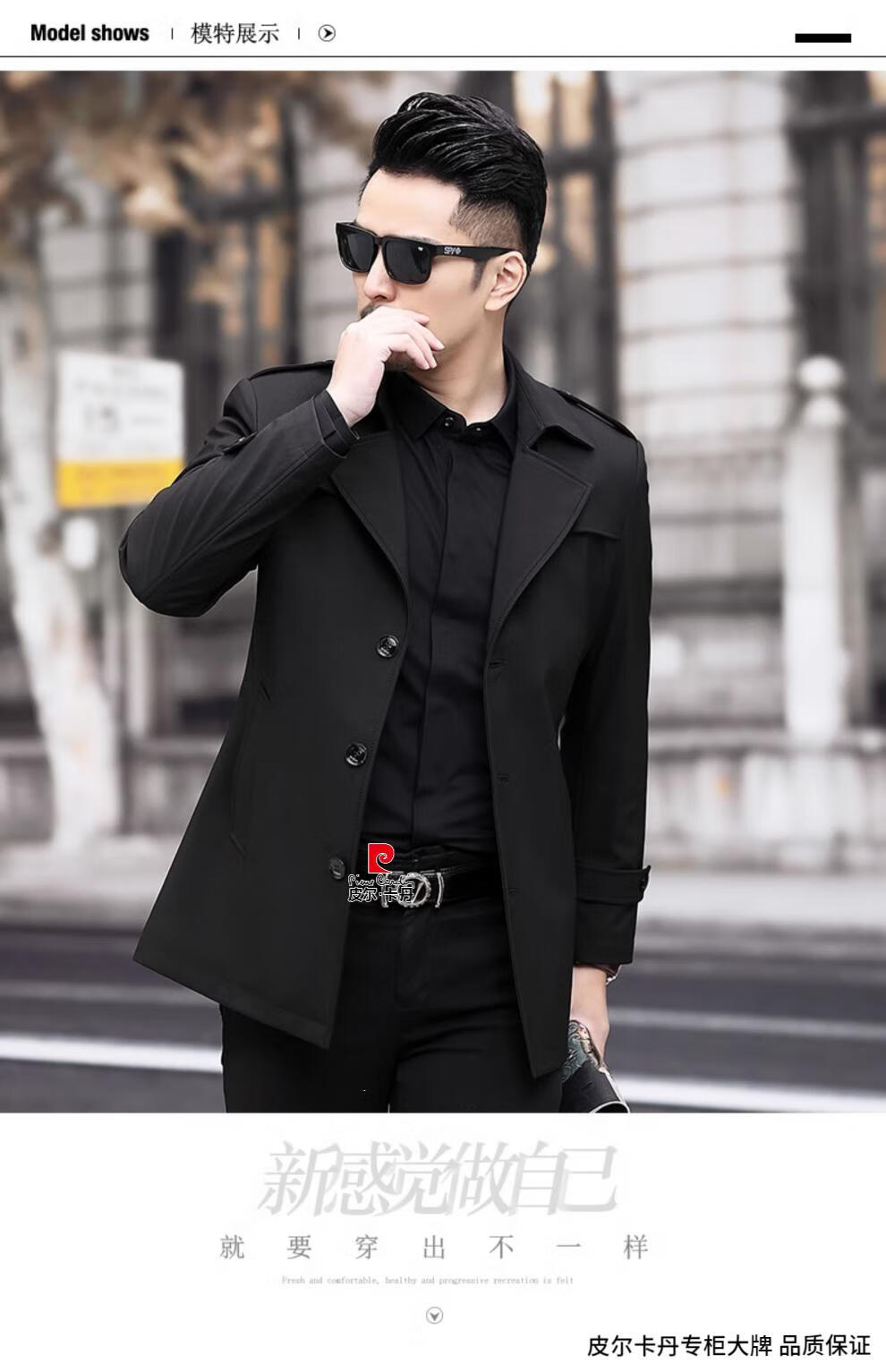 Pierre Cardin high-end men's windbreaker spring and autumn casual jacket slim short business versatile men's jacket fashion tops khaki 170/M recommended 100-125Jin Jin equals 0.5 kg