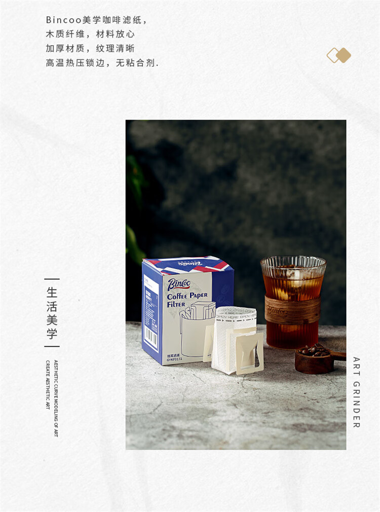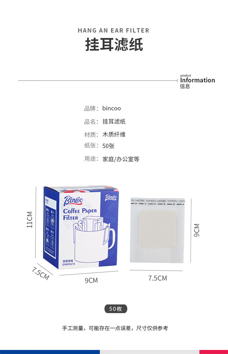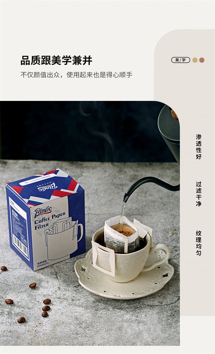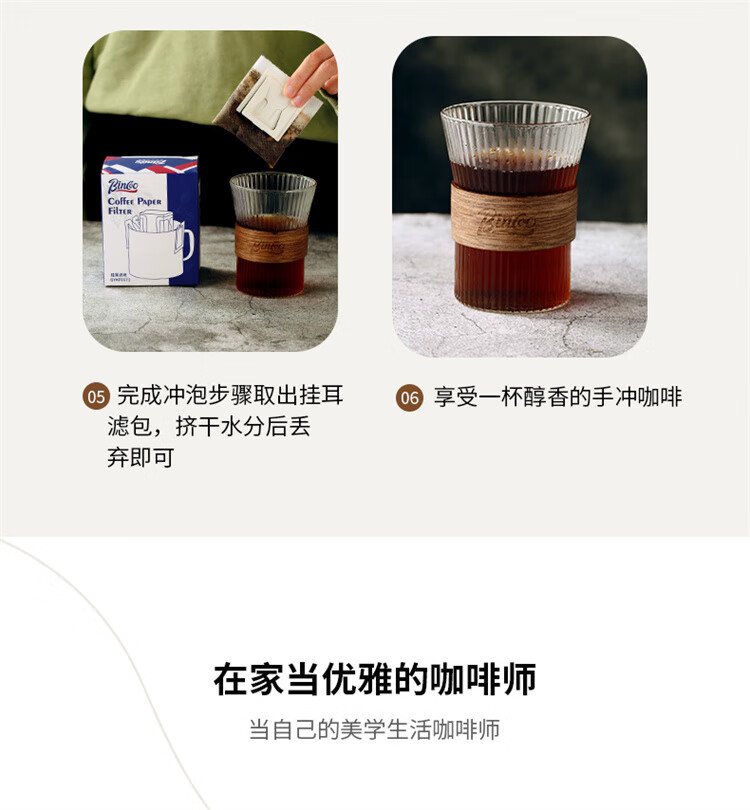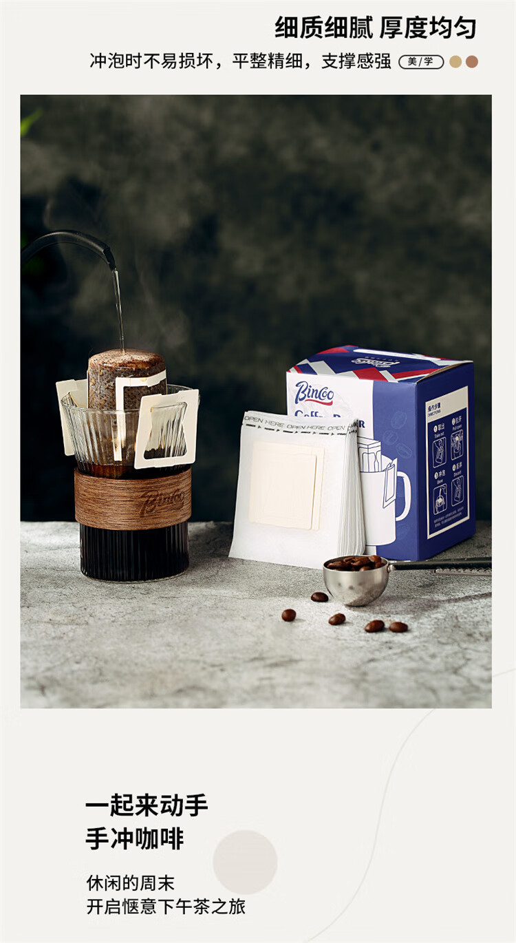 Bincoo hand-brewed coffee filter paper hanging ear coffee filter bag hand-brewed coffee filter paper box hanging ear filter paper 100 pieces