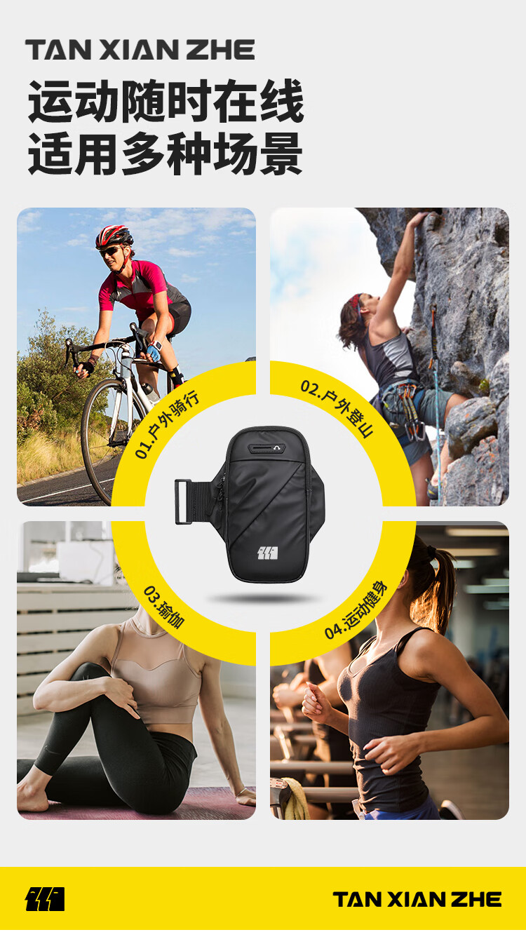 Explorer (TAN XIAN ZHE) mobile phone bag, running mobile phone carrying artifact, sports fitness arm bag, portable outdoor hiking arm bag, mountaineering bag, anti-sweat black breathable model