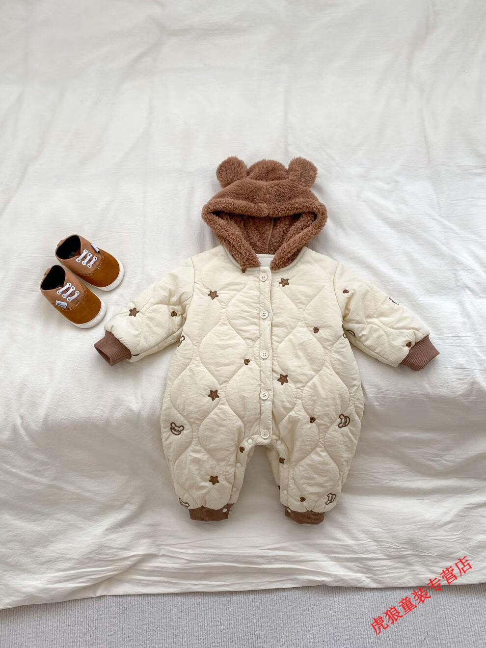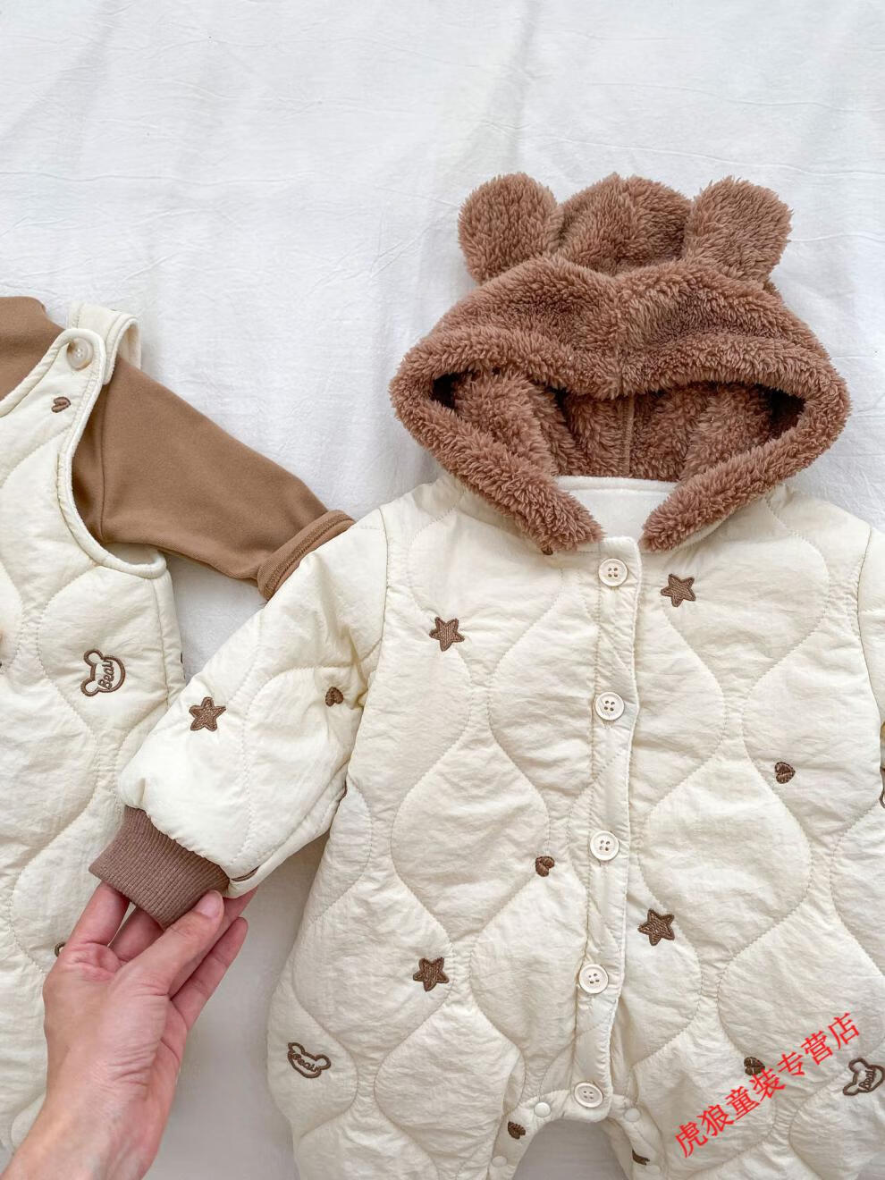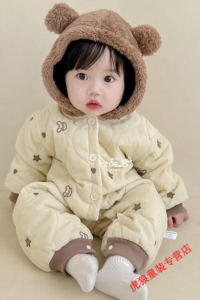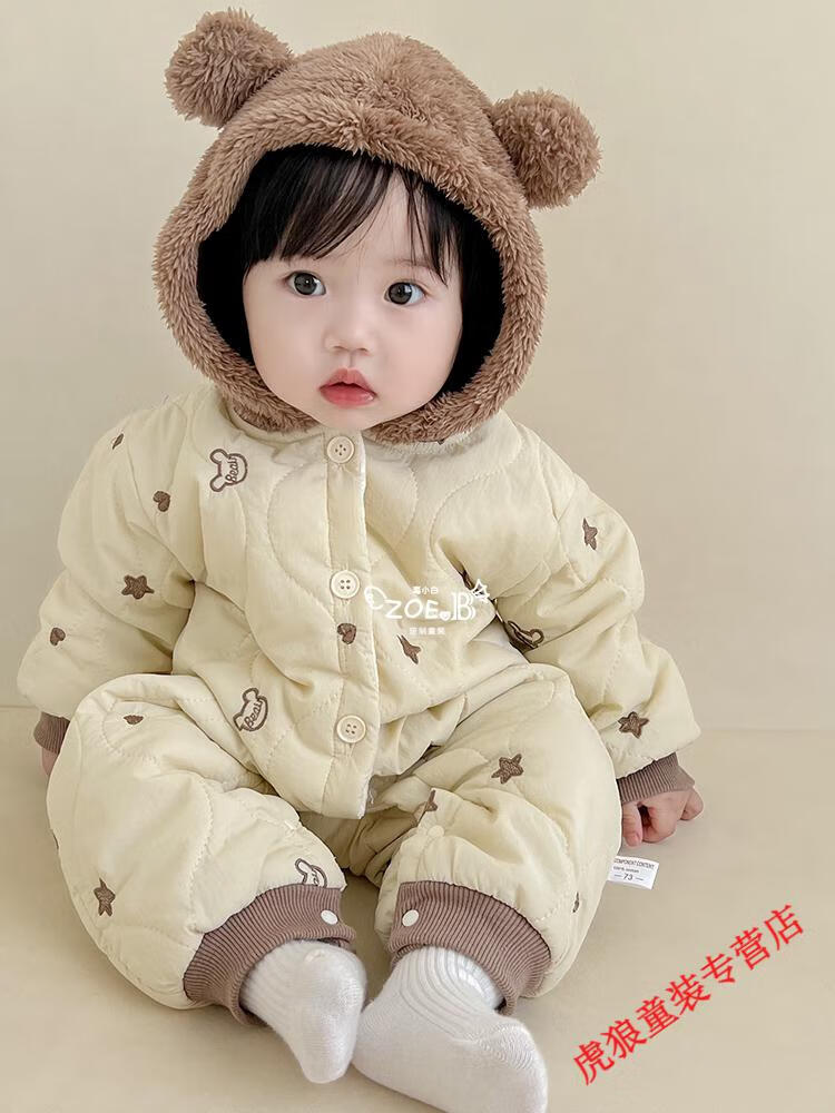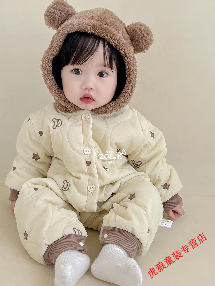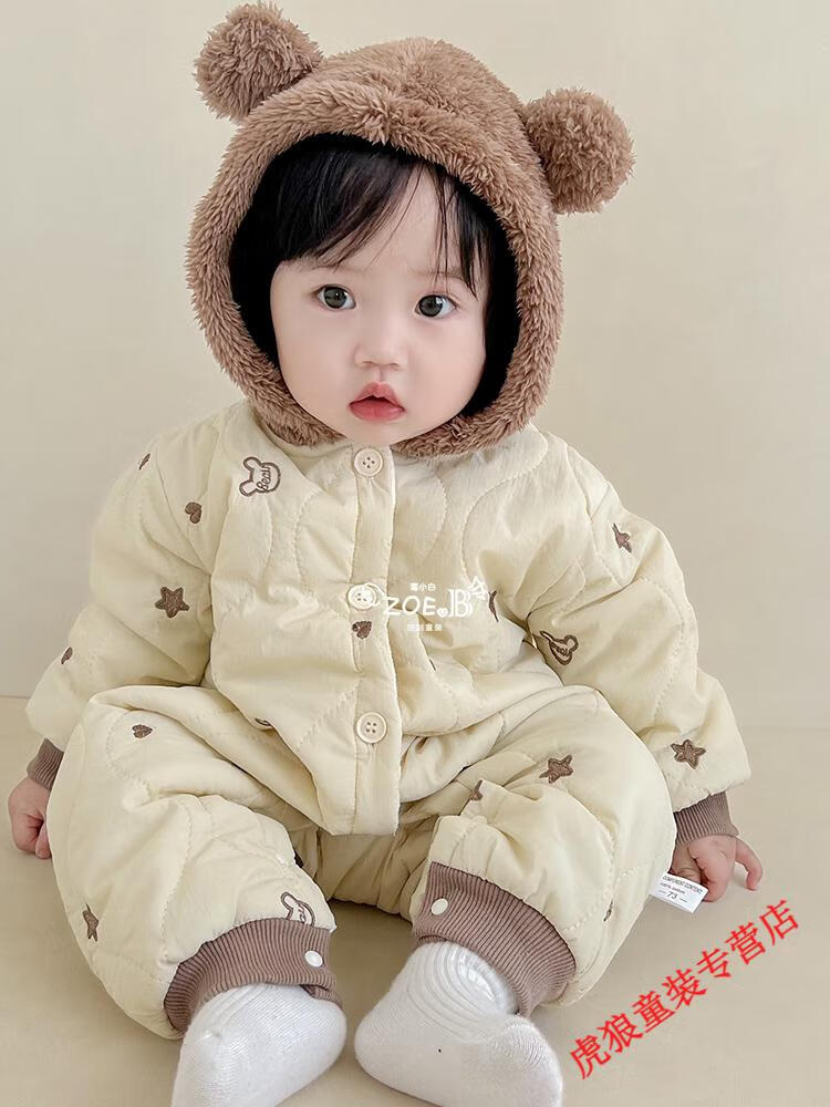 G.duck baby clothes, winter quilted onesies, newborn babies, super cute bear warm cotton clothes, winter huggies, bear clothes (padded style) 80cm