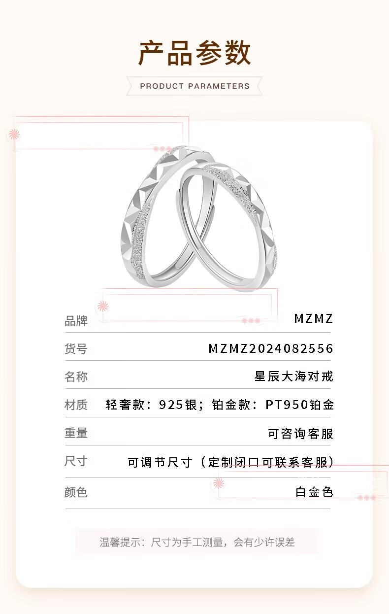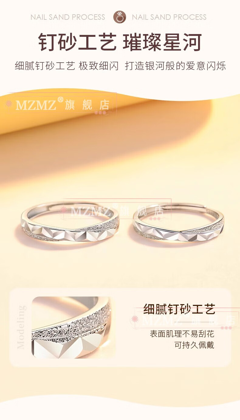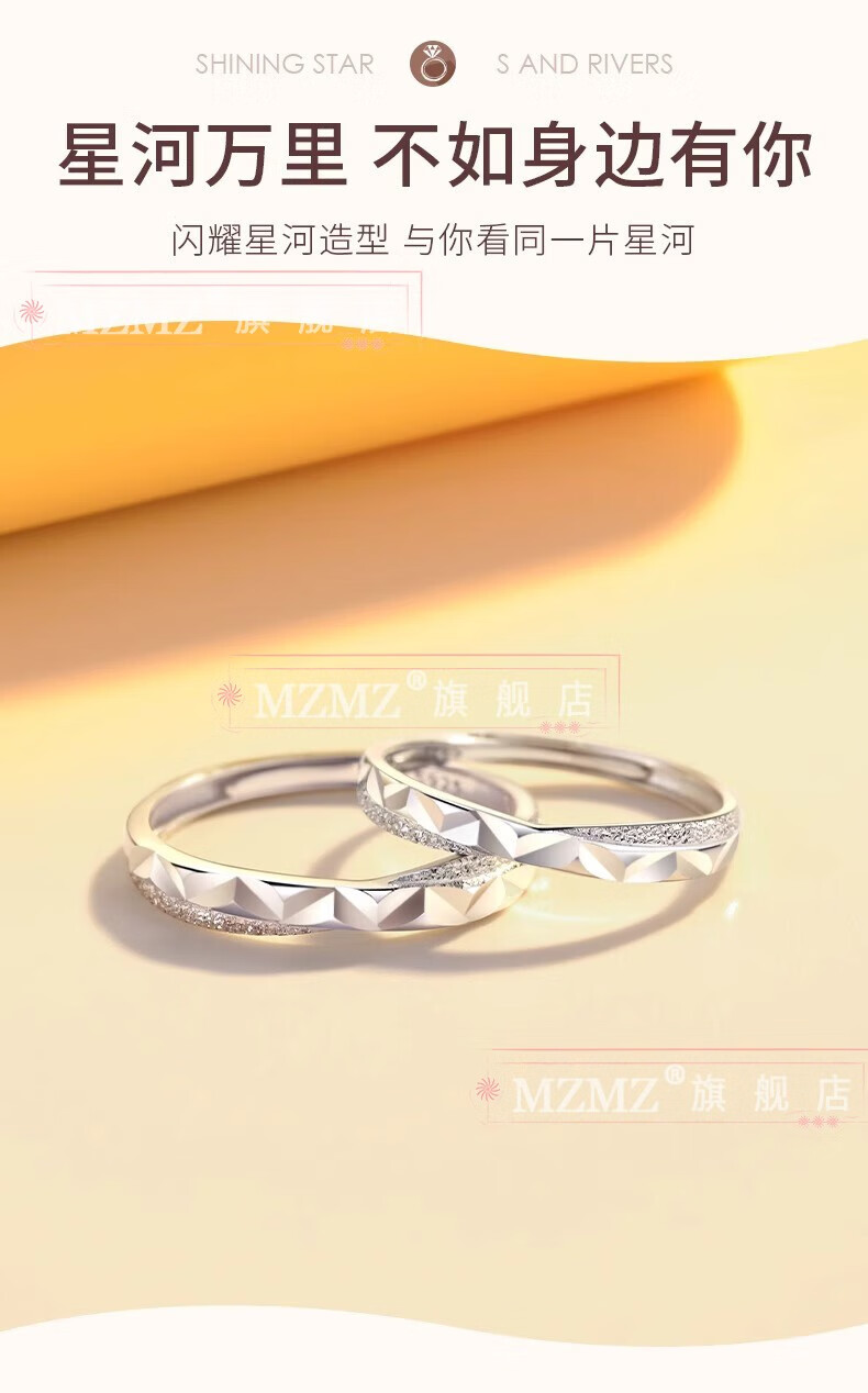 MZMZ Stars and Sea Couple Platinum Ring PT950 Platinum Light Luxury Pair of Rings Valentine's Day Birthday Gift for Girlfriend Light Luxury Style - Single Ring (Remarks Male/Female)