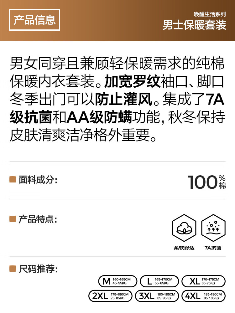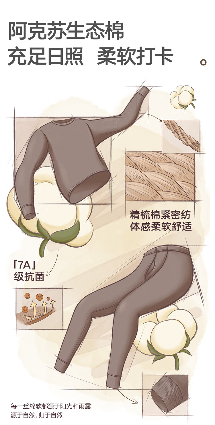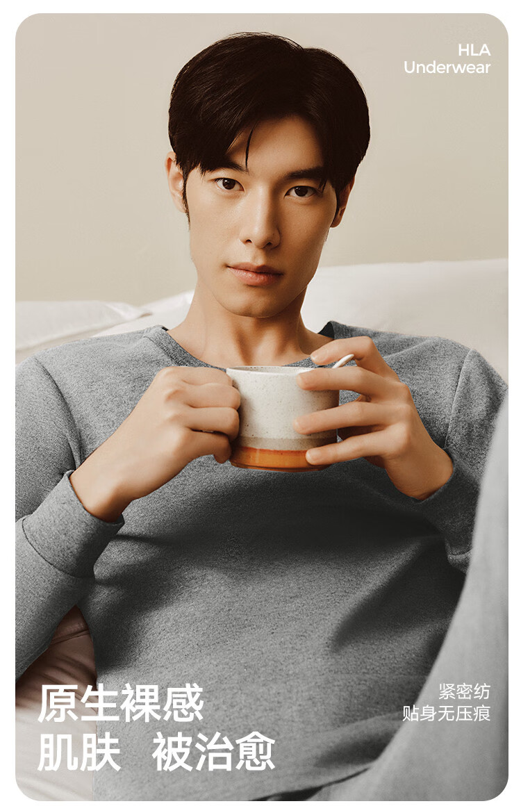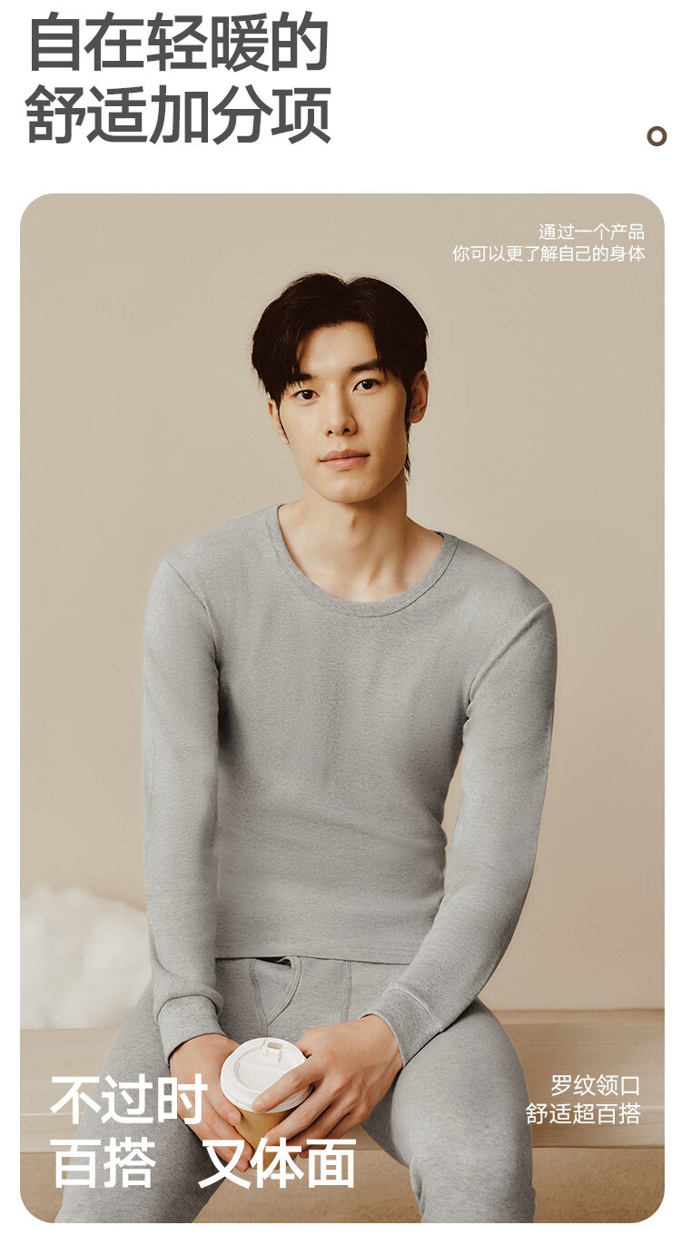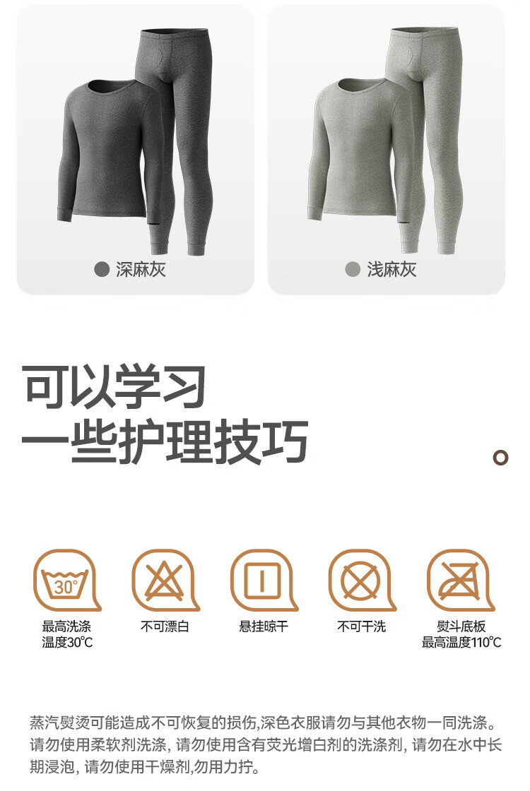 Heilan House (HLA) Thermal Underwear Men's Autumn Clothes and Autumn Pants Men's 100% Cotton Antibacterial and Anti-mite Warm Jersey and Pants Bottoming Set 100% Cotton Antibacterial and Anti-mite - Glacier Gray 3XL/185 (Weight 170-190Jin Jin is equal to 0.5 kg)