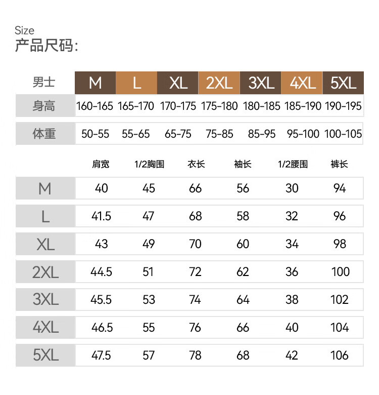 China (cm) 160-165/84-86 165-170 / 88-90 167-172 / 92-96 168-173 / 98-102 170-176 / 106-110