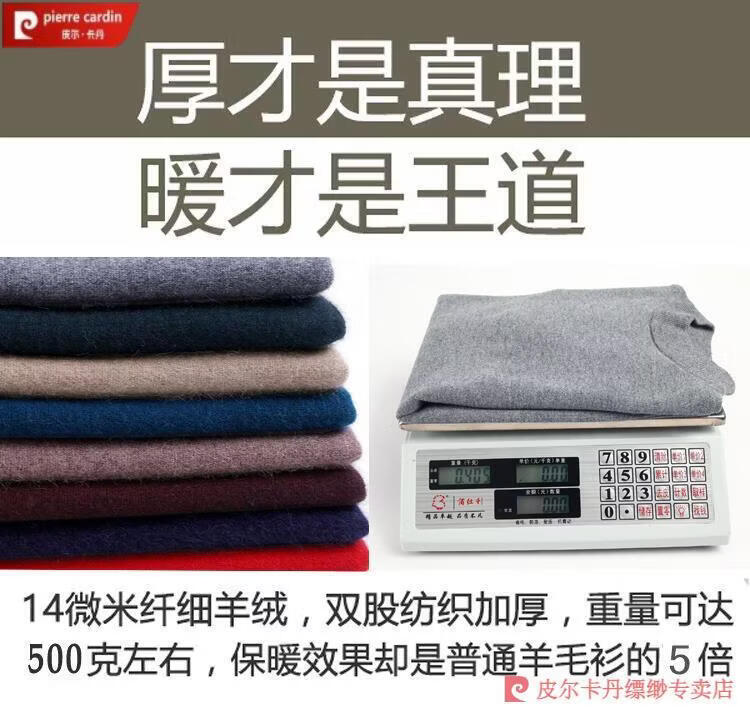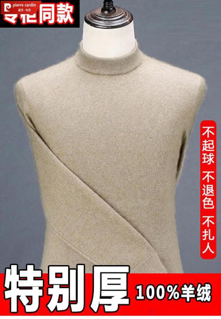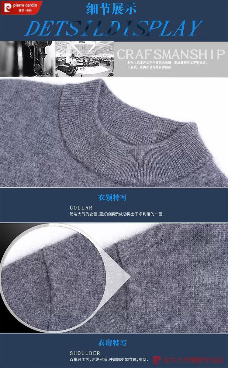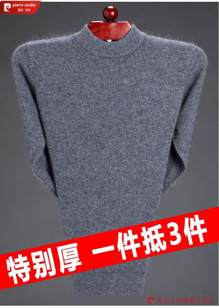 Pierre Cardin 100 woolen sweater men's half turtleneck autumn and winter thickened solid color cashmere sweater knitted pullover middle-aged sweater gray half turtleneck (100% non-pilling) L 170 size (suitable for 120-140Jin Jin equals 0.5 kg)