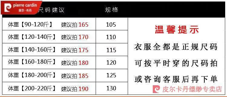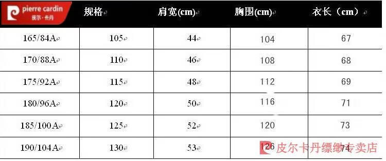 China (cm) 165 / 88-90 170 / 96-98 175 / 108-110 180 / 118-122 185 / 126-130