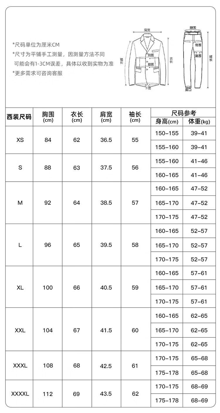 China (cm) 160-165/84-86 165-170 / 88-90 167-172 / 92-96 168-173 / 98-102 170-176 / 106-110