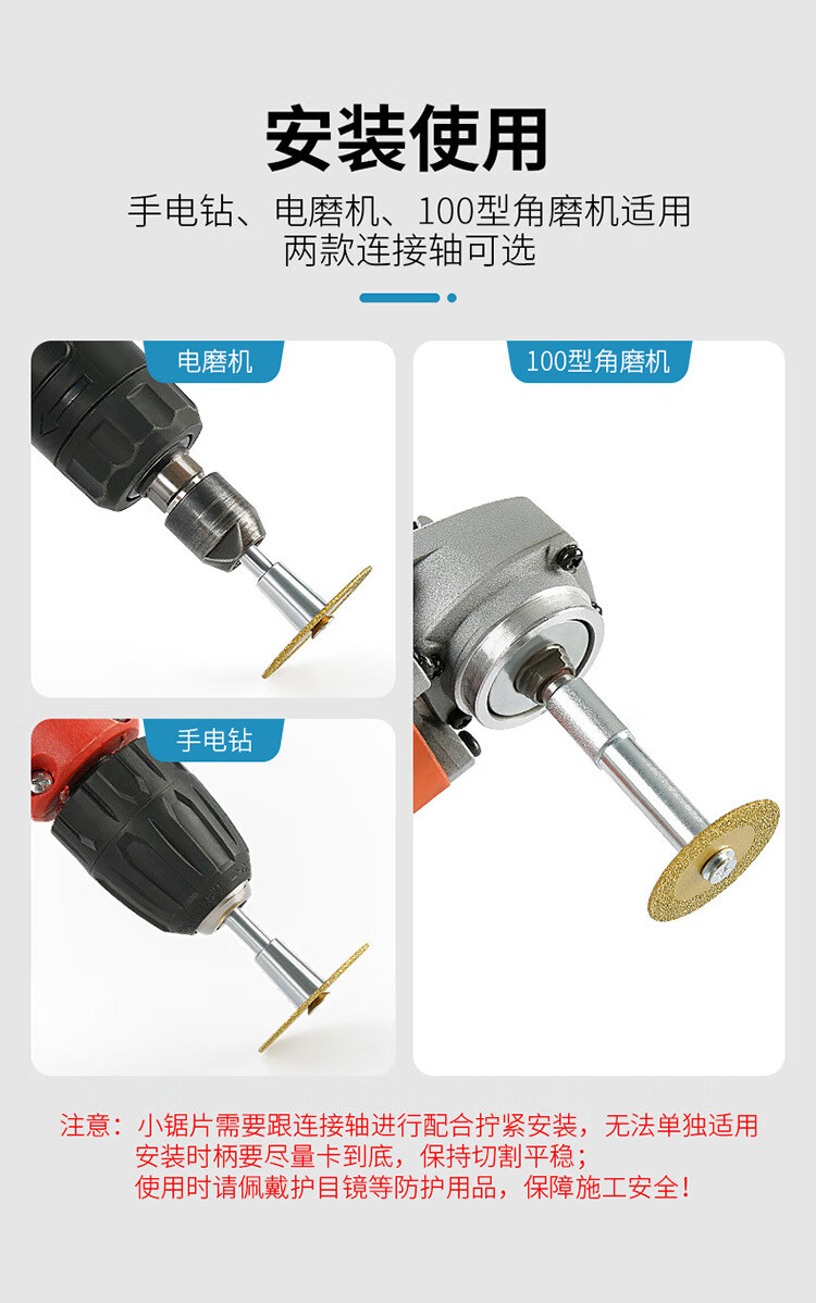 Yuhan brazing electric drill small saw blade emery cutting piece beautiful seam clearing slice marble jade ceramic tile engraving piece professional style 40mm small slice 3 pieces set with angle grinder connecting shaft 1 piece 4.5cm