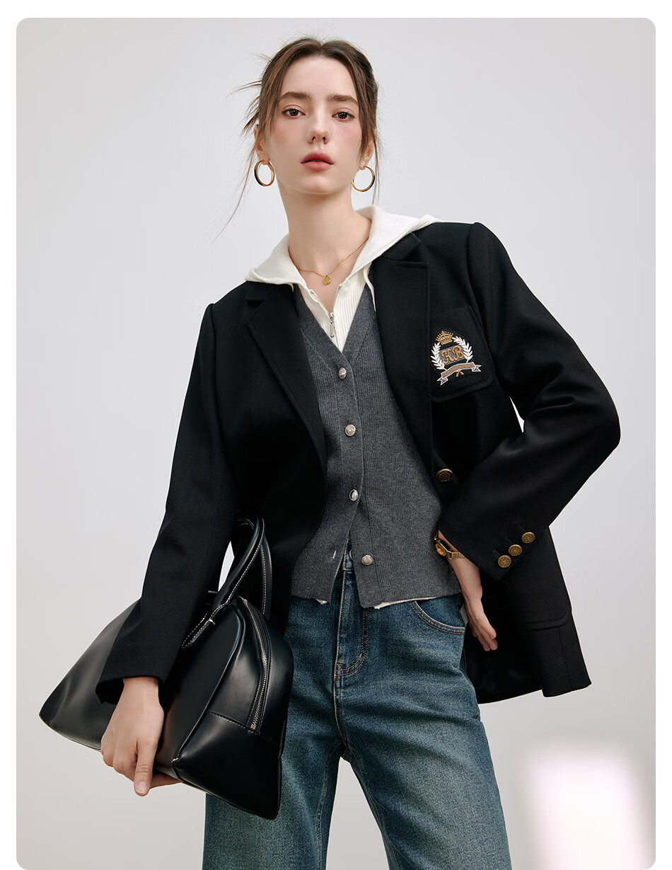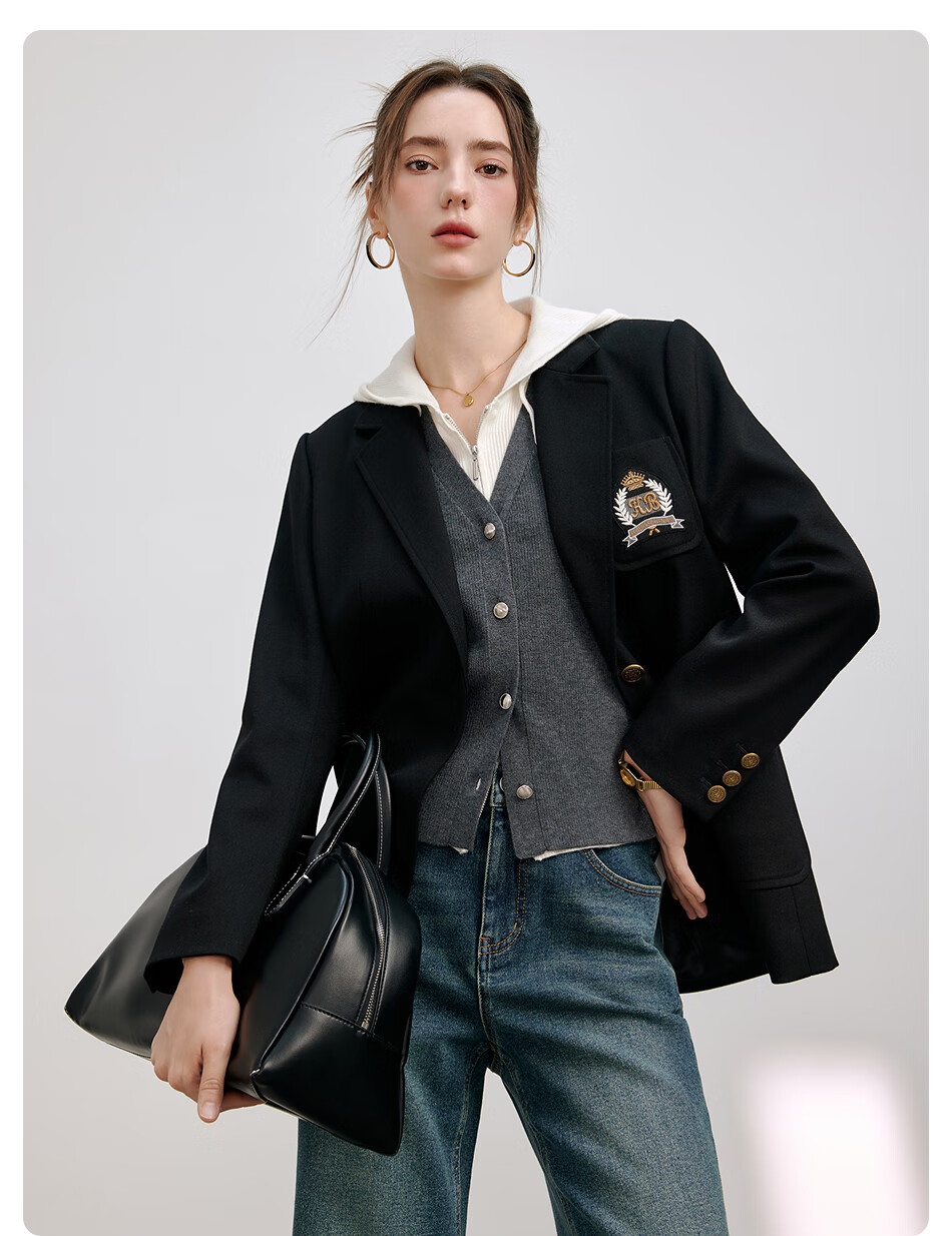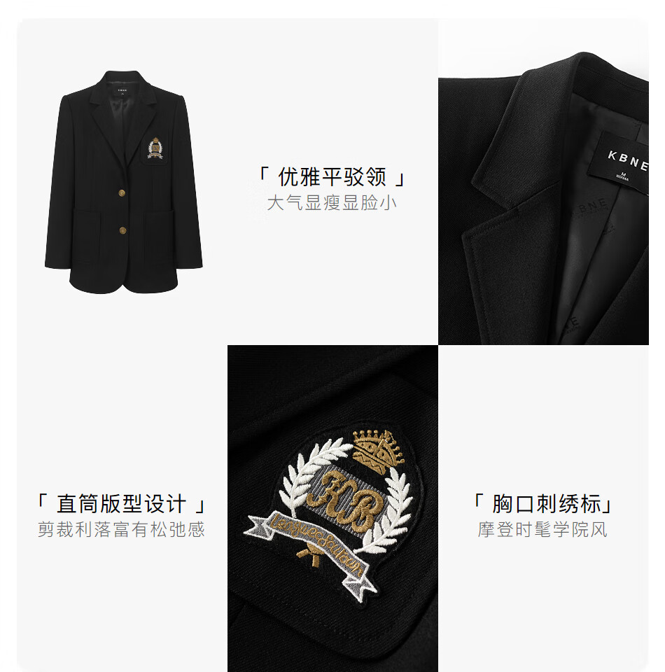 KBNE Black Casual Suit Jacket Feminine Suit 2025 New Workplace Commuting Formal Tops Spring and Autumn Women Black S