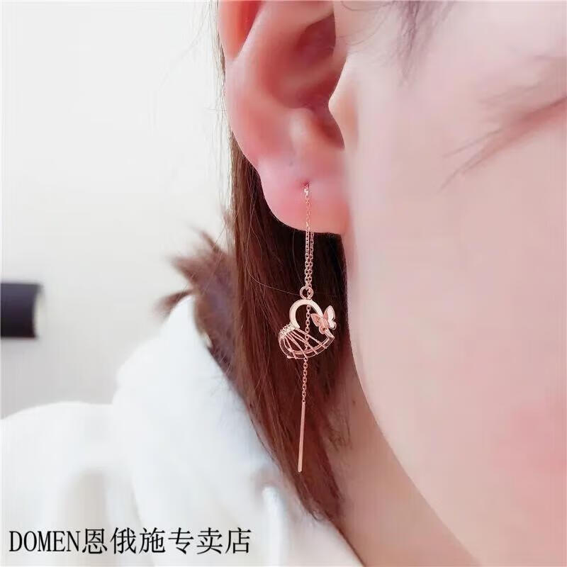 DOMEN Old Phoenix Gold Store Russian Korean Style Brushed Love Earrings Plated with 18K Rose Gold Color Gold Light Luxurious Temperament Women Love Ear Wire Rose Gold Pair