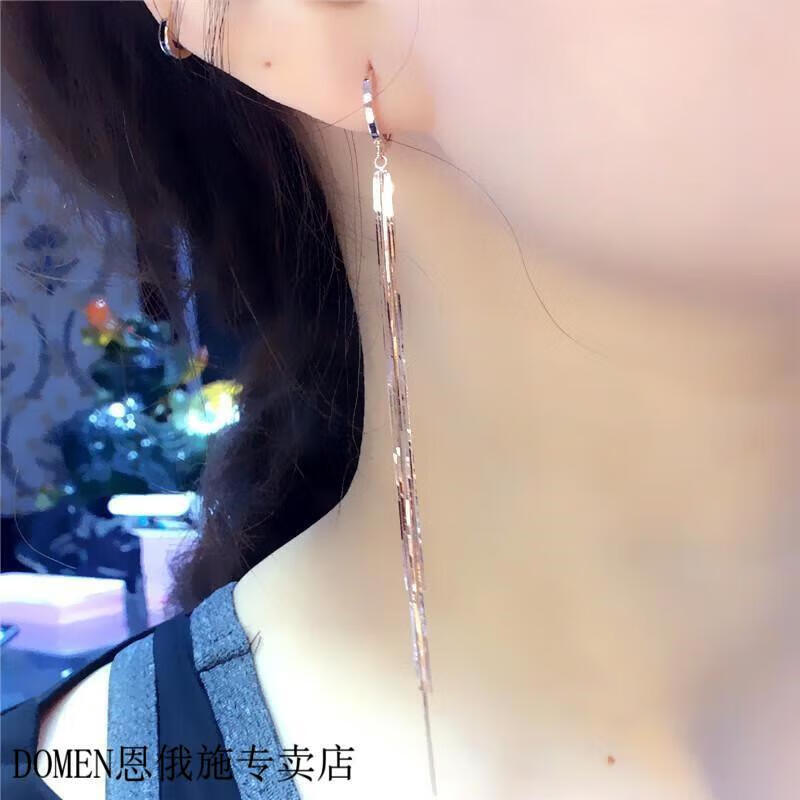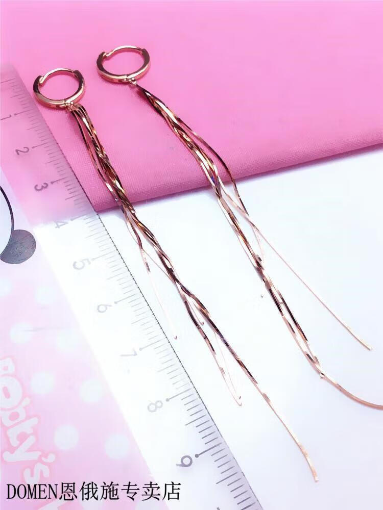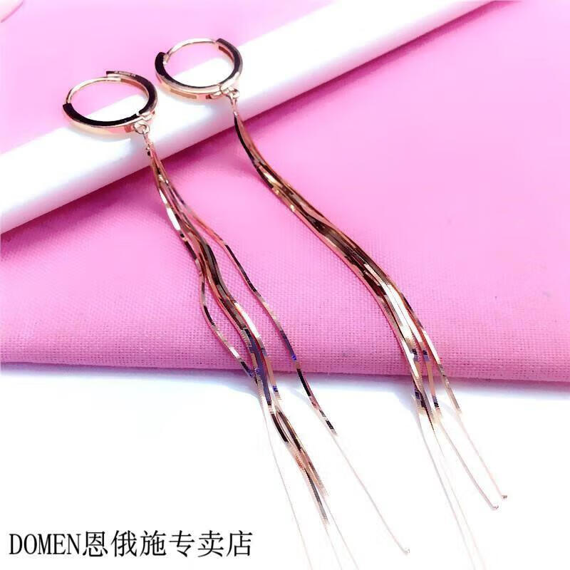 DOMEN Old Phoenix Gold Store Russian Women's New Simple Purple Gold Snake Bone Tassel Earrings Versatile 18k Color Gold Plated Tassel Earrings Rose Gold Pair