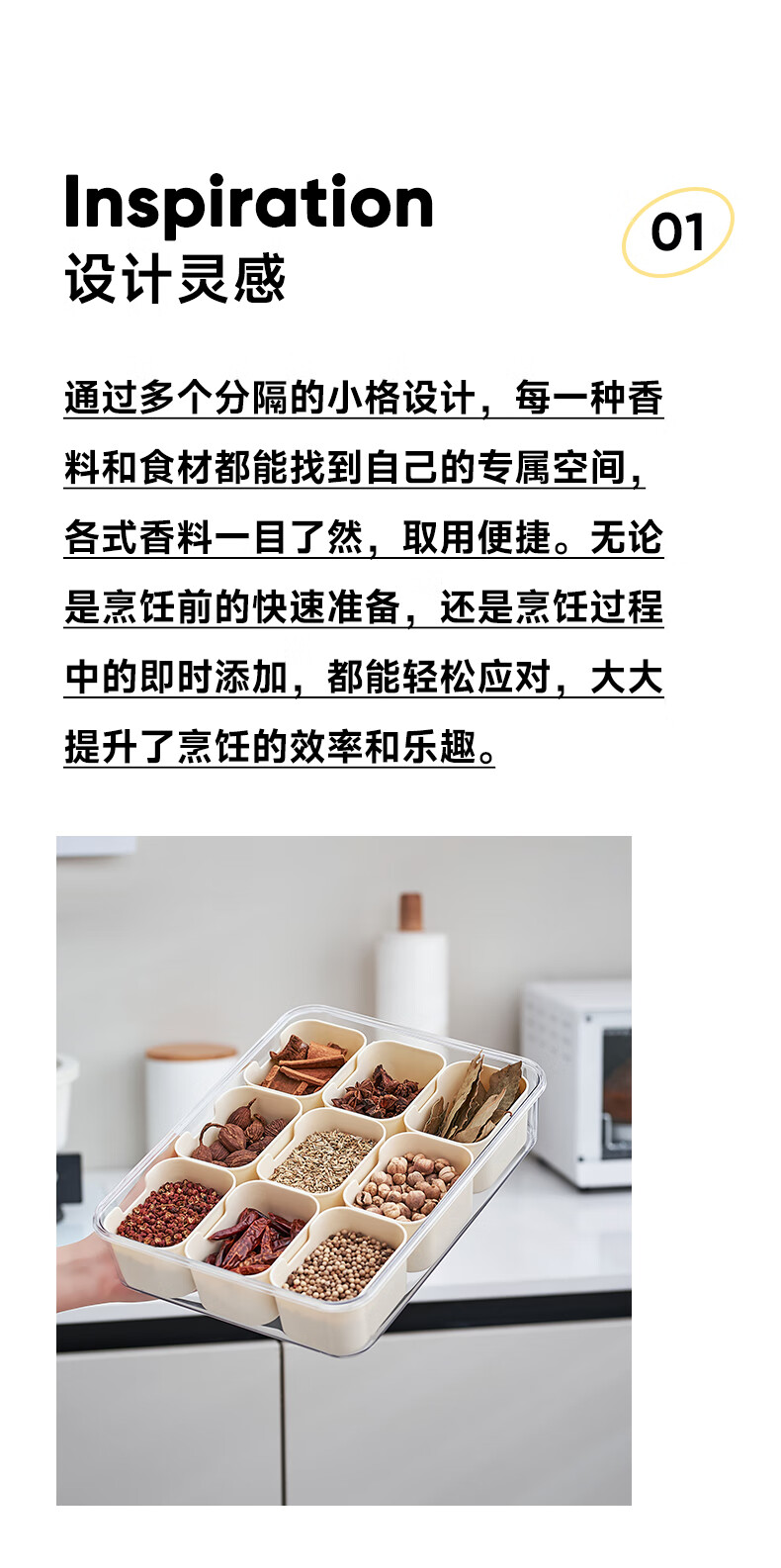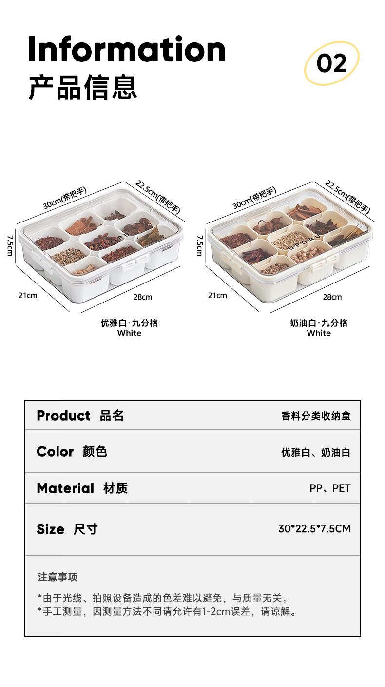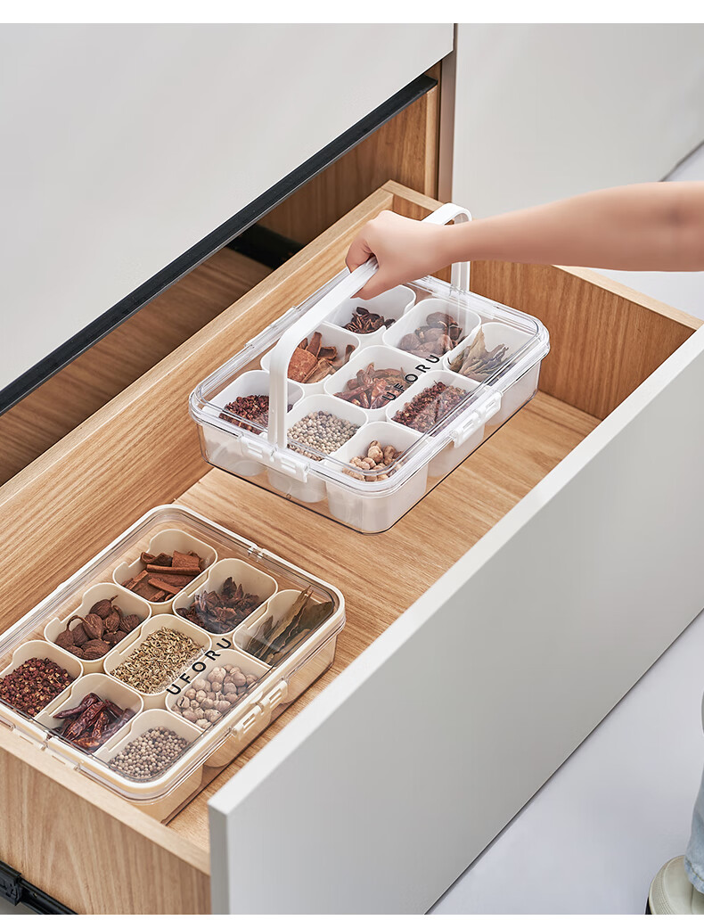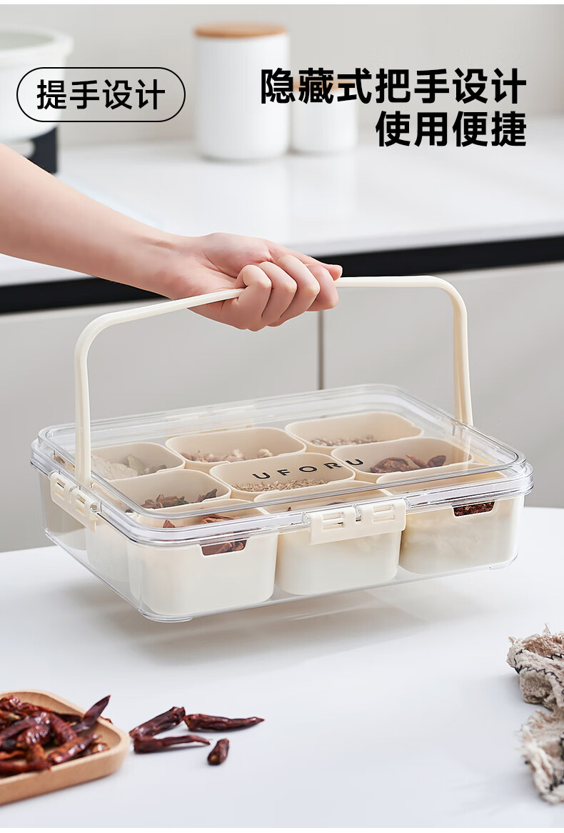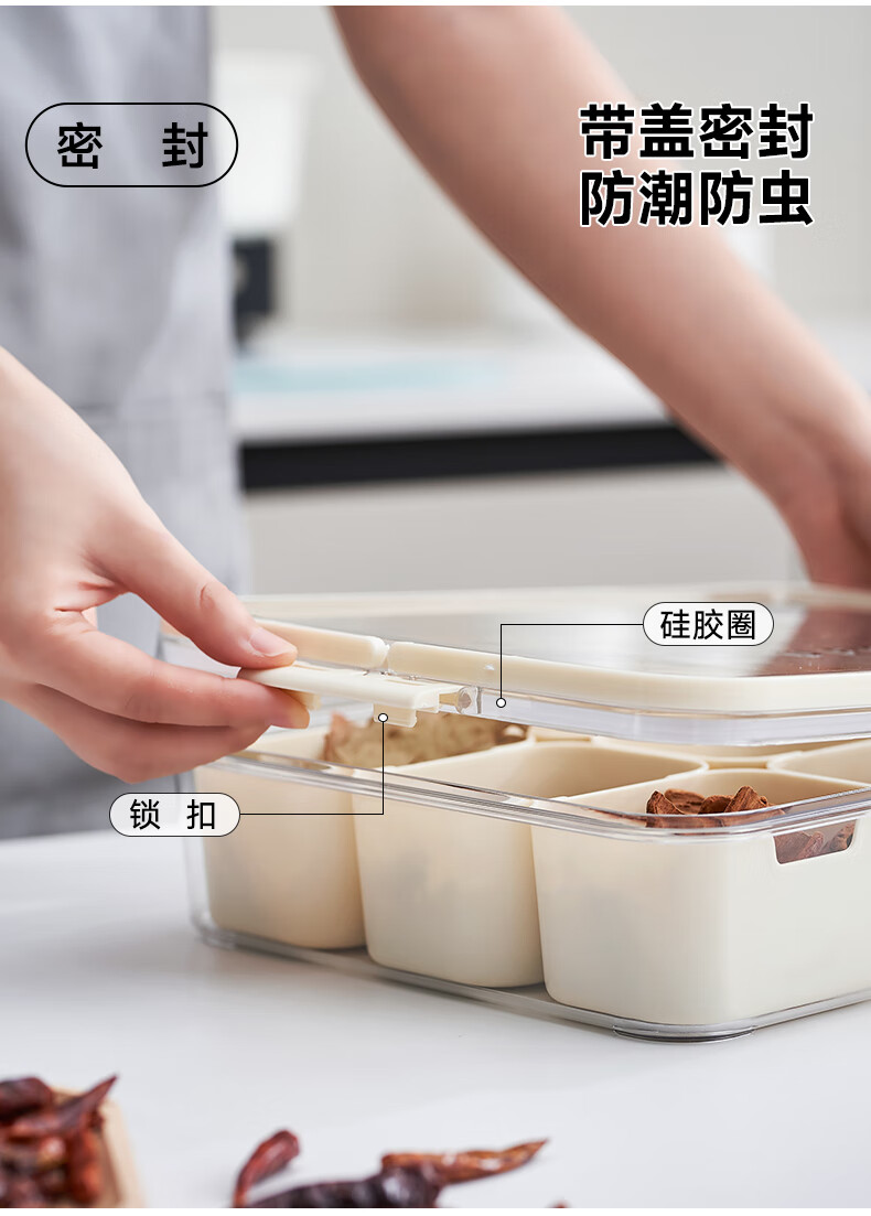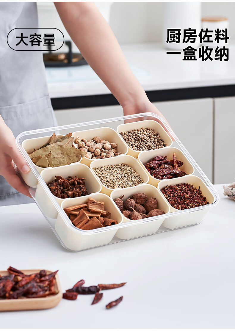 Cabinet star spice storage box household condiments aniseed seasoning jar food grade dried chili seasoning jar divided kitchen seasoning box cream white nine-compartment with handle sealed and moisture-proof