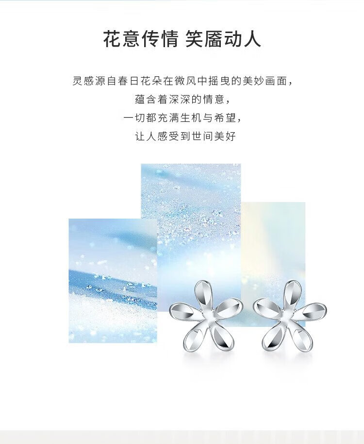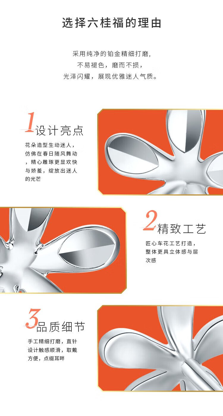 Liuguifu Jewelry Platinum Earrings Women's PT950 Ear Stick Earrings Flower Platinum Earrings Birthday Gift 0.85g