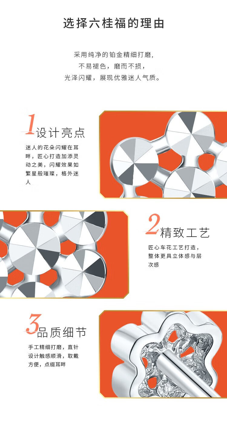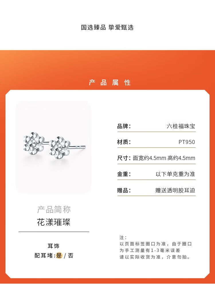 Liuguifu Jewelry Platinum Earrings Women's PT950 Ear Stick Ear Needles Flower Imitation Diamond Platinum Earrings Birthday Gift 0.90g