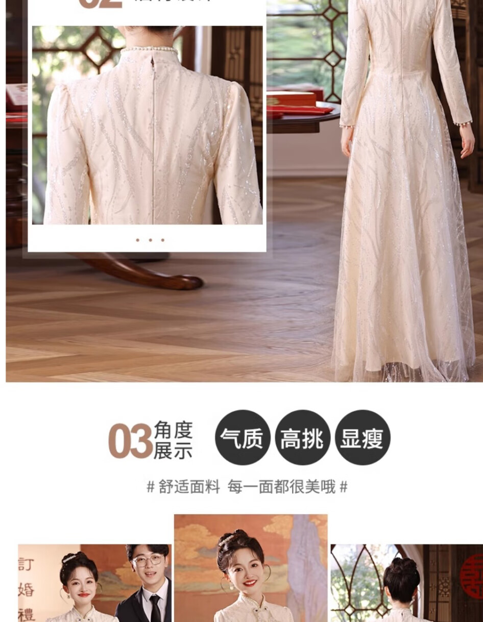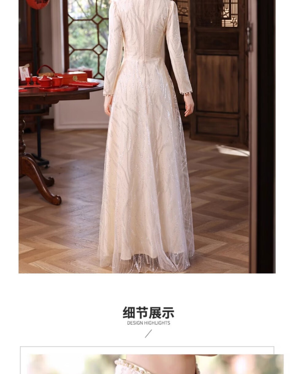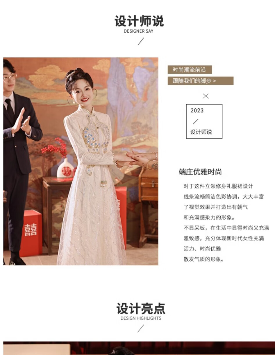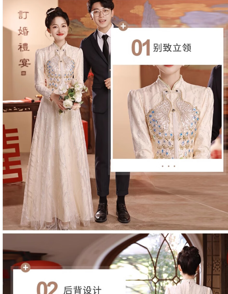Maxbeth Champagne Color Bridal Toast Wear 2025 New Autumn Chinese Style Engagement Cheongsam Evening Dress Dress Evening Dress Host Champagne M