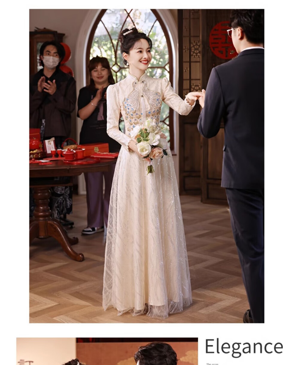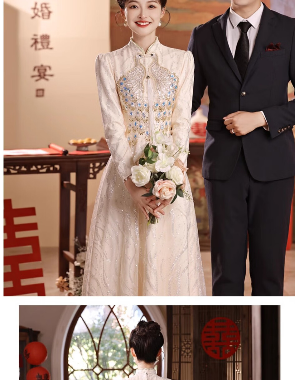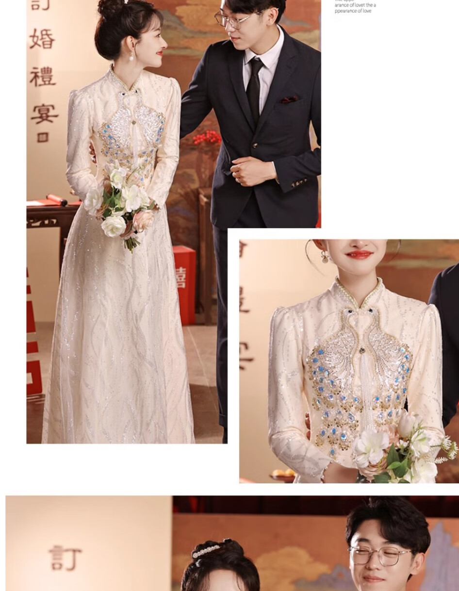 Maxbeth Champagne Color Bridal Toast Wear 2025 New Autumn Chinese Style Engagement Cheongsam Evening Dress Dress Evening Dress Host Champagne M