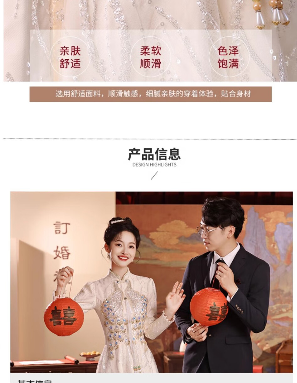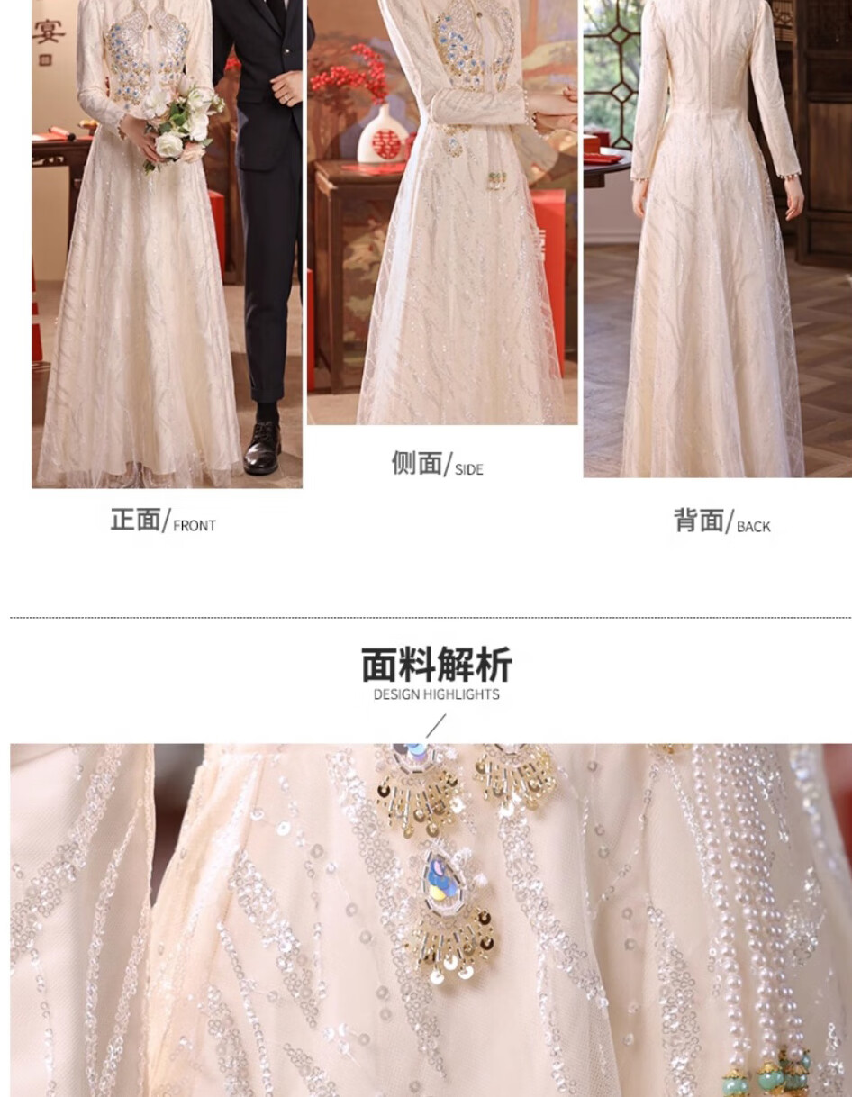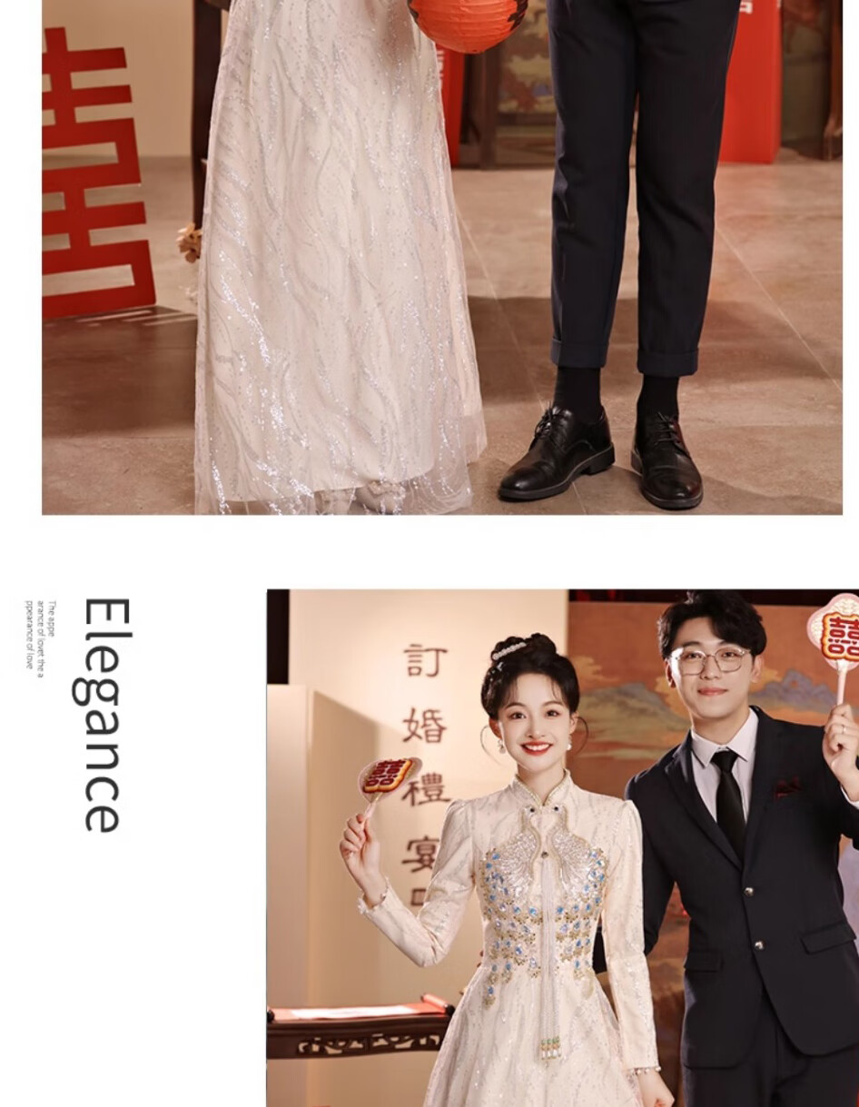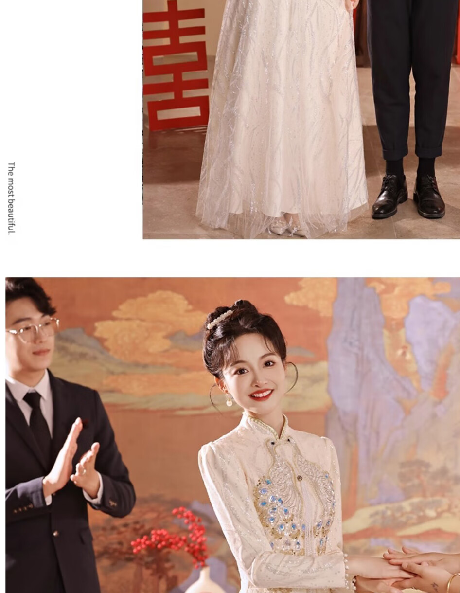 Maxbeth Champagne Color Bridal Toast Wear 2025 New Autumn Chinese Style Engagement Cheongsam Evening Dress Dress Evening Dress Host Champagne M