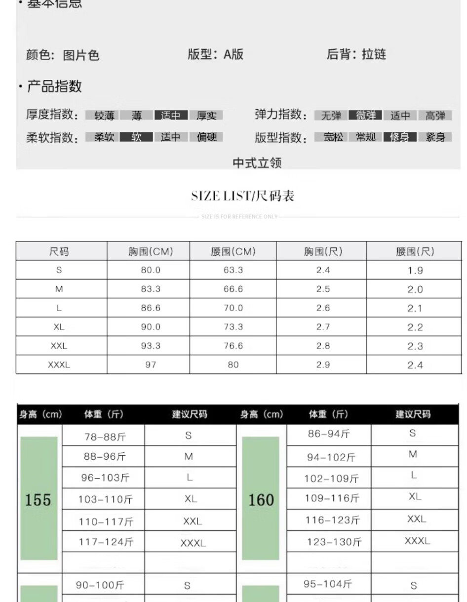 China (cm) 160-165/84-86 165-170 / 88-90 167-172 / 92-96 168-173 / 98-102 170-176 / 106-110