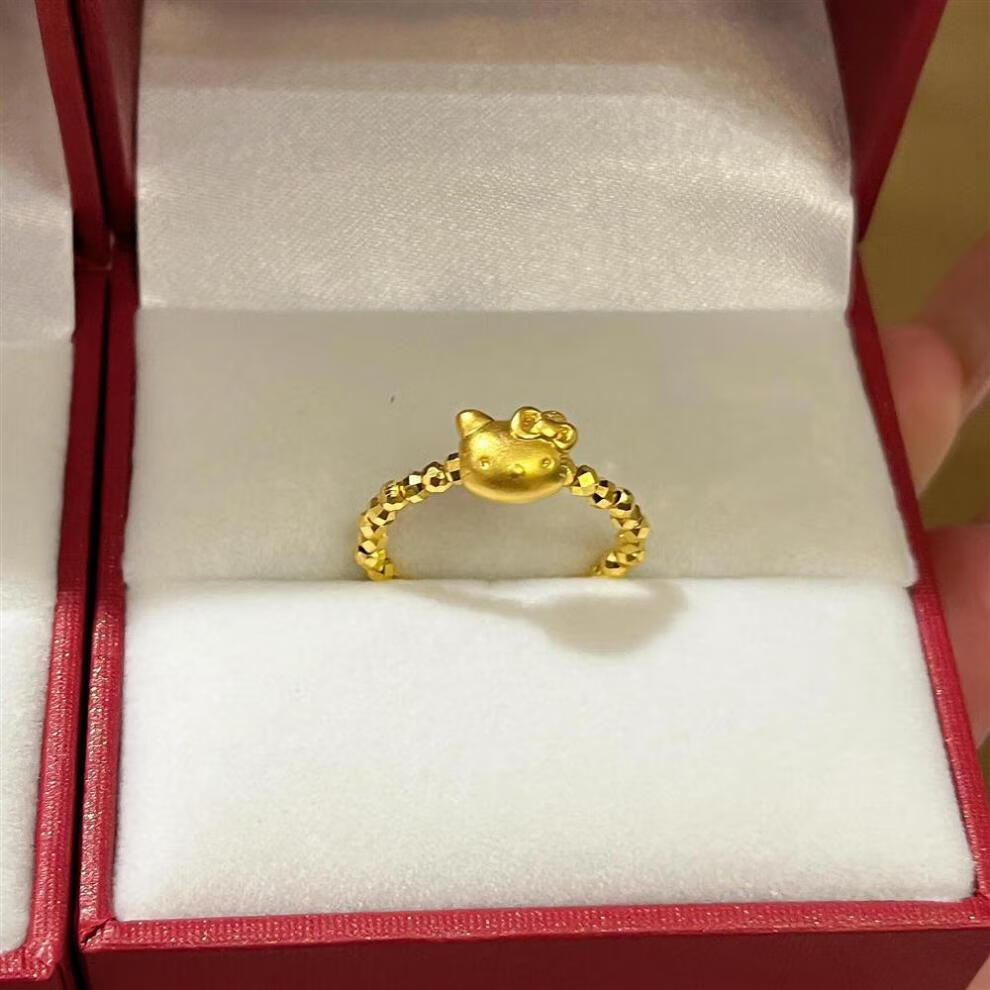 Jea.Pie 18k yellow l gold ring gold hello kitty gold 999 Hello Kitty KT ring as a birthday gift for girlfriend Gold KT ring (remark finger circumference)
