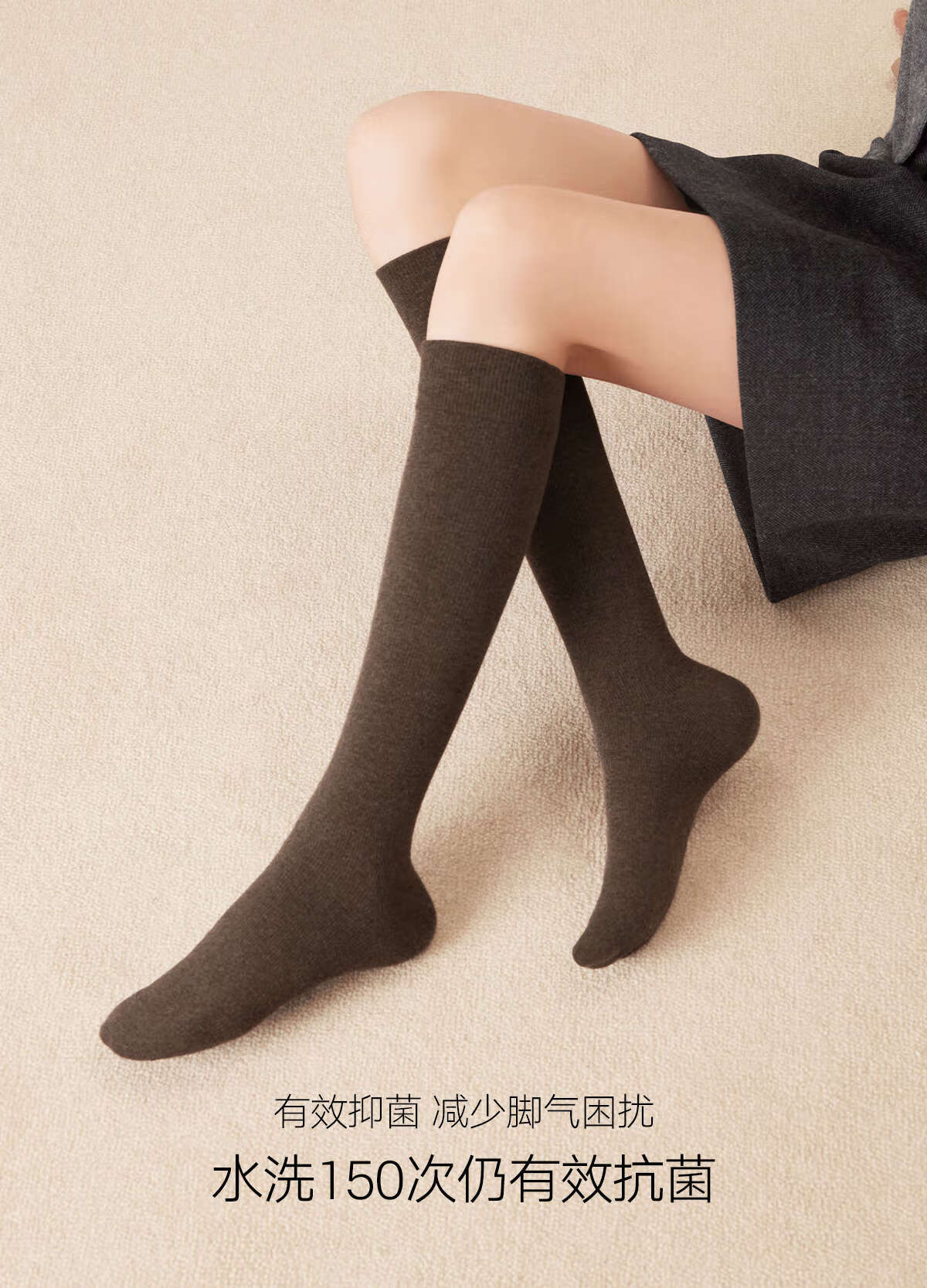 Mianzhuwu pressure calf socks for women spring and autumn mid-calf socks yarn 7A antibacterial jk black and white stockings dark gray + black 2 pairs one size fits all 35-39