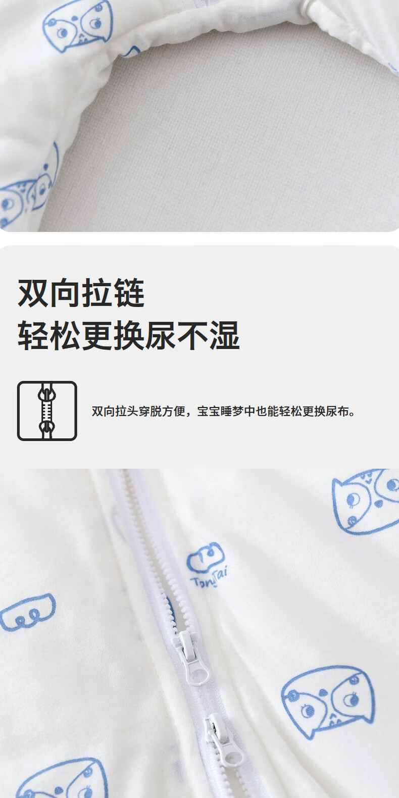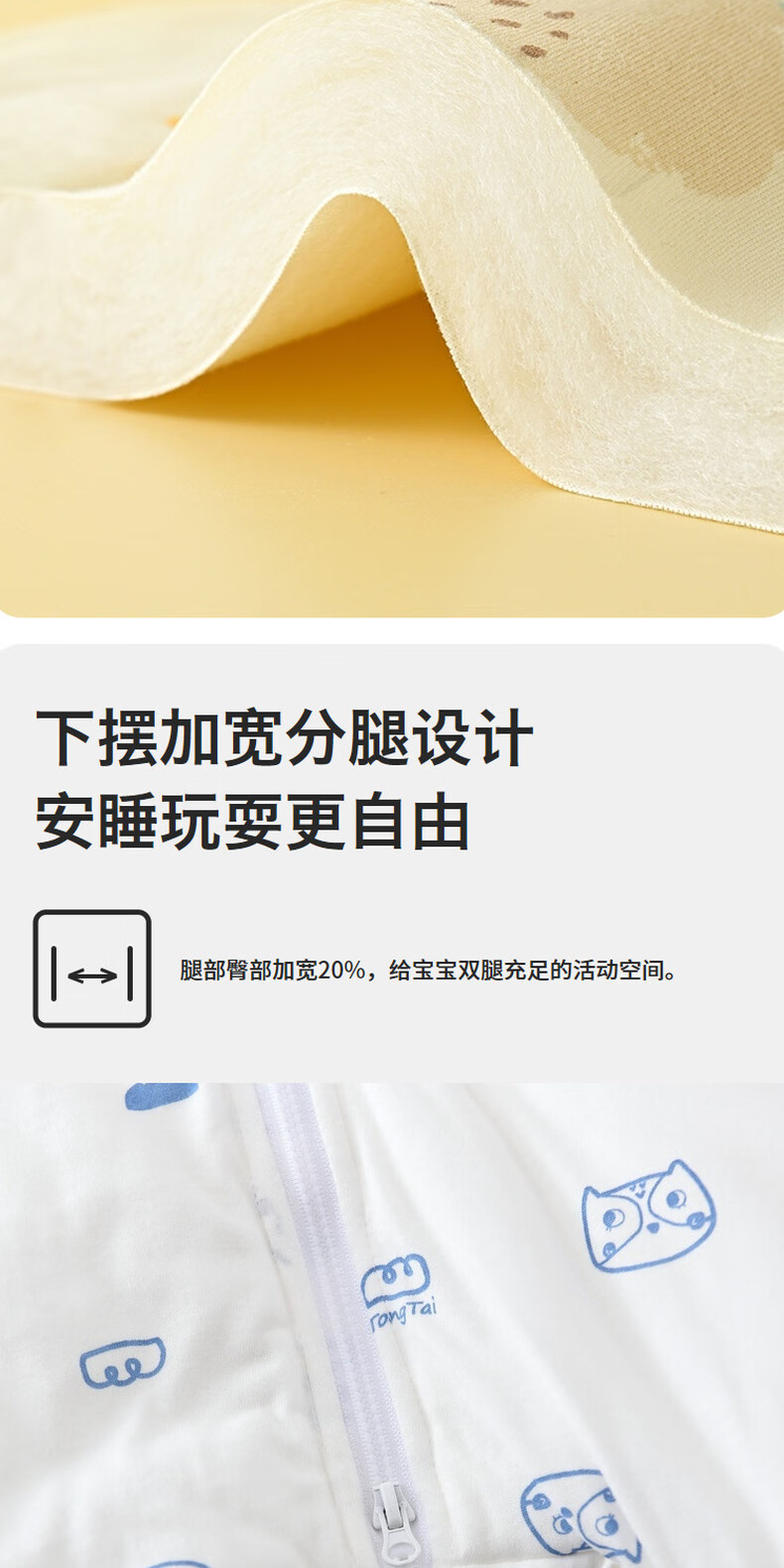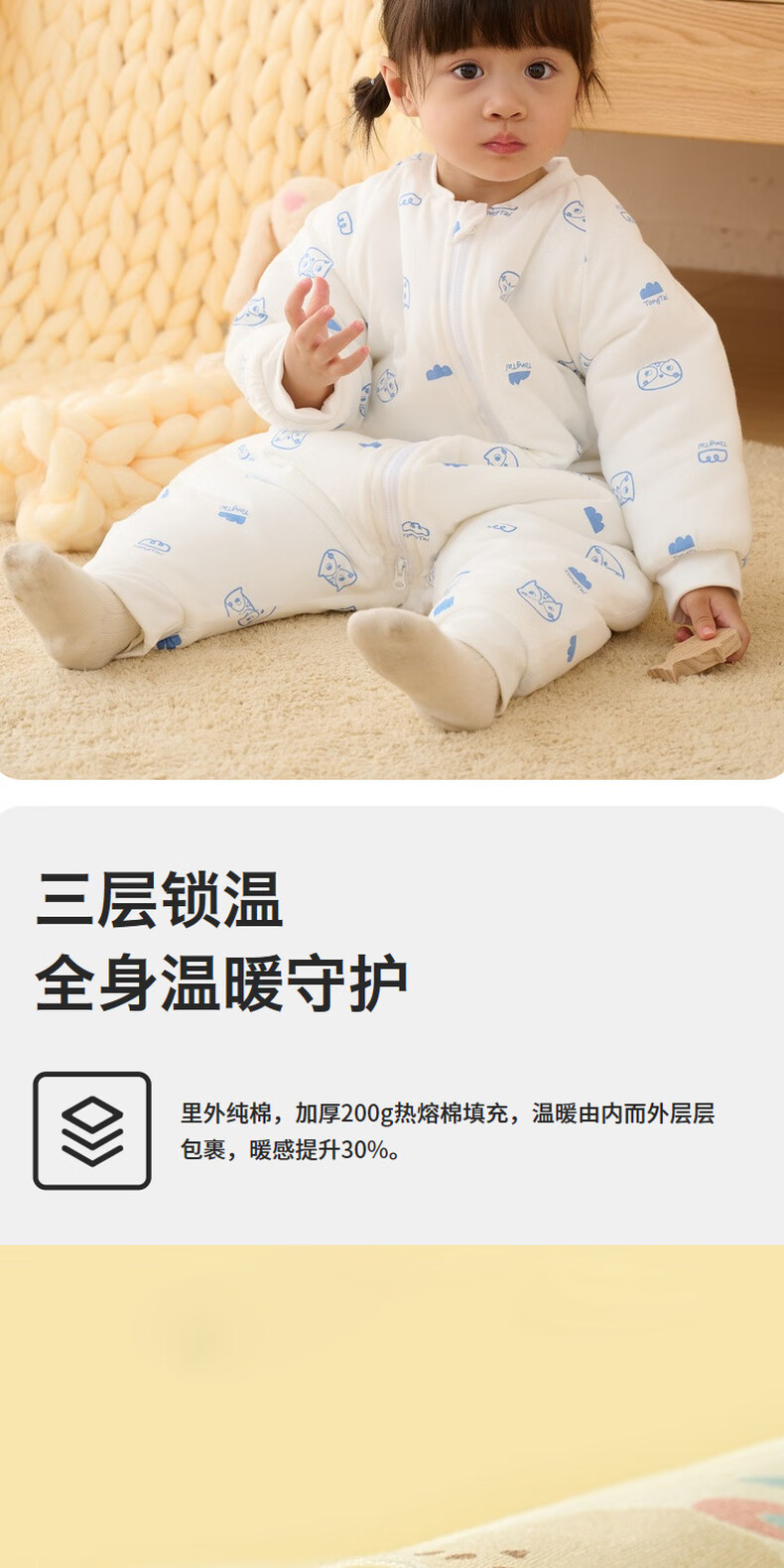 Tongtai infant sleeping bag autumn and winter quilted baby one-piece pajamas pure cotton children's thickened anti-kick quilt anti-jump blue owl 73cm