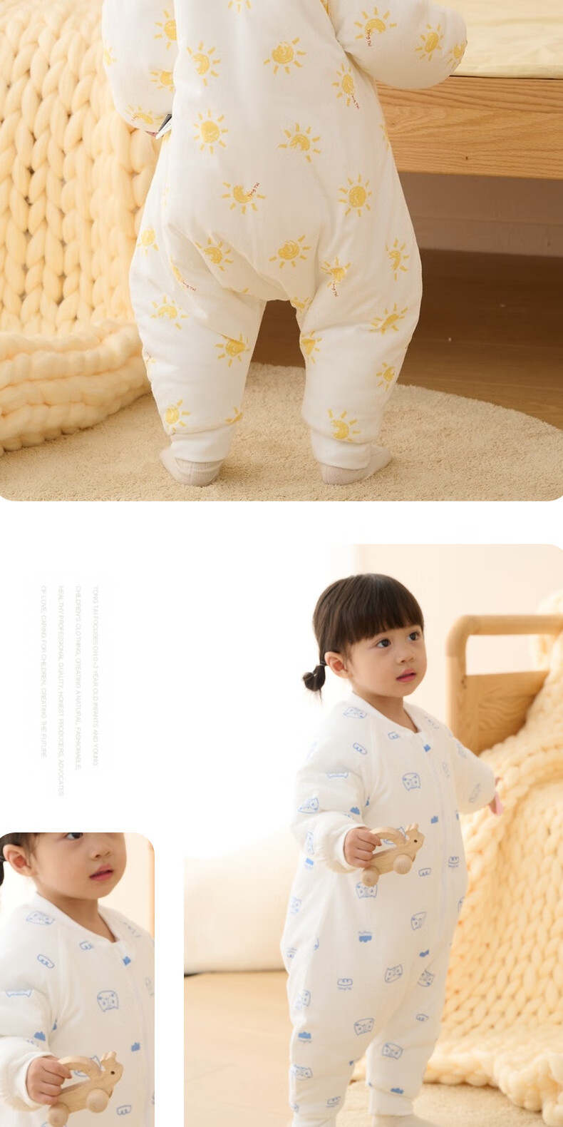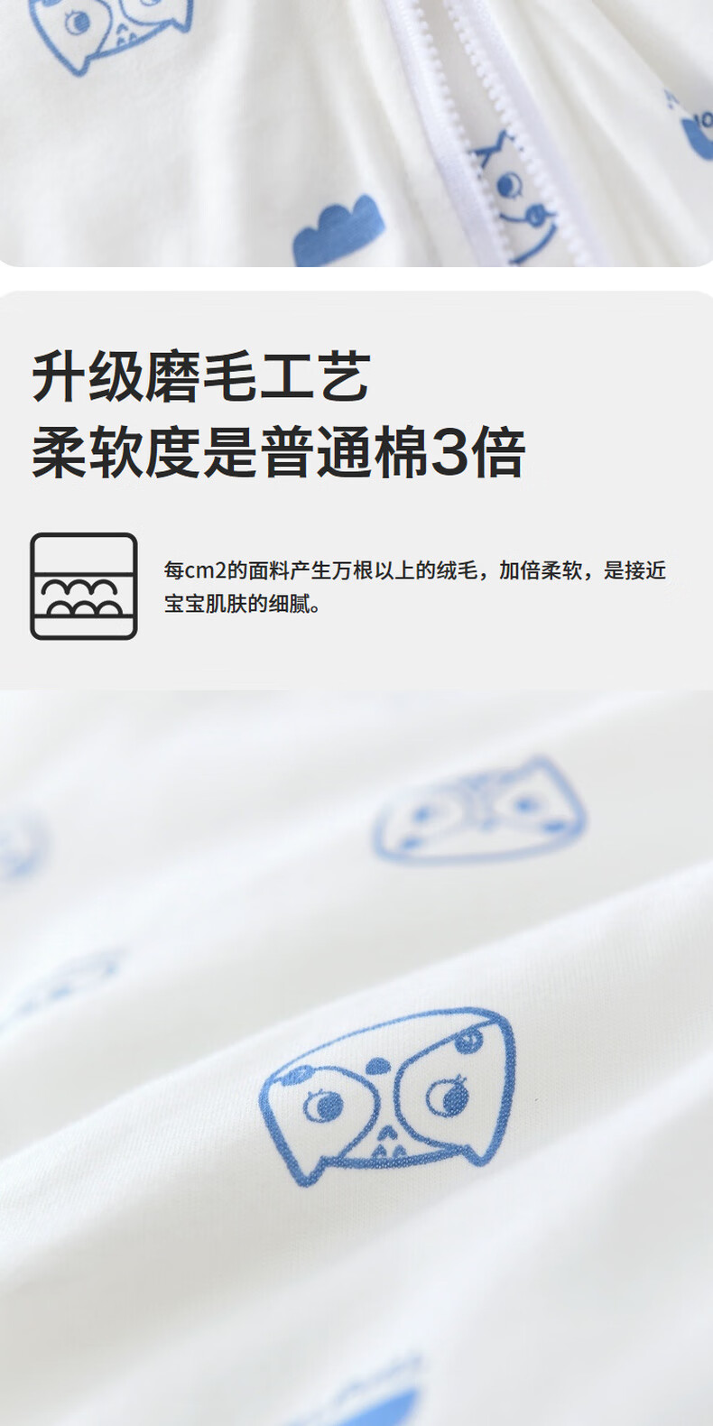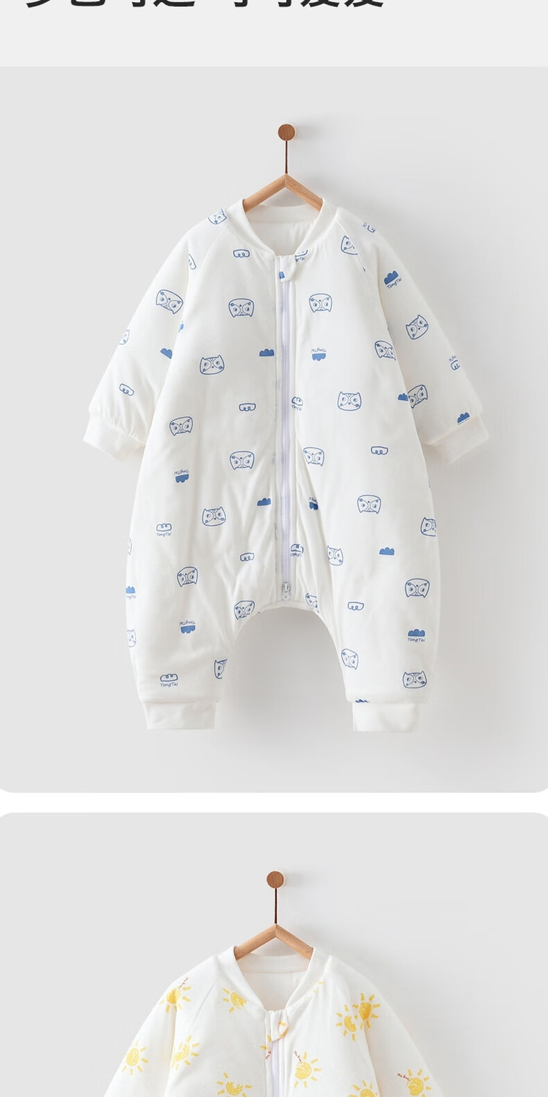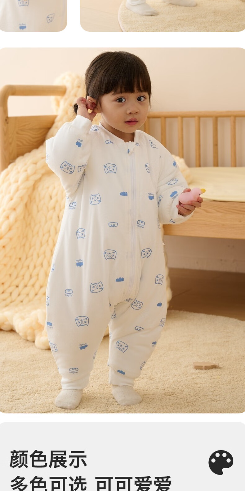 Tongtai infant sleeping bag autumn and winter quilted baby one-piece pajamas pure cotton children's thickened anti-kick quilt anti-jump blue owl 73cm
