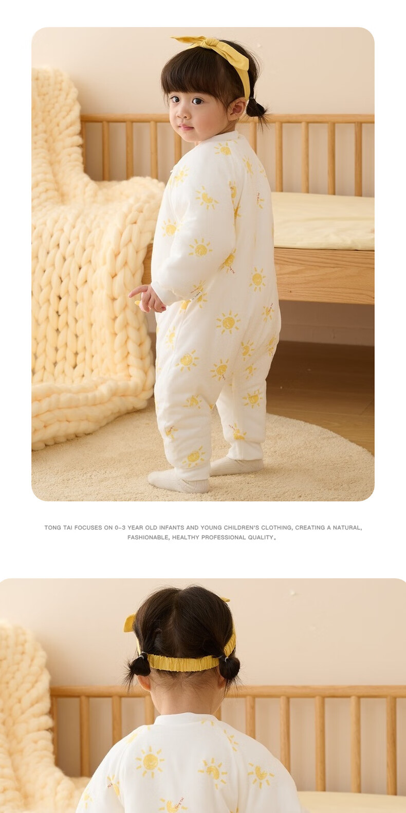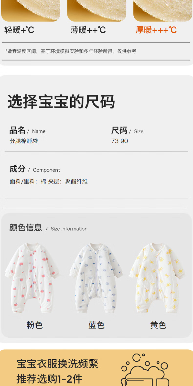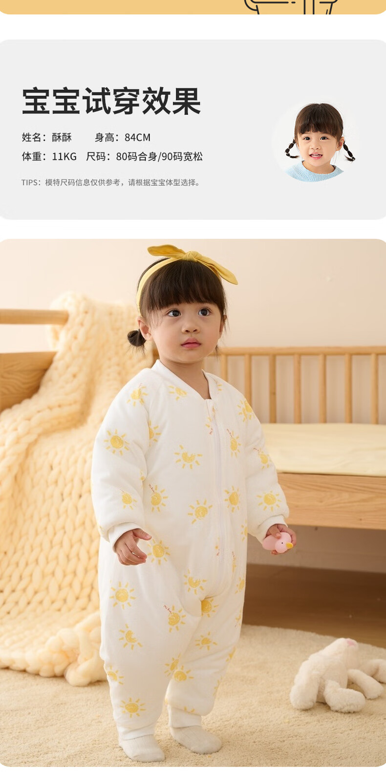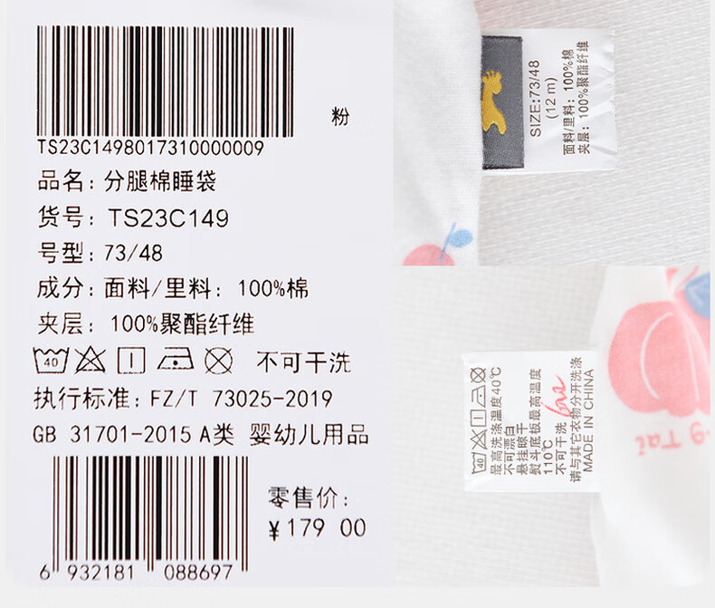 Tongtai infant sleeping bag autumn and winter quilted baby one-piece pajamas pure cotton children's thickened anti-kick quilt anti-jump blue owl 73cm