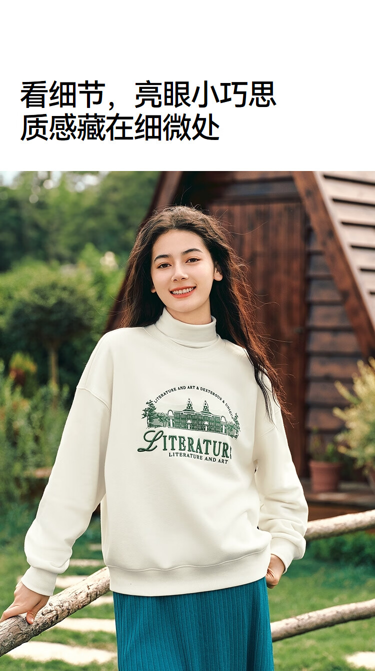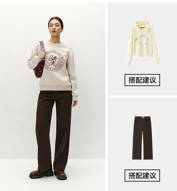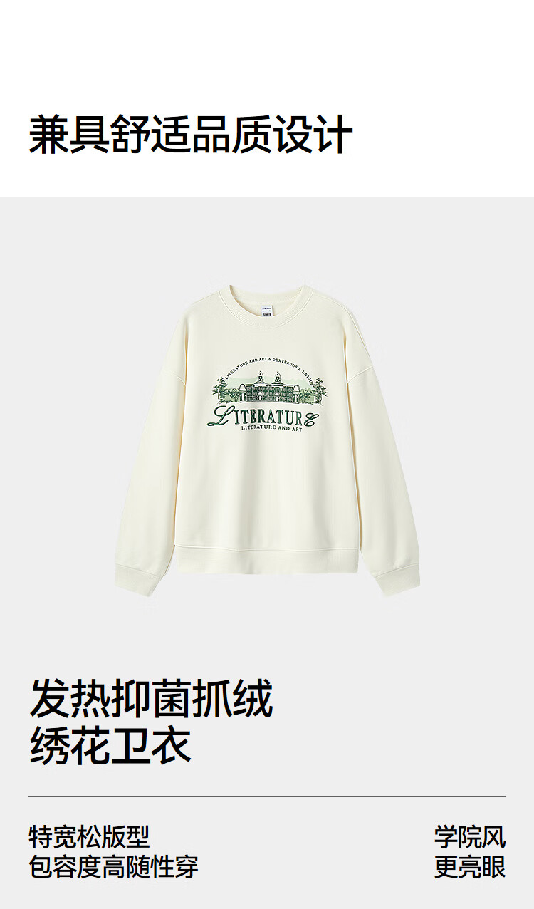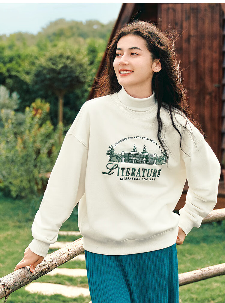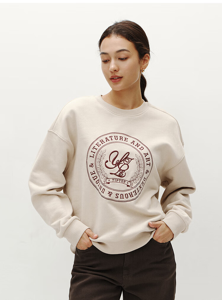 Semir sweatshirt for women with design pattern oversize, heating and antibacterial winter embroidered fleece top, lazy college style, milky white 10501 (extra loose style, please take a smaller size if you mind) S