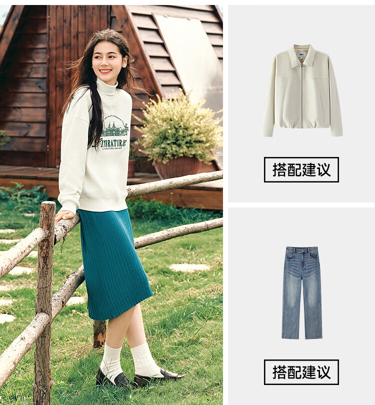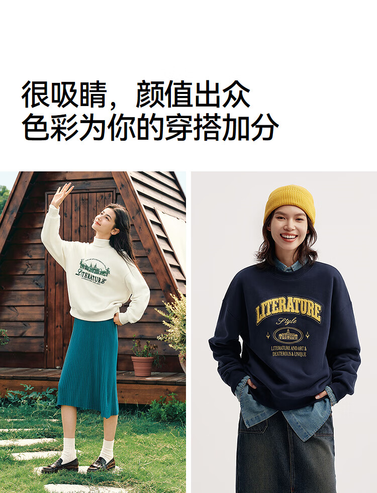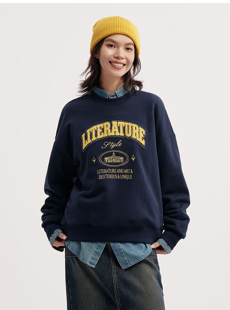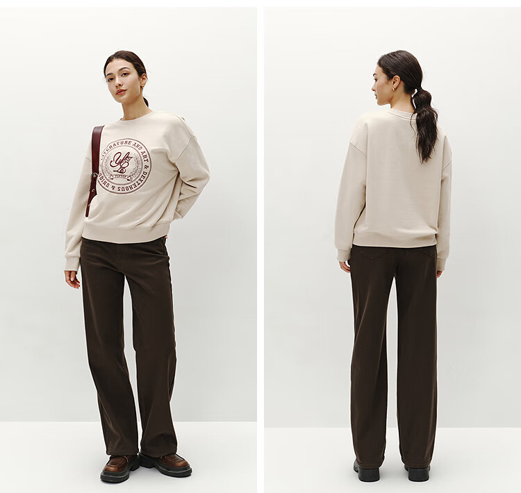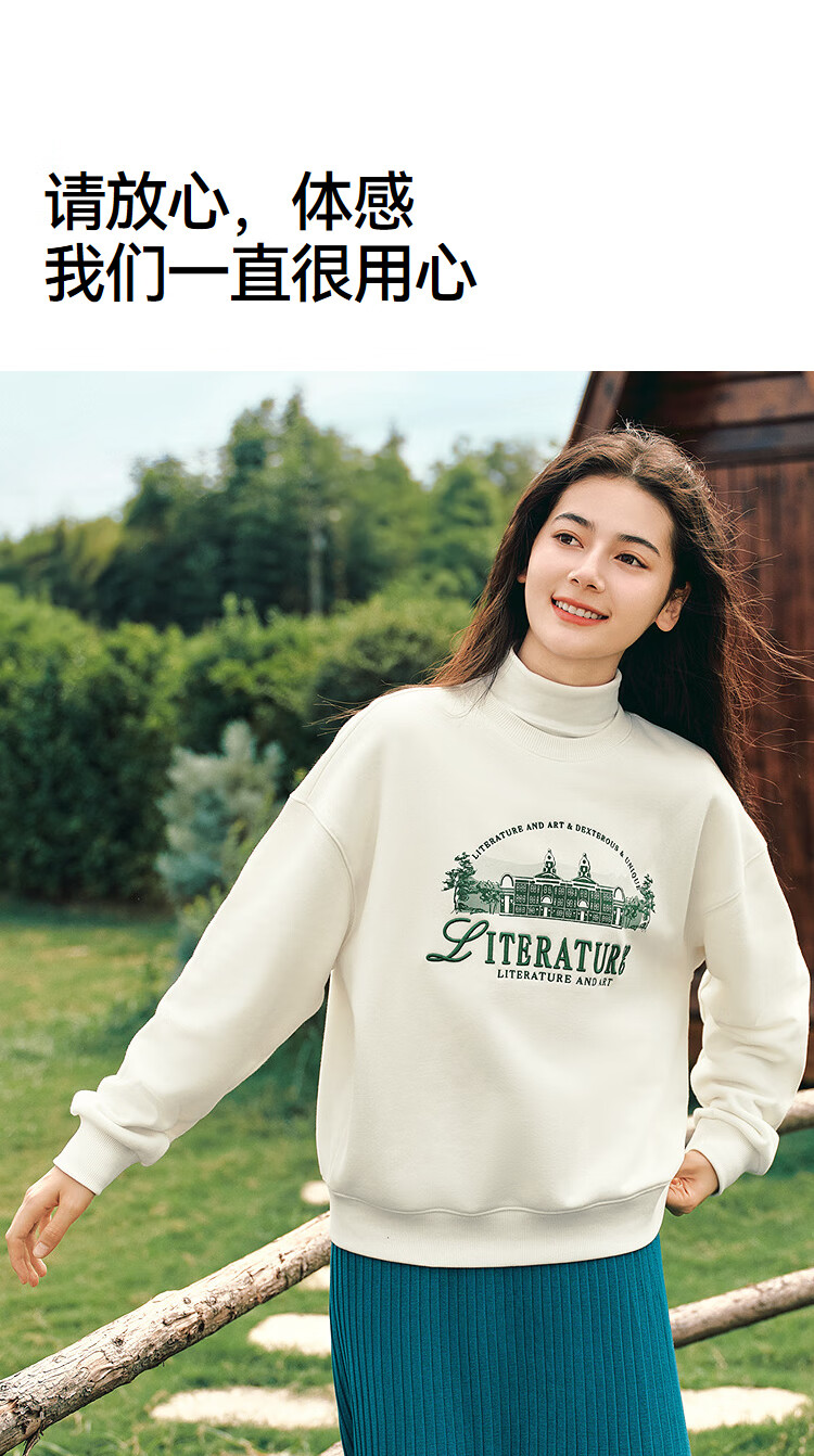 Semir sweatshirt for women with design pattern oversize, heating and antibacterial winter embroidered fleece top, lazy college style, milky white 10501 (extra loose style, please take a smaller size if you mind) S