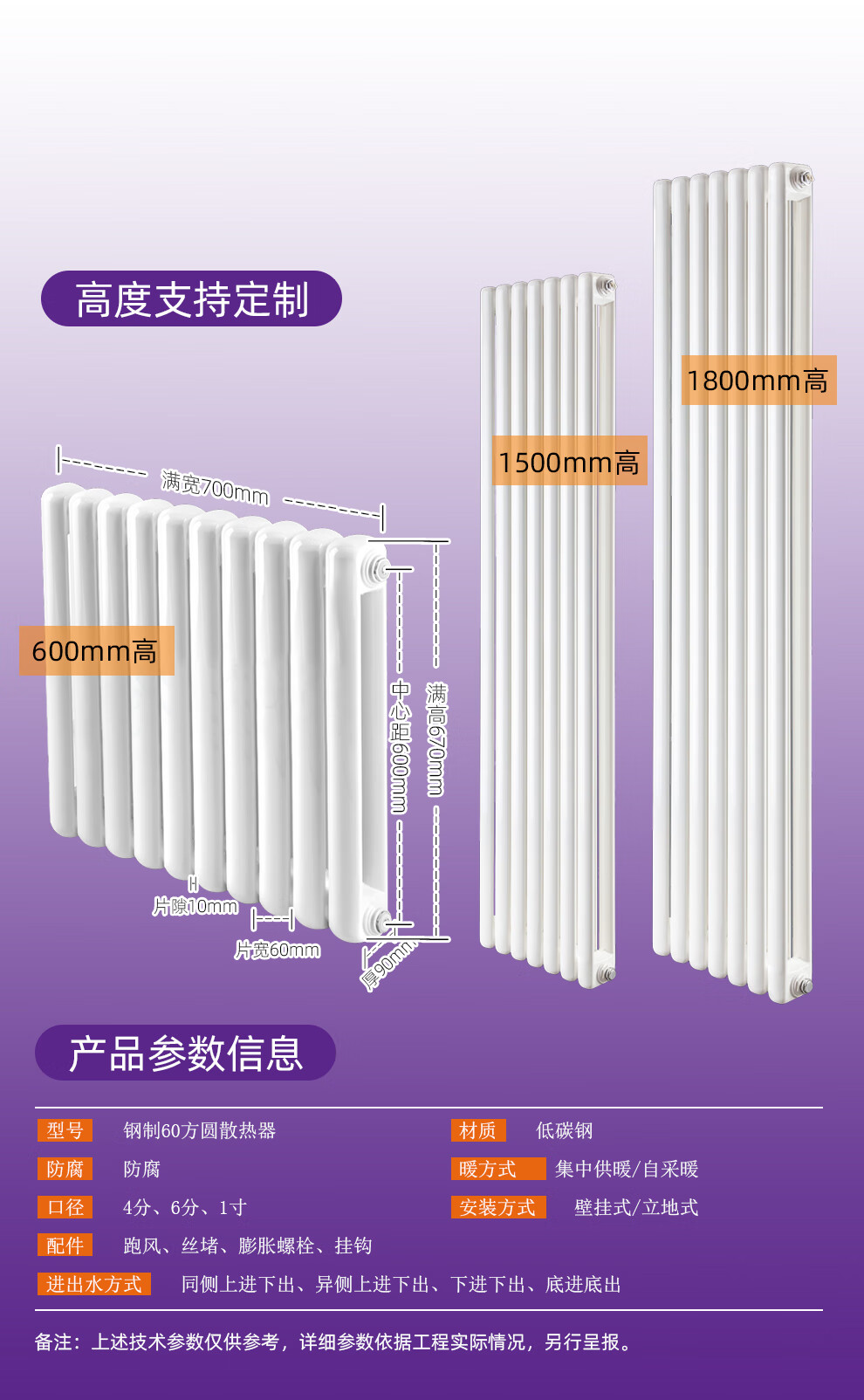 Fenghe Rinuan radiator steel 60 household water heating bedroom living room self-heating central heating wall-mounted radiator 1500mm high