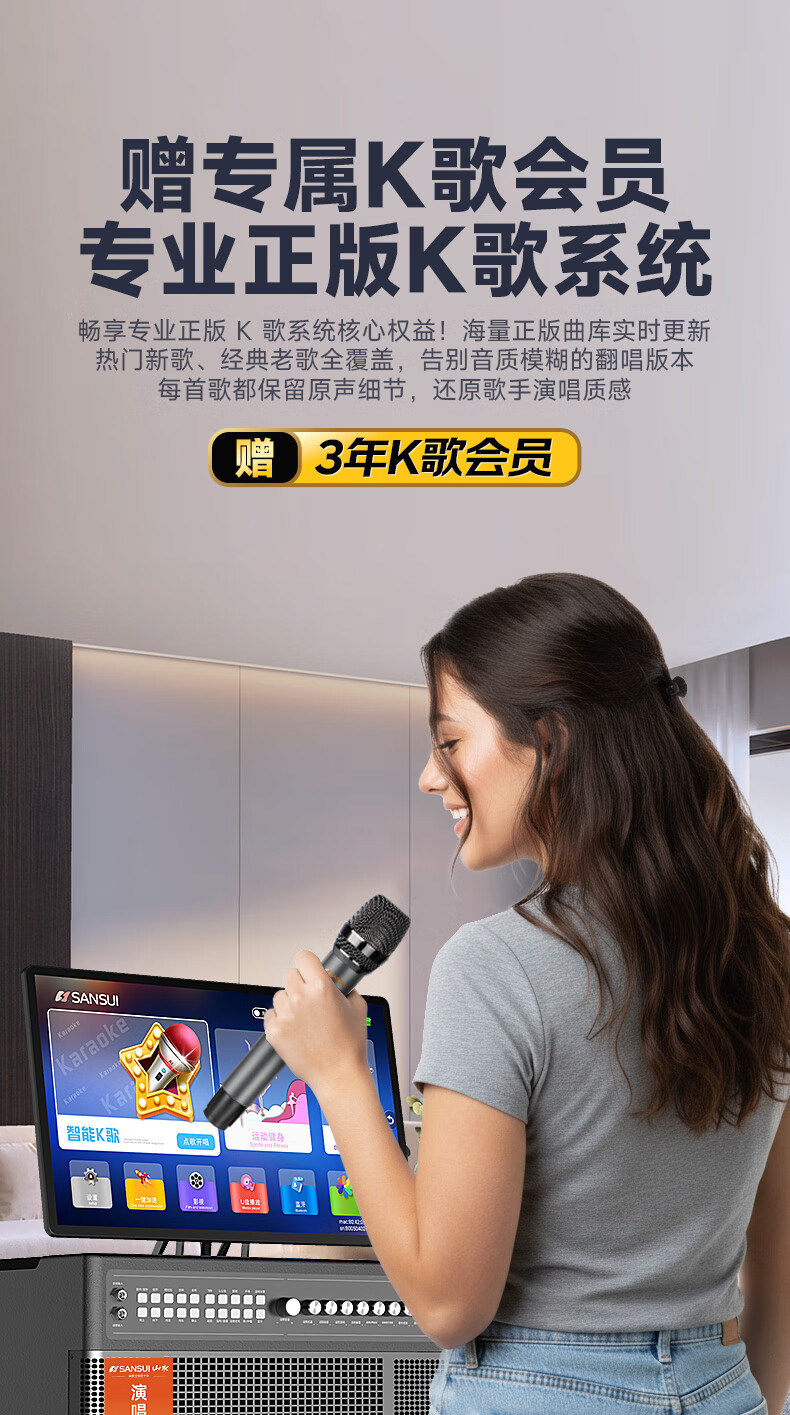 SANSUI portable trolley video speaker touch screen outdoor karaoke home ktv audio set all-in-one karaoke machine high volume karaoke 12 inches 15 inches PE189+22 inches screen+18 inches speaker+1T memory
