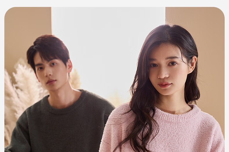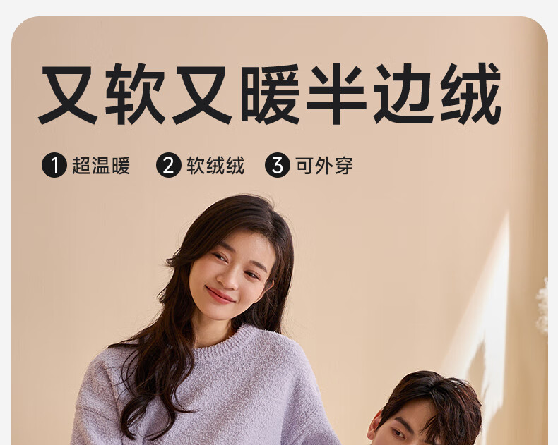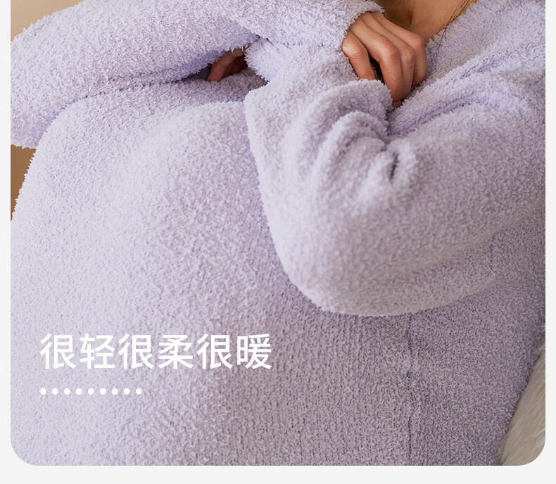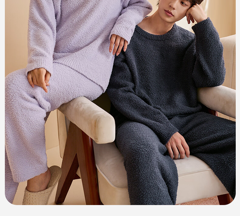 Qiulu Couple Pajamas Women's Antistatic Winter Half Velvet Warm Soft Solid Color Outerwear Men's Home Clothing Set 24 New Light Pink (Female) L