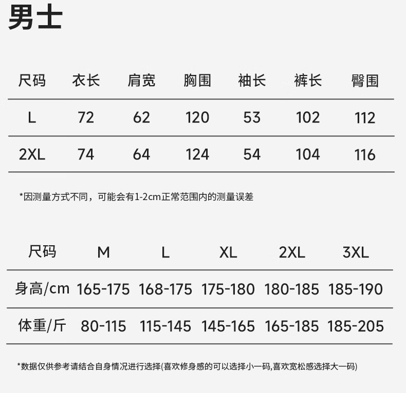 China (cm) 165 / 88-90 170 / 96-98 175 / 108-110 180 / 118-122 185 / 126-130