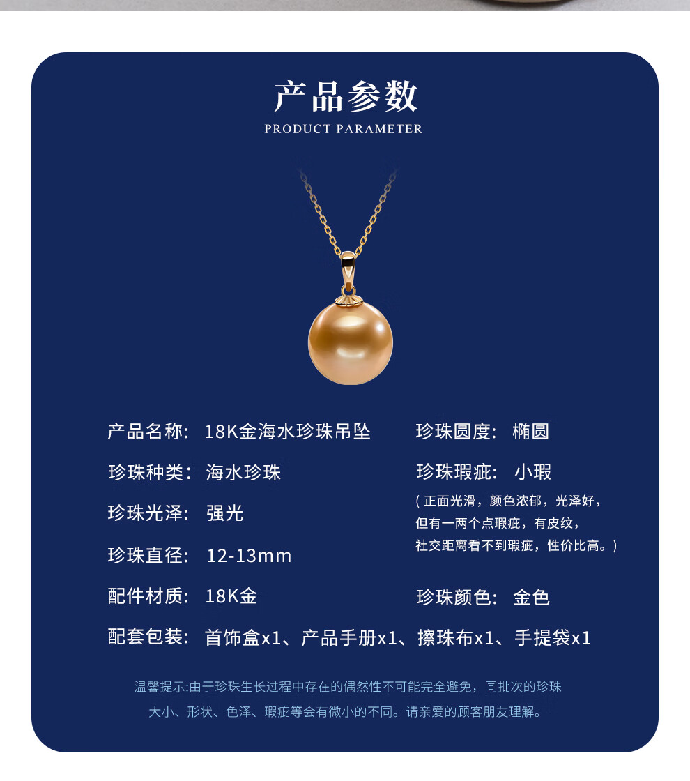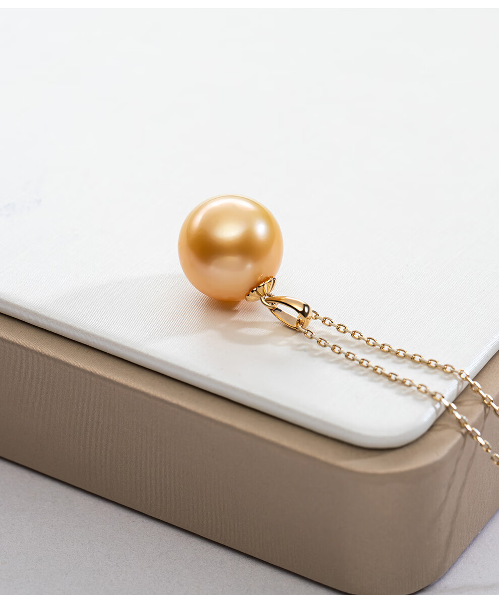Nanzhu Palace 18K Gold Seawater Pearl South Sea Gold Pearl Pendant Strong Light Women's Style Fashion Simple Gift 12.0-13.0mm South Sea Gold Pearl