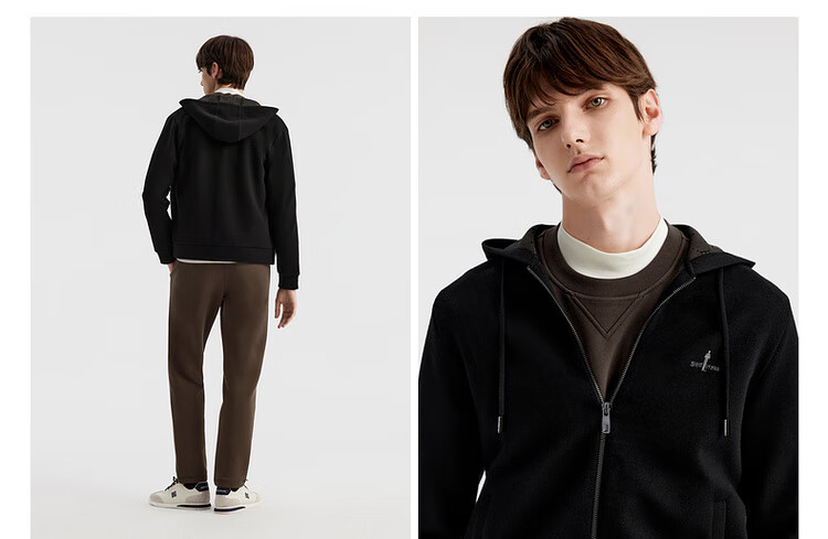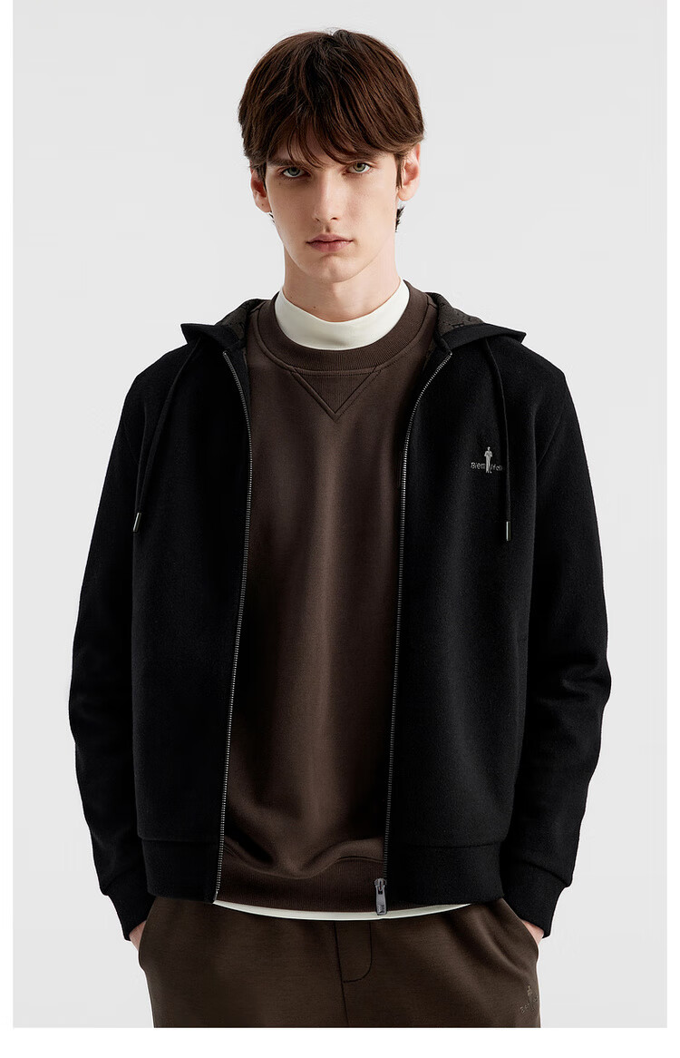 Biyinlefen Warm and Soft Autumn Men's Fashionable Casual Jacket Tops Comfortable and Sturdy Hooded Wool Jacket Men 07 Black L /105