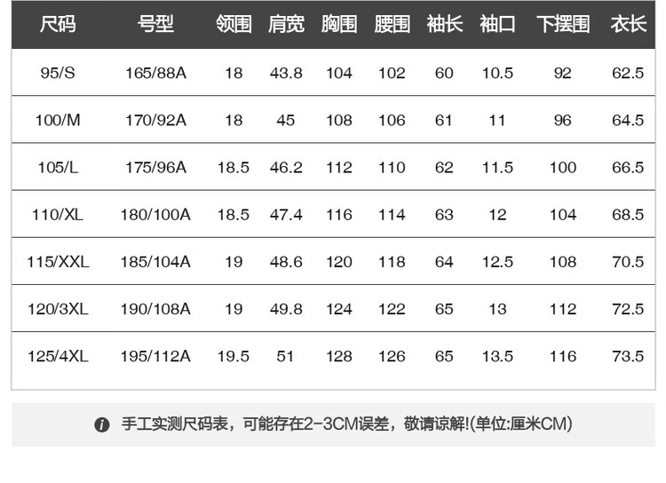 China (cm) 165 / 88-90 170 / 96-98 175 / 108-110 180 / 118-122 185 / 126-130