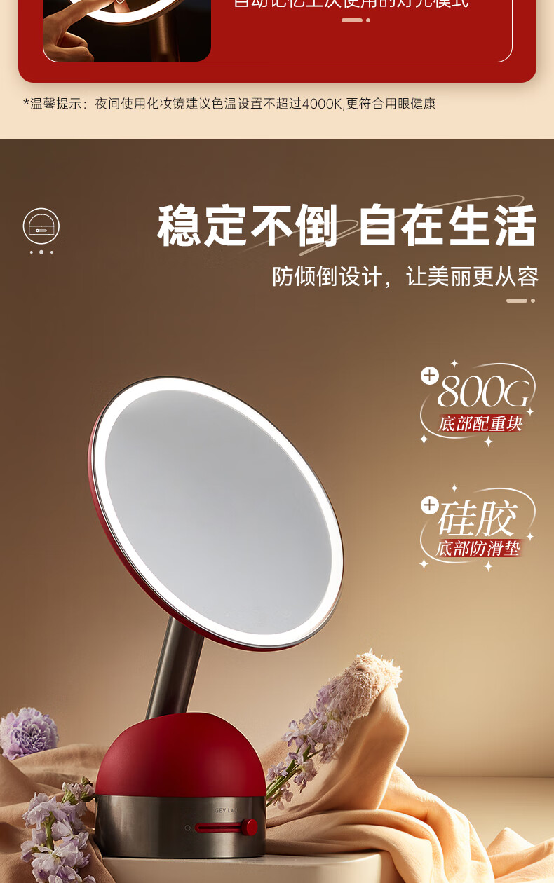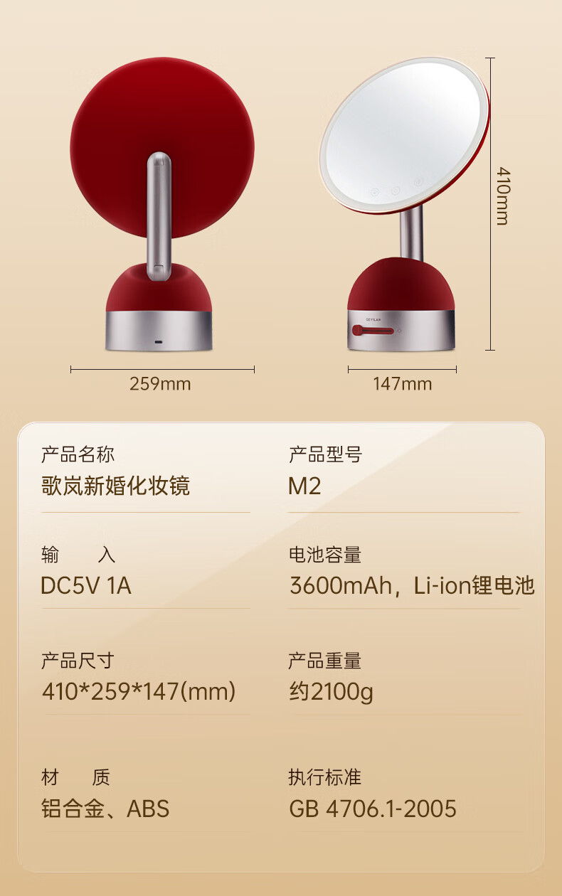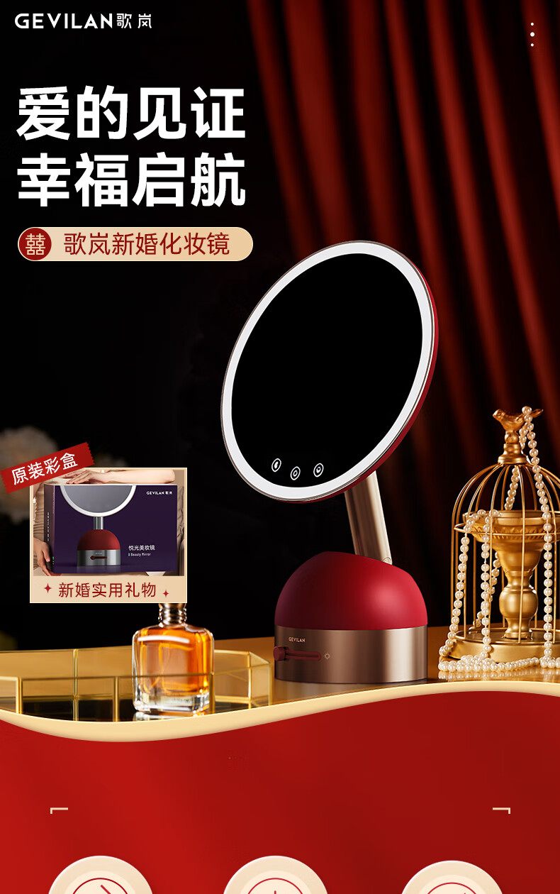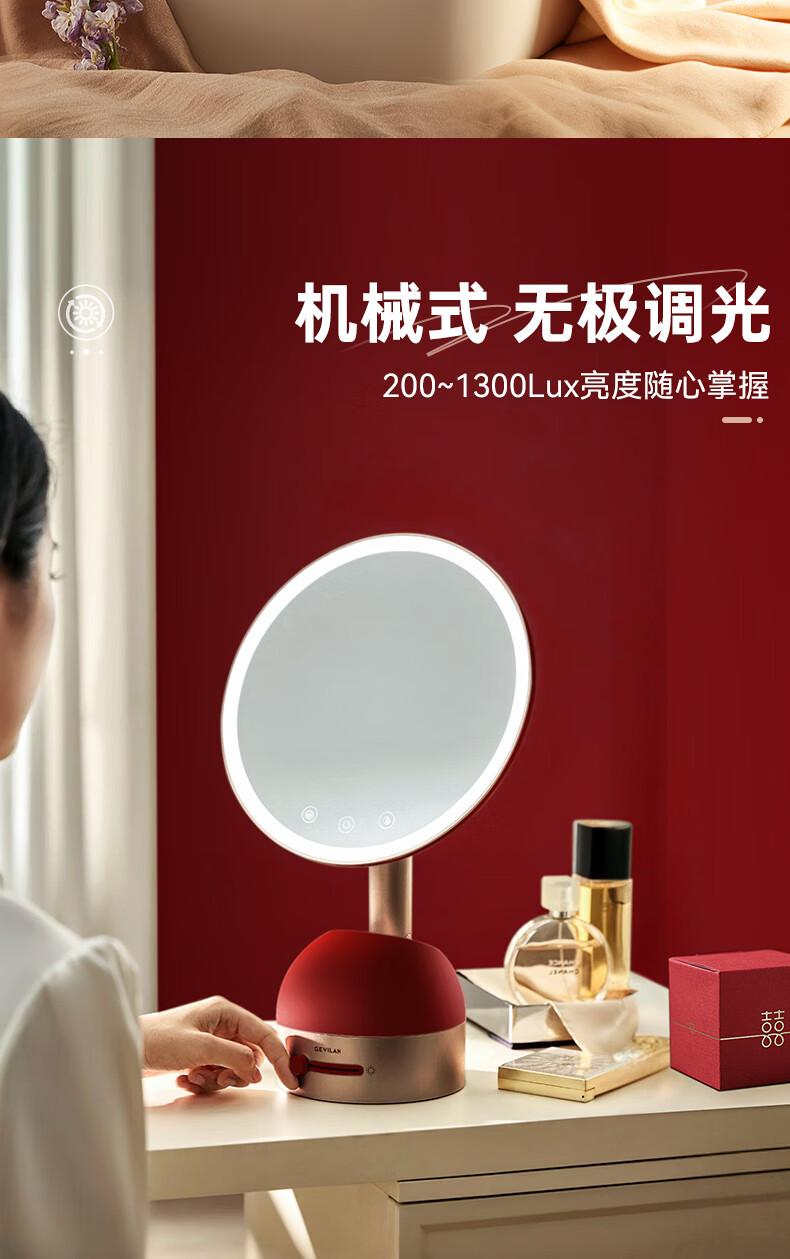 Gelan red dowry makeup mirror with light LED wedding gift for the bride and groom, fill-in light beauty mirror, desktop dresser high definition, holiday gift for girlfriend and best friend M2 Burgundy Red