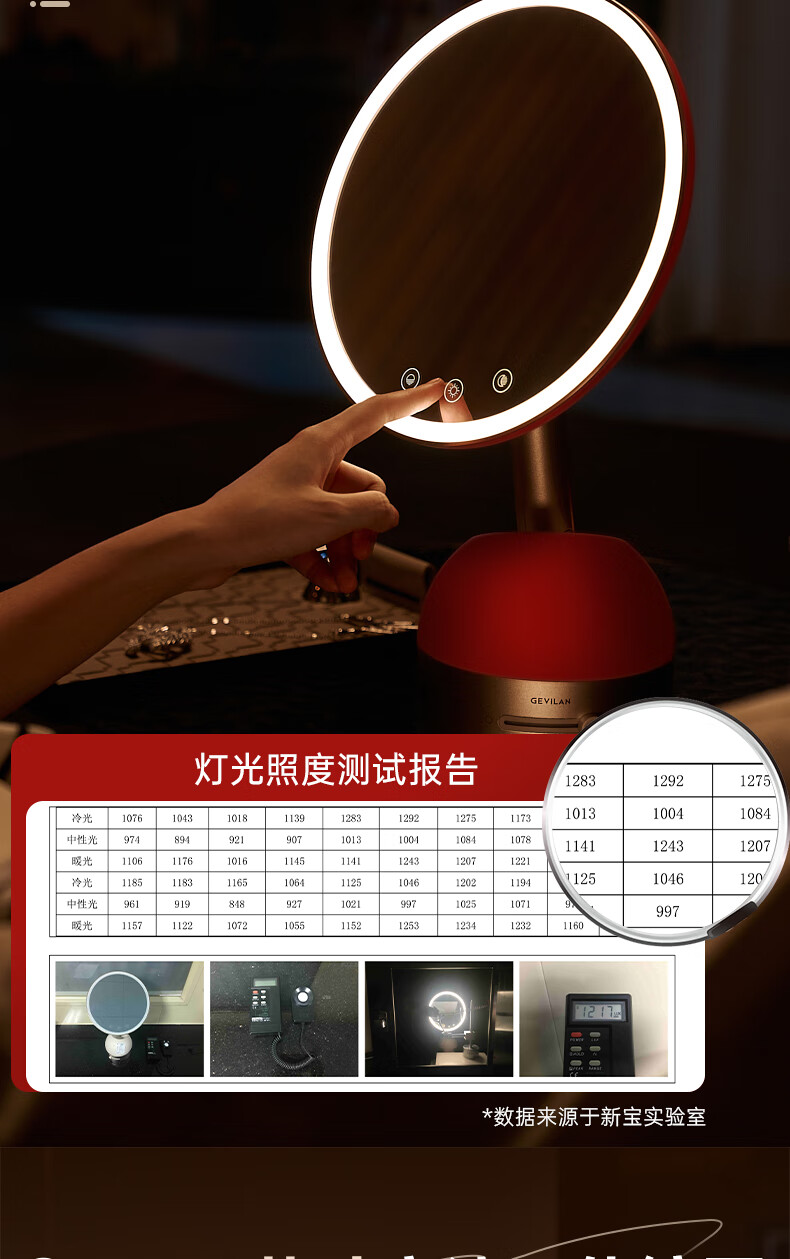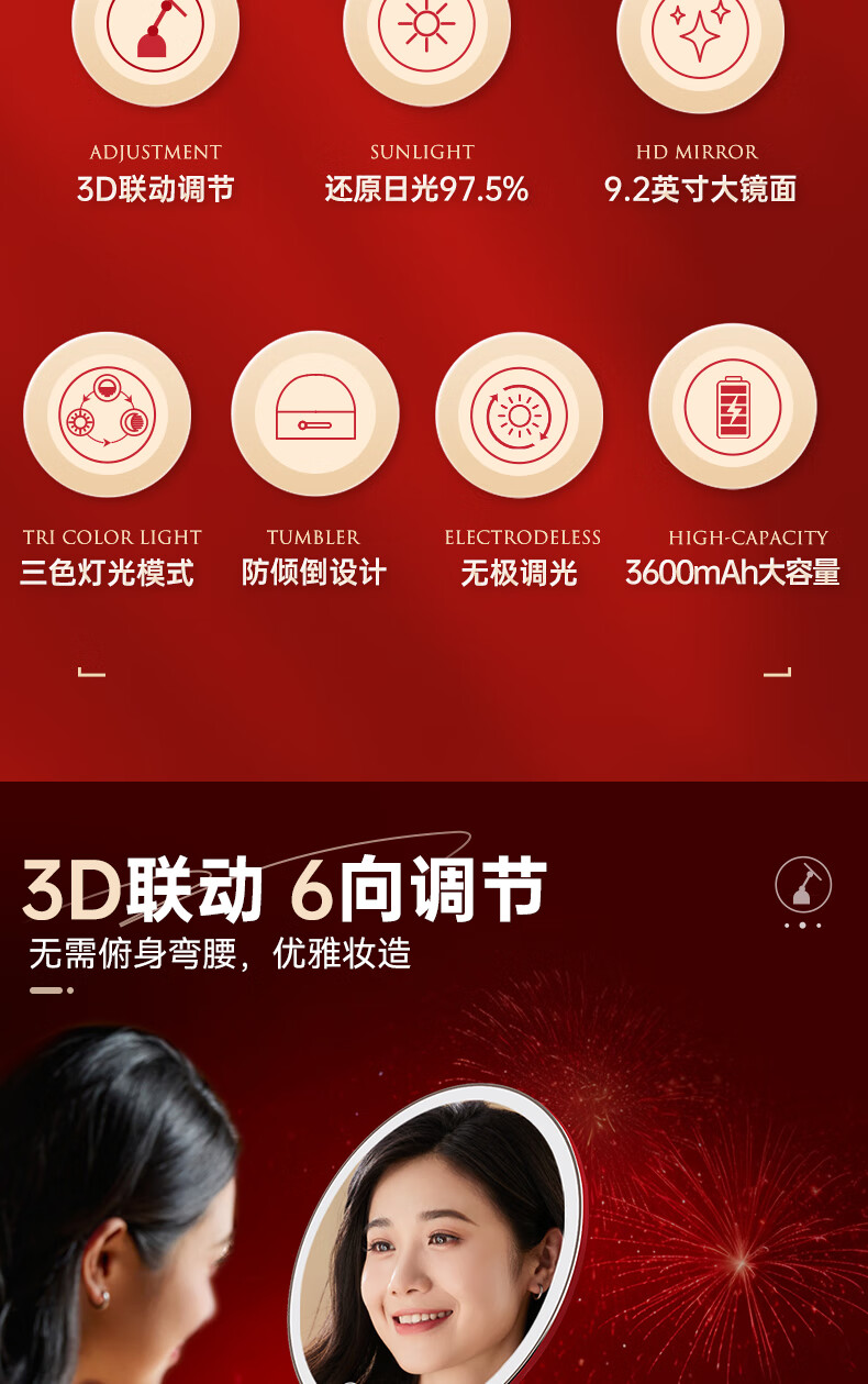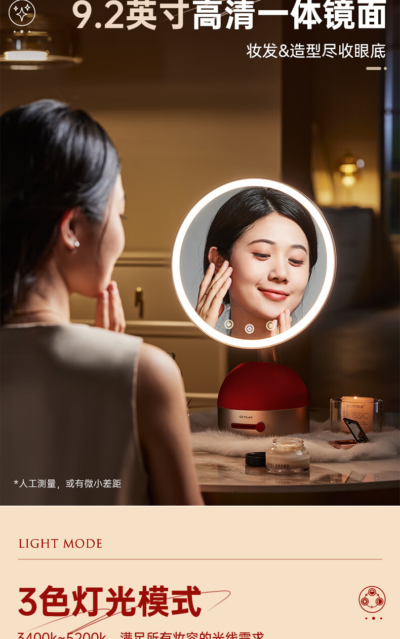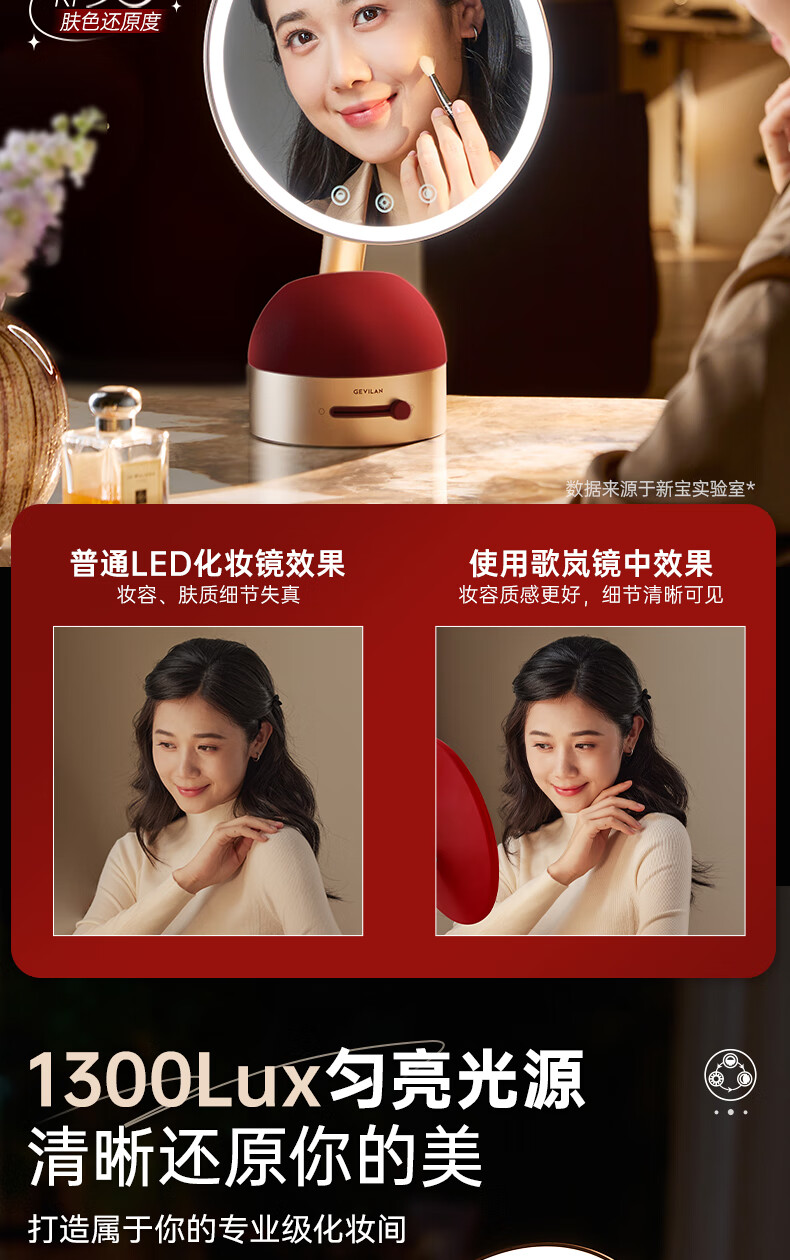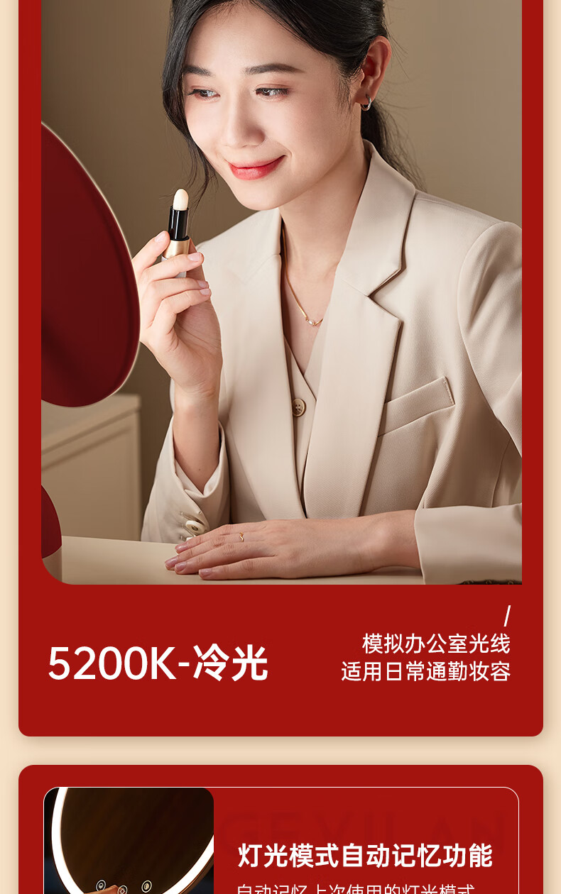 Gelan red dowry makeup mirror with light LED wedding gift for the bride and groom, fill-in light beauty mirror, desktop dresser high definition, holiday gift for girlfriend and best friend M2 Burgundy Red