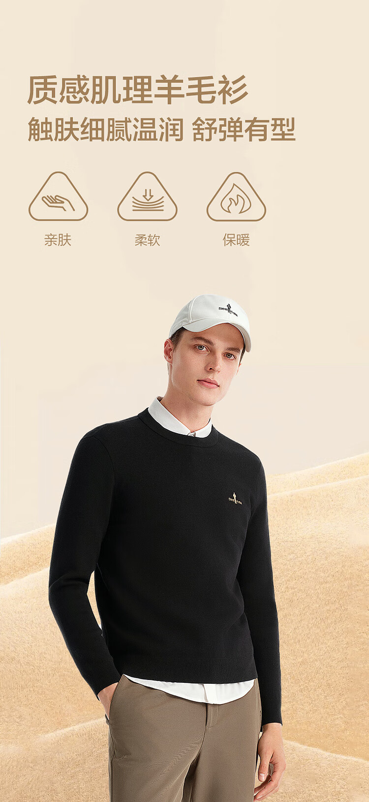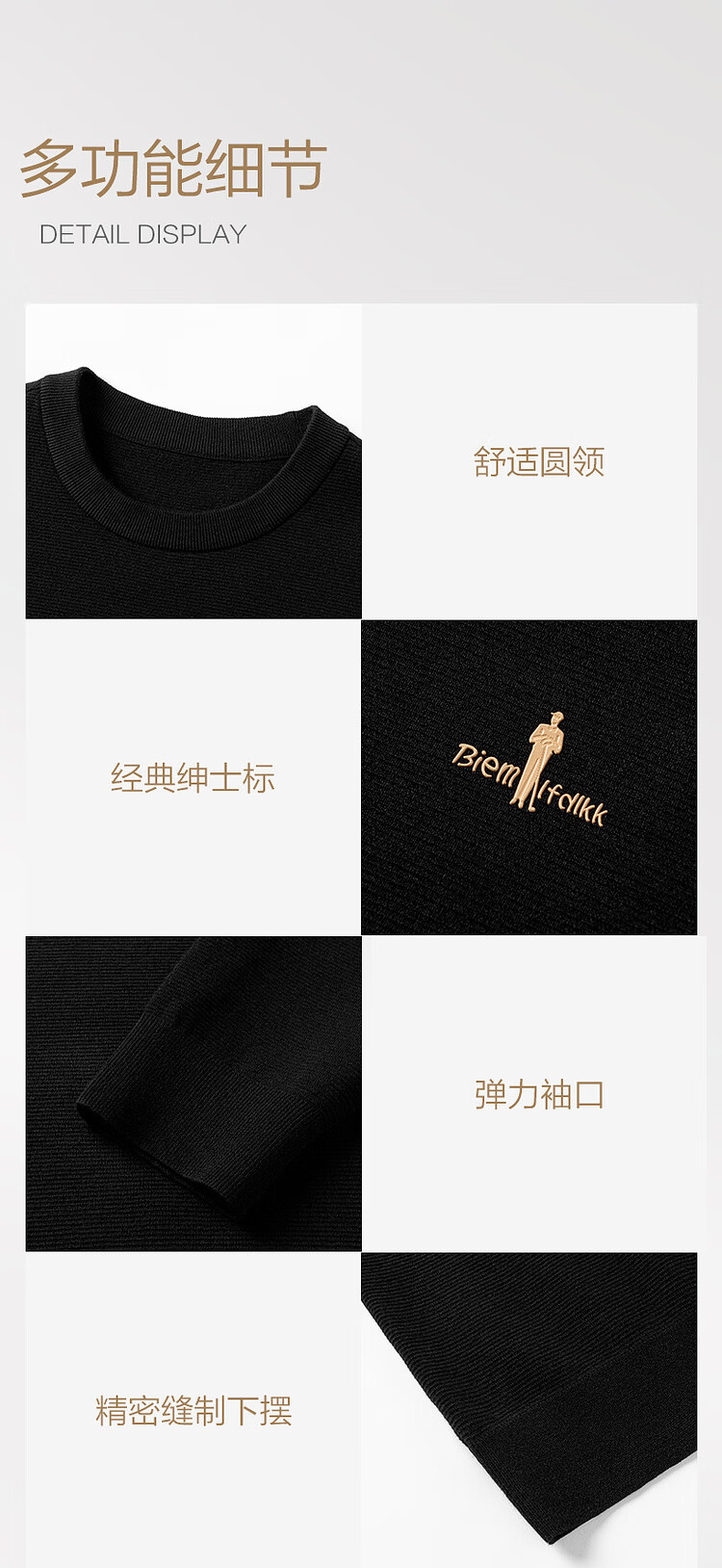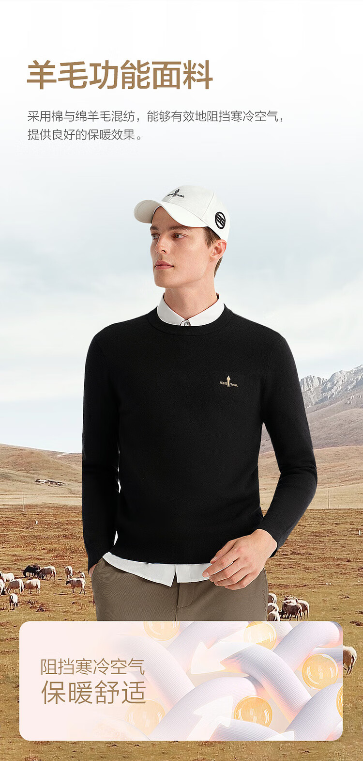 Biyinlefen sheep wool spring and autumn men's casual all-match sweater warm round neck textured wool sweater skin-friendly 75 light green S